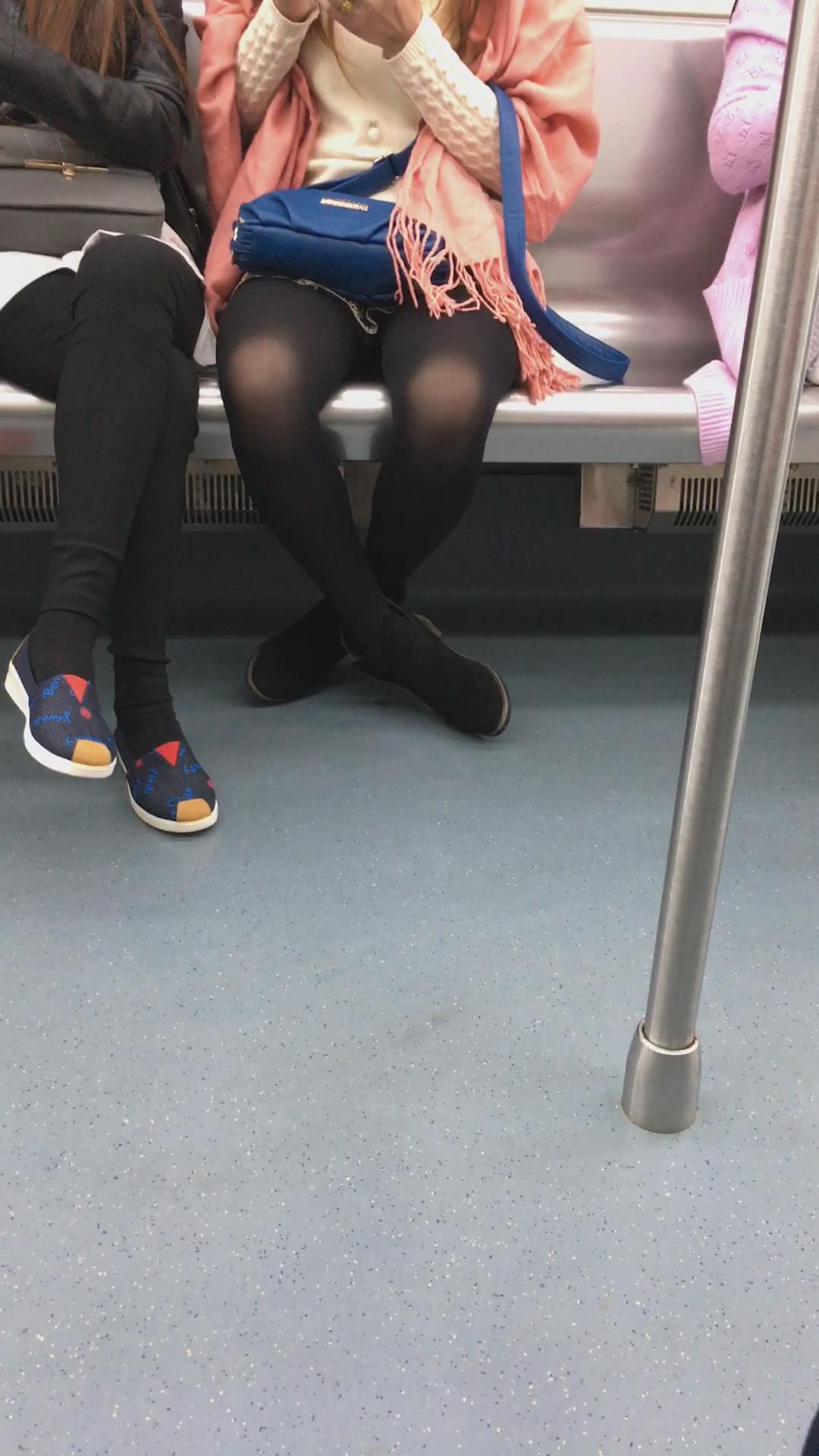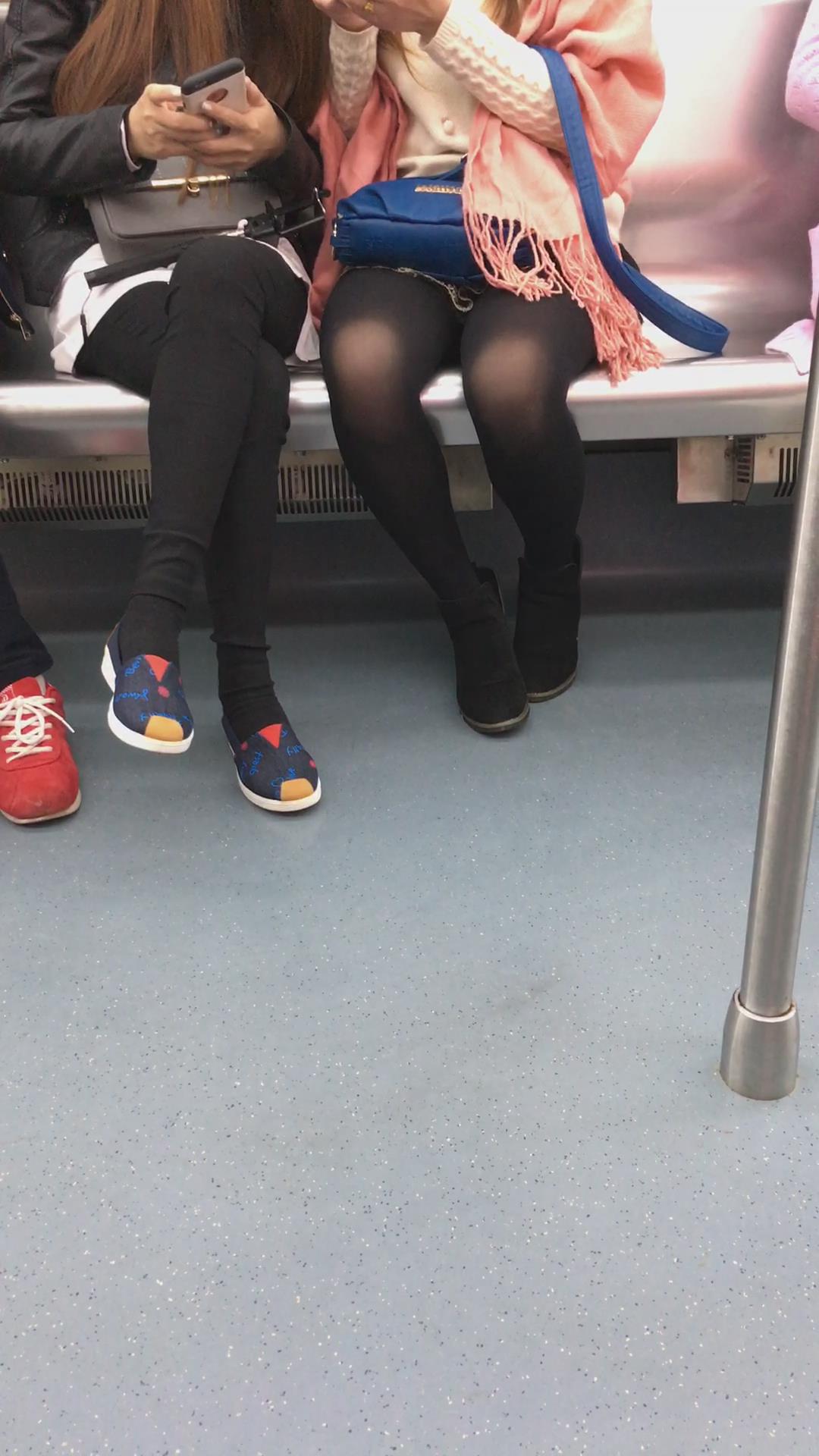 地铁车厢拍摄黑丝美足姐妹花 编号1770