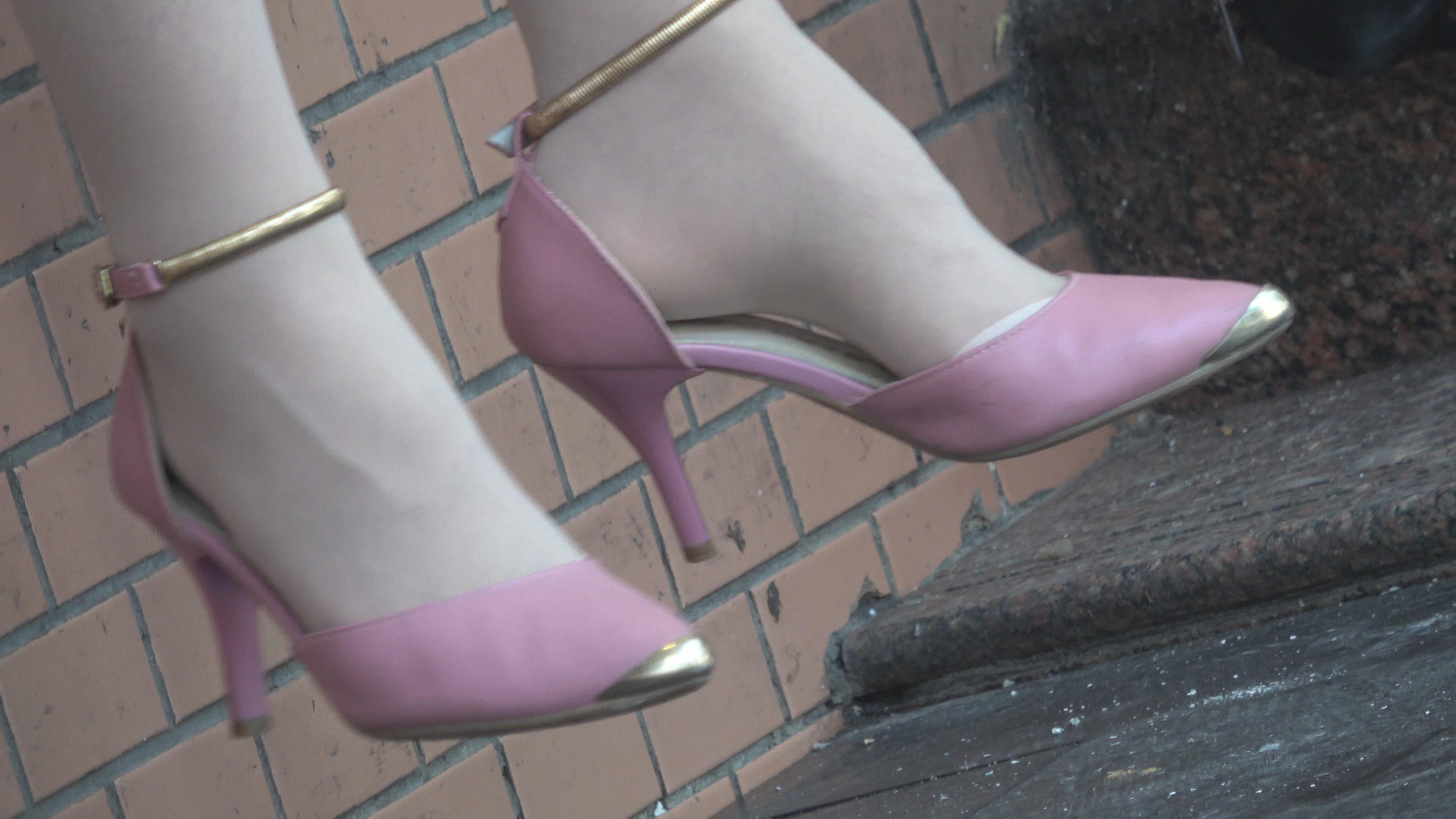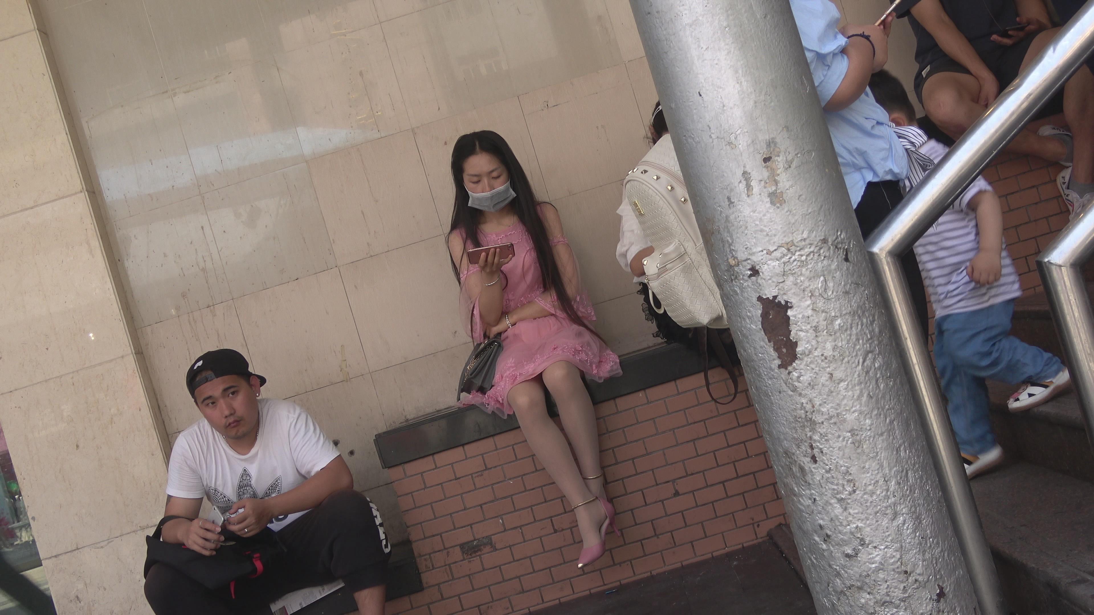 4K 百年一遇的粉群高跟街拍丝袜美女 编号6380
