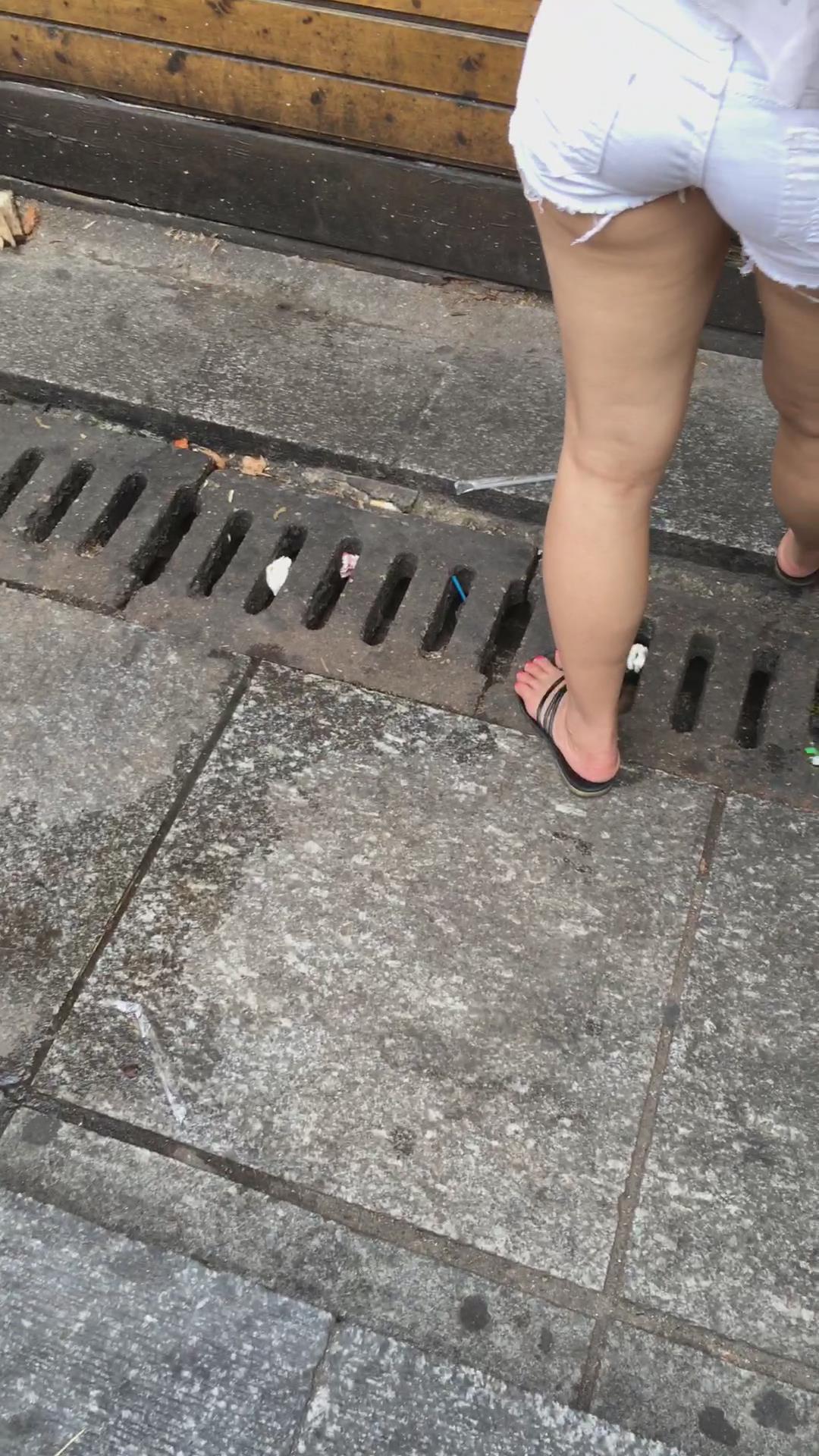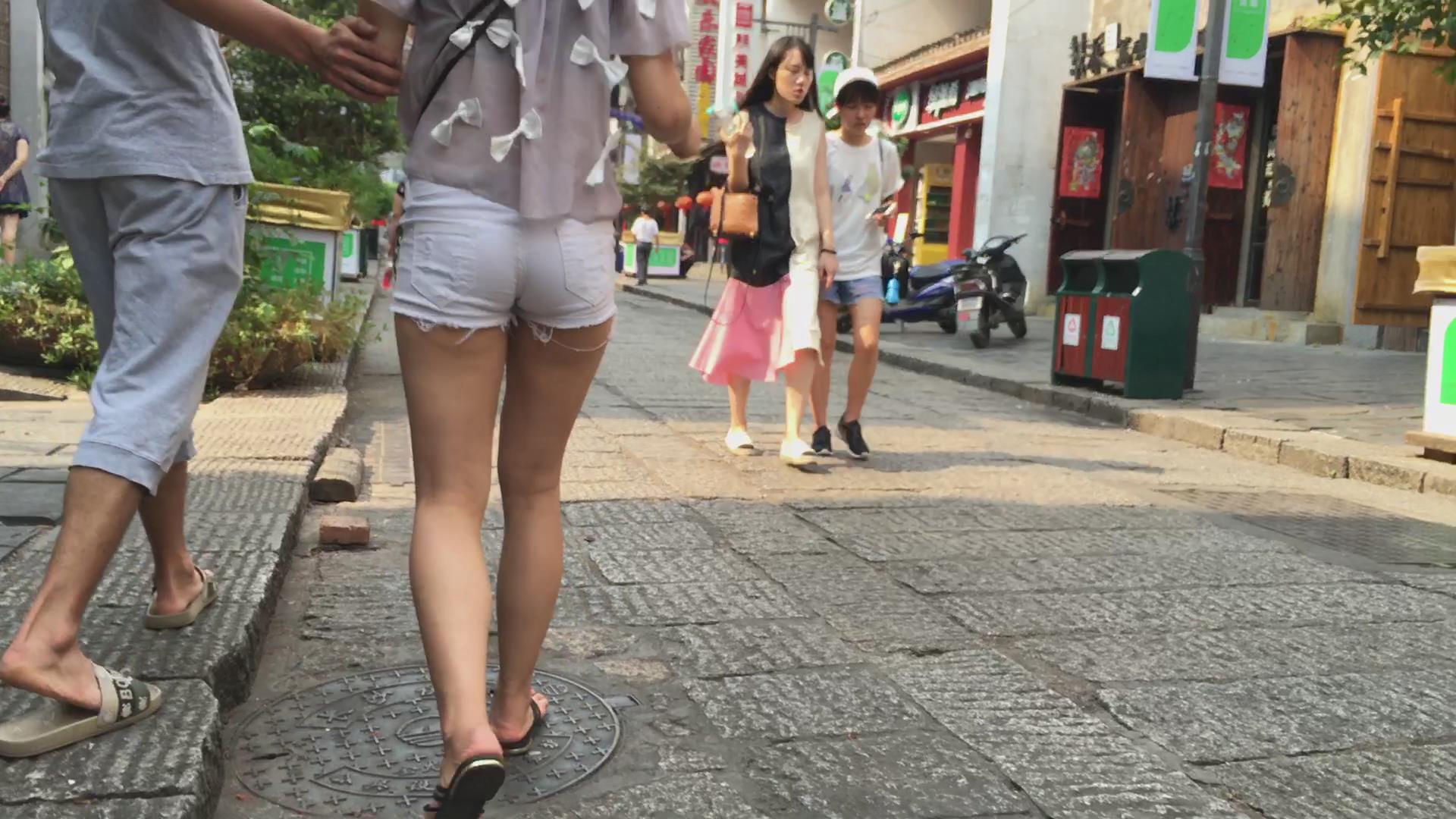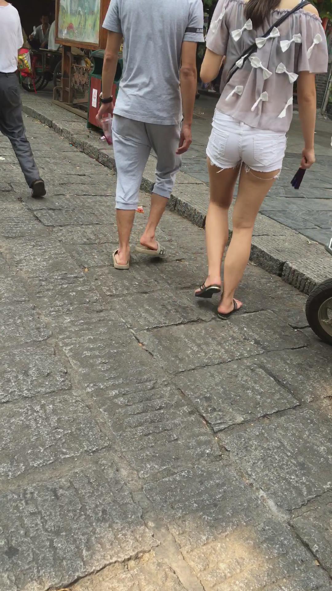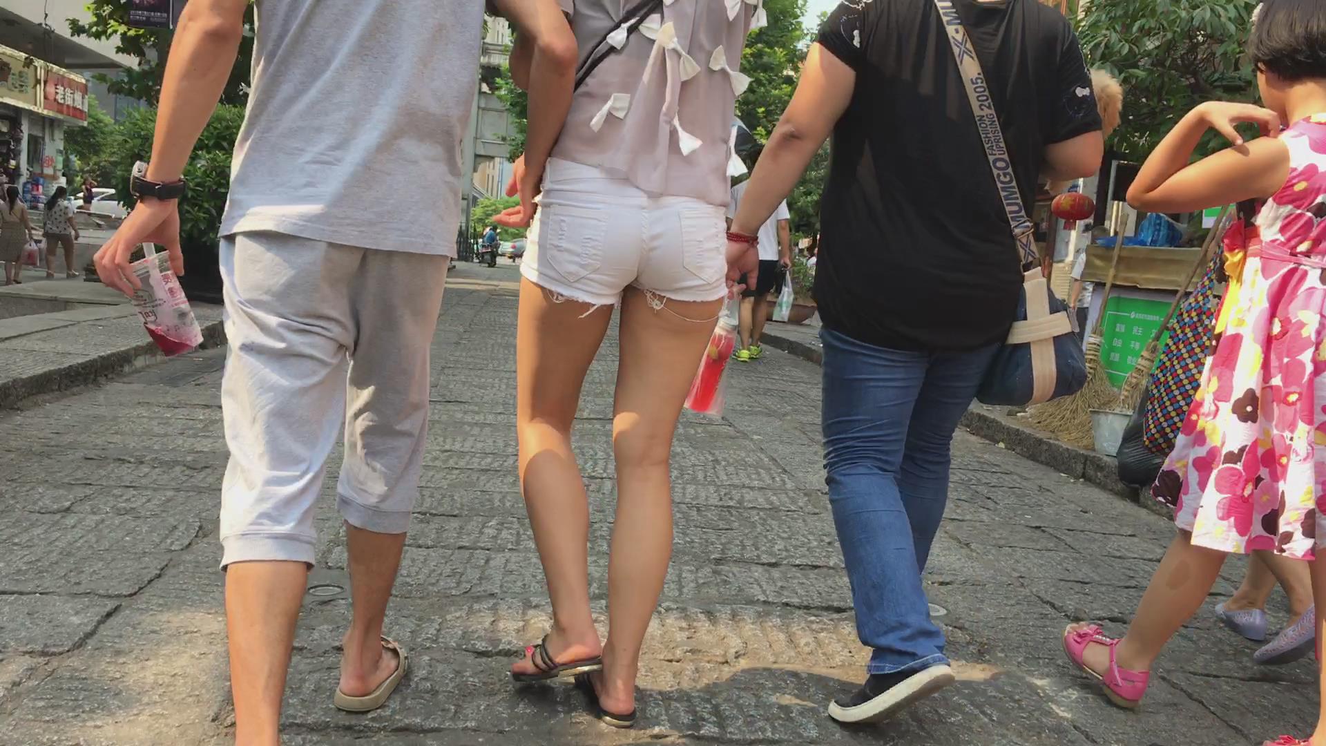 超紧身小圆臀白热裤美女陪男友压马路。 编号4599