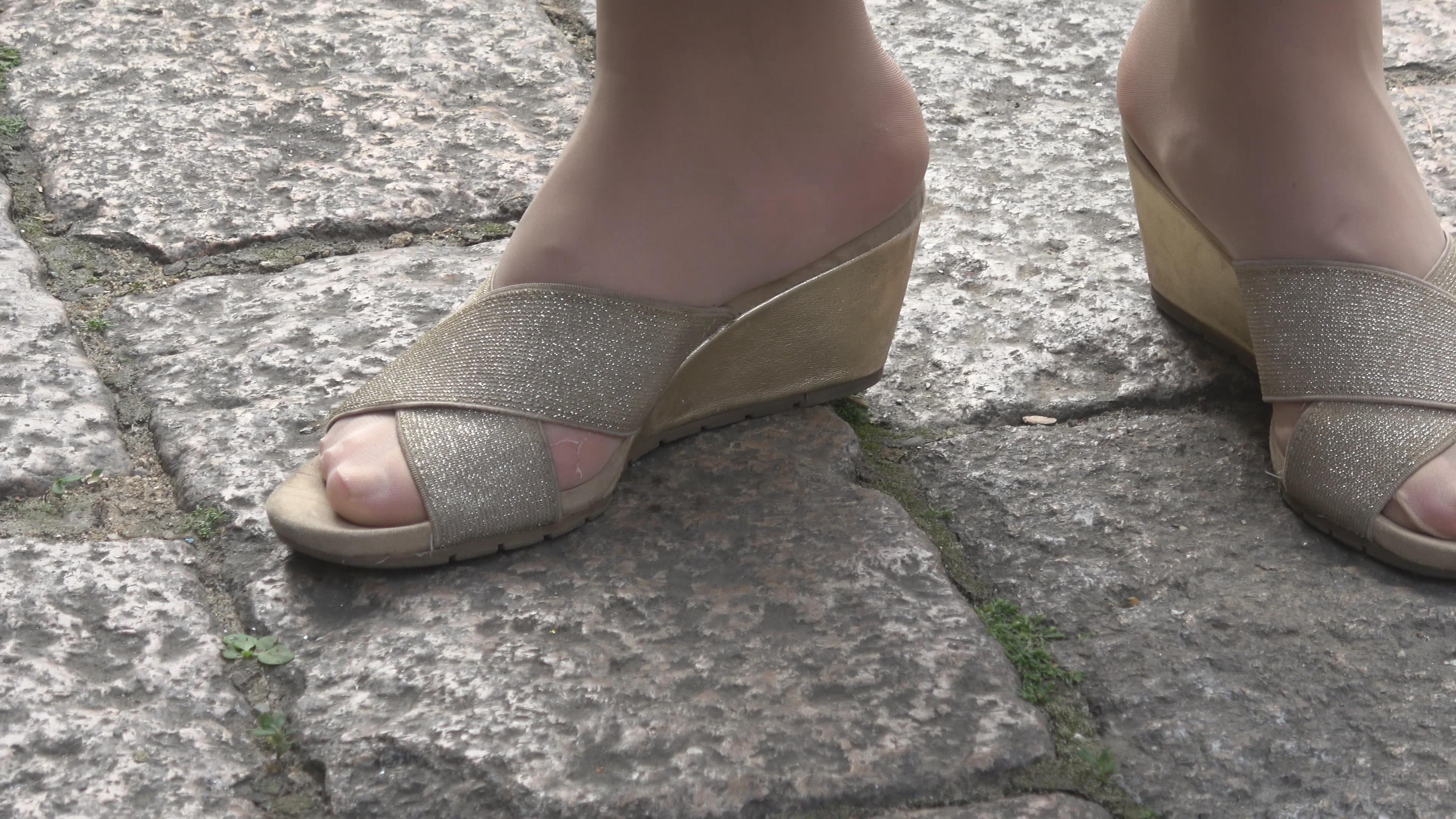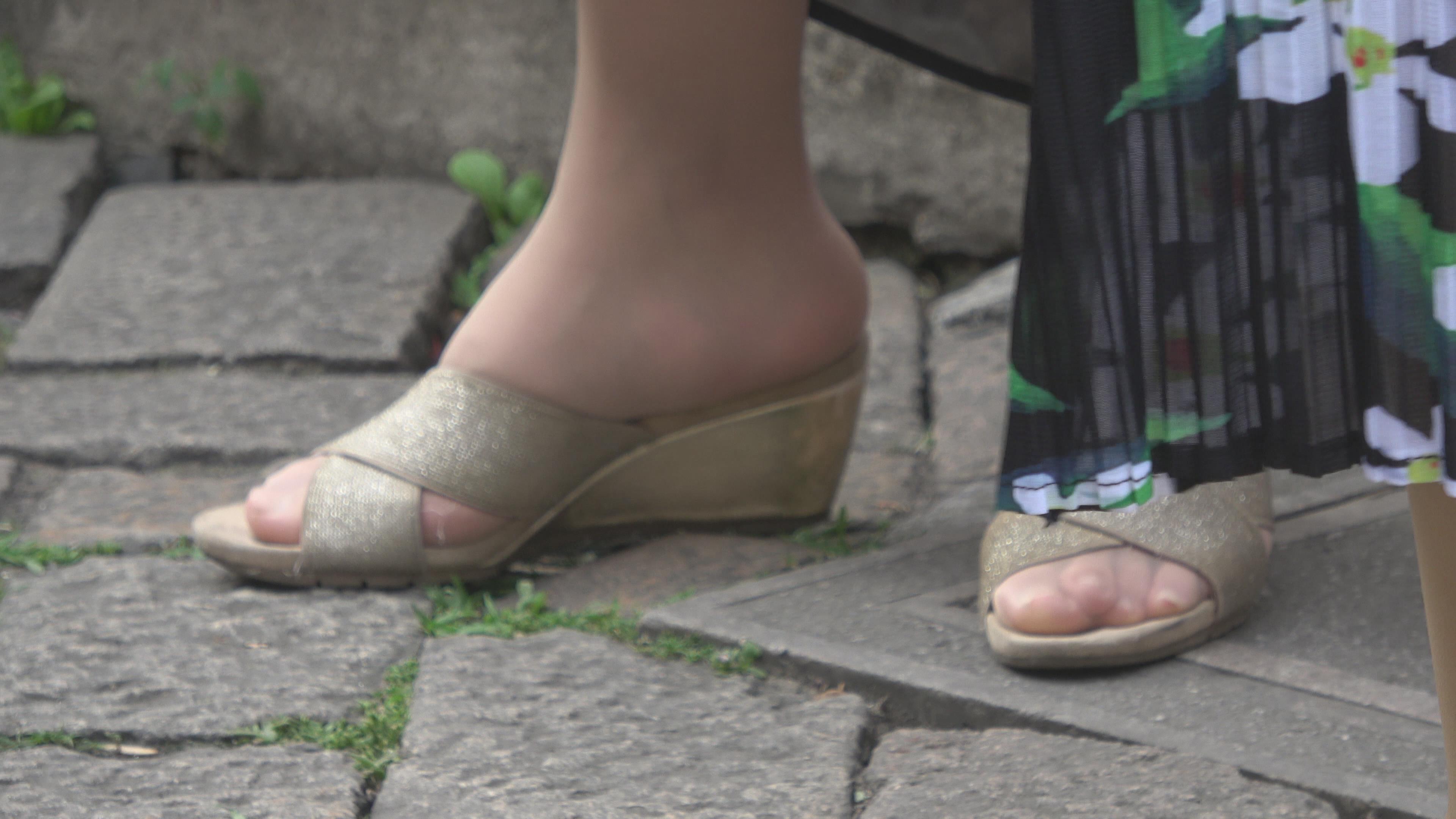 4K 高贵气质街拍肉丝美足凉高跟少妇 编号6406