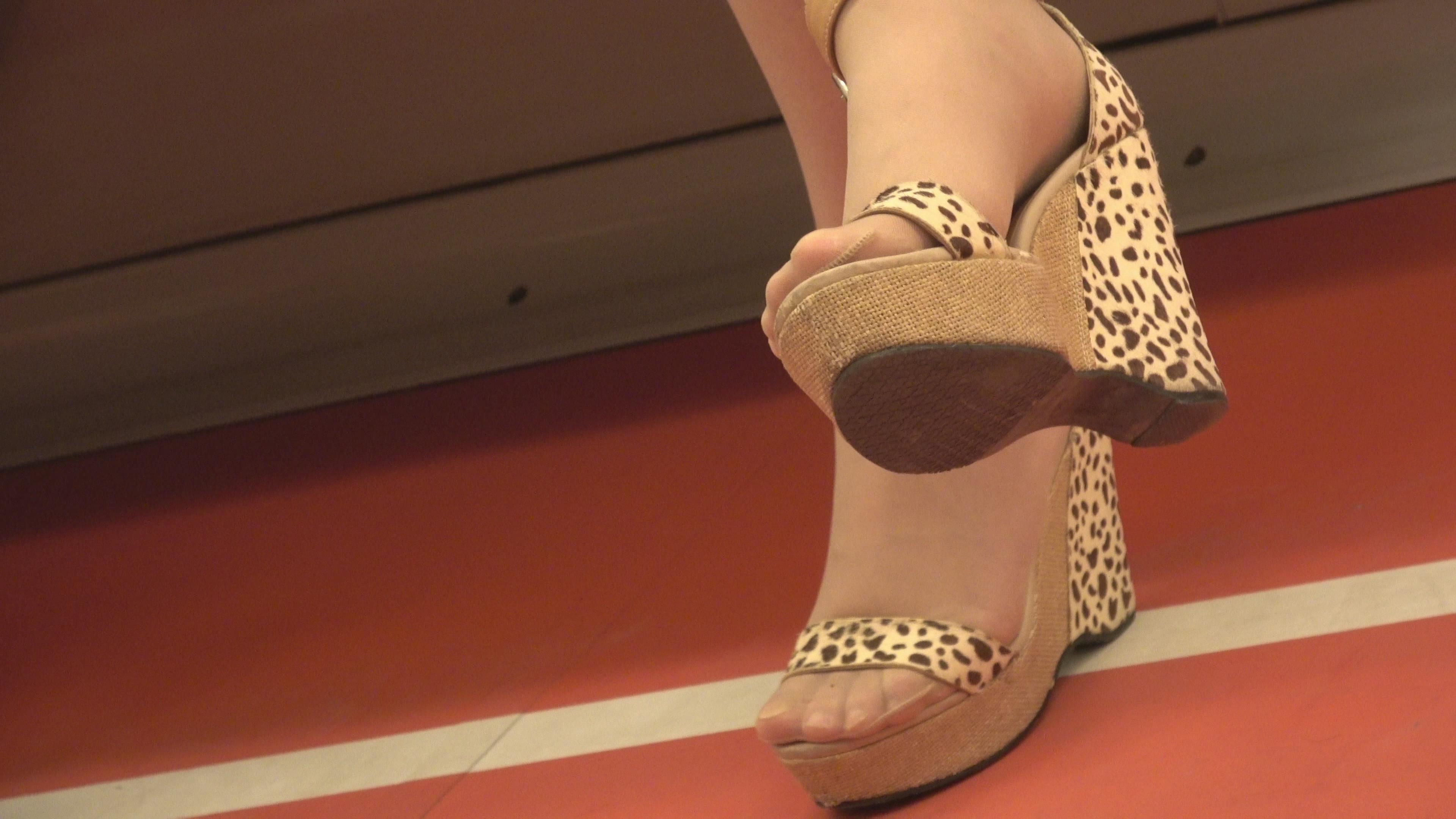 4K 地铁上的豹纹坡高跟鞋街拍肉丝女孩 编号6408