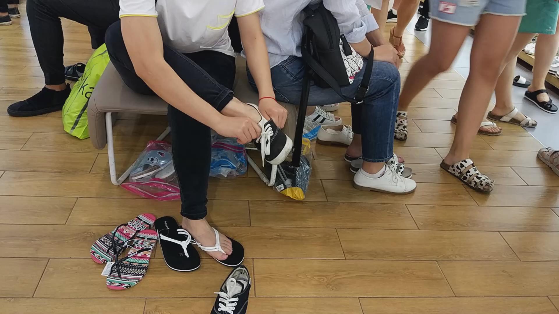 街拍鞋店试鞋的美腿丝足美女 编号6427
