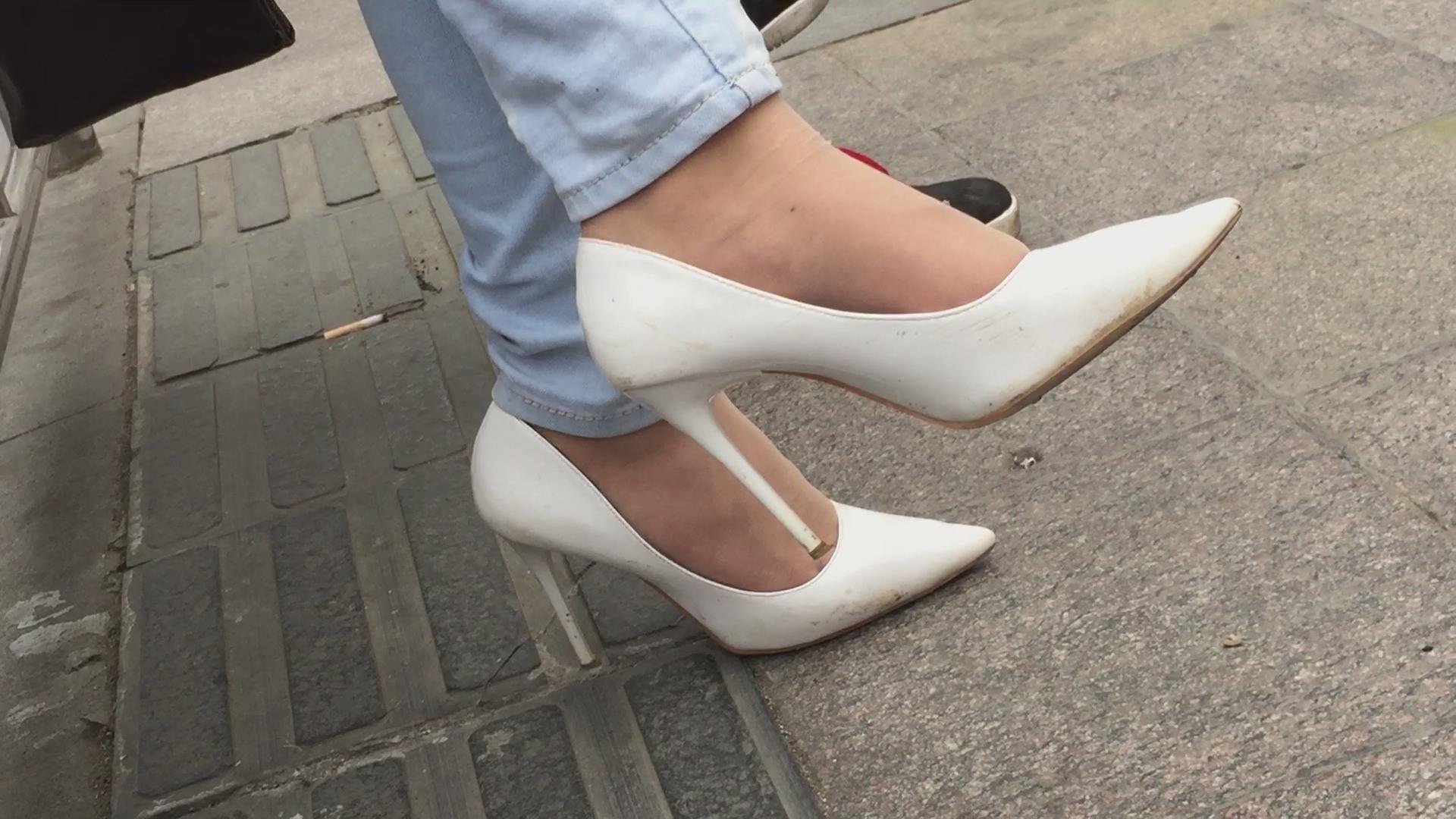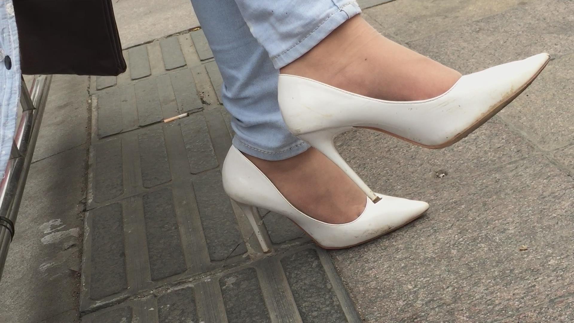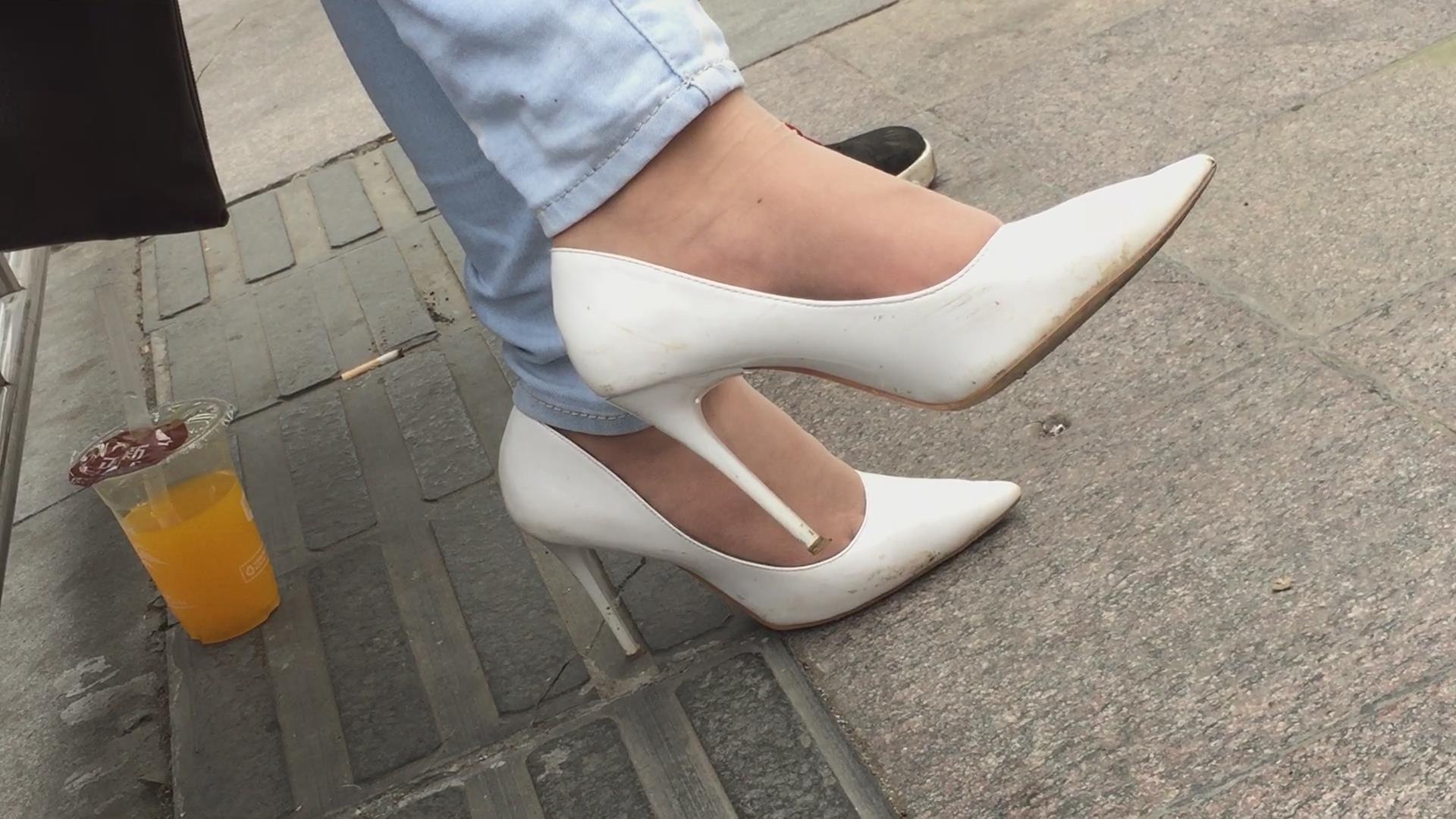 街拍极品细腿尖嘴高跟鞋美足 编号6460