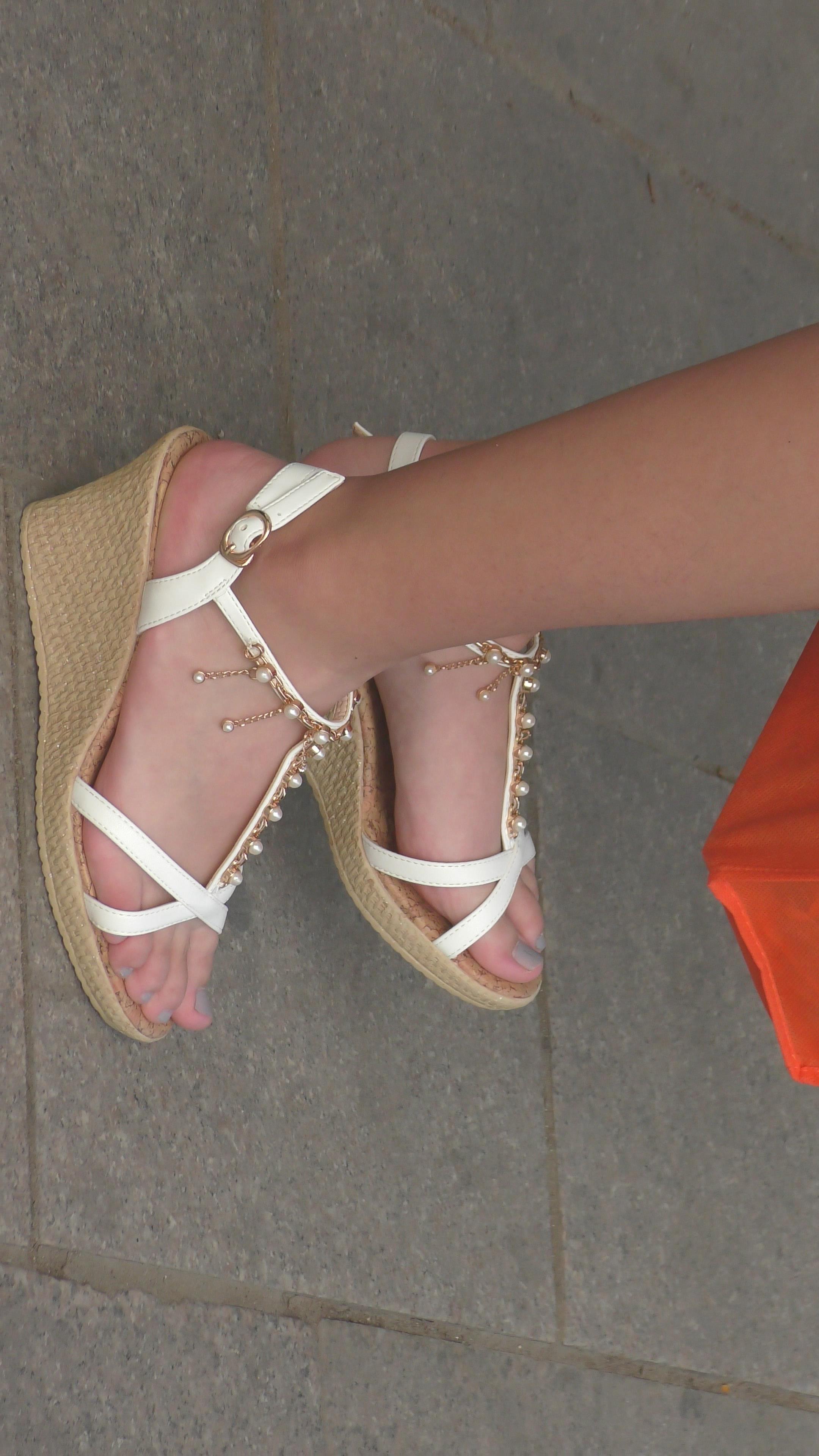 4k-公交站偶遇极品坡高跟凉鞋美眉,这玉足太精致漂亮啦 编号6529