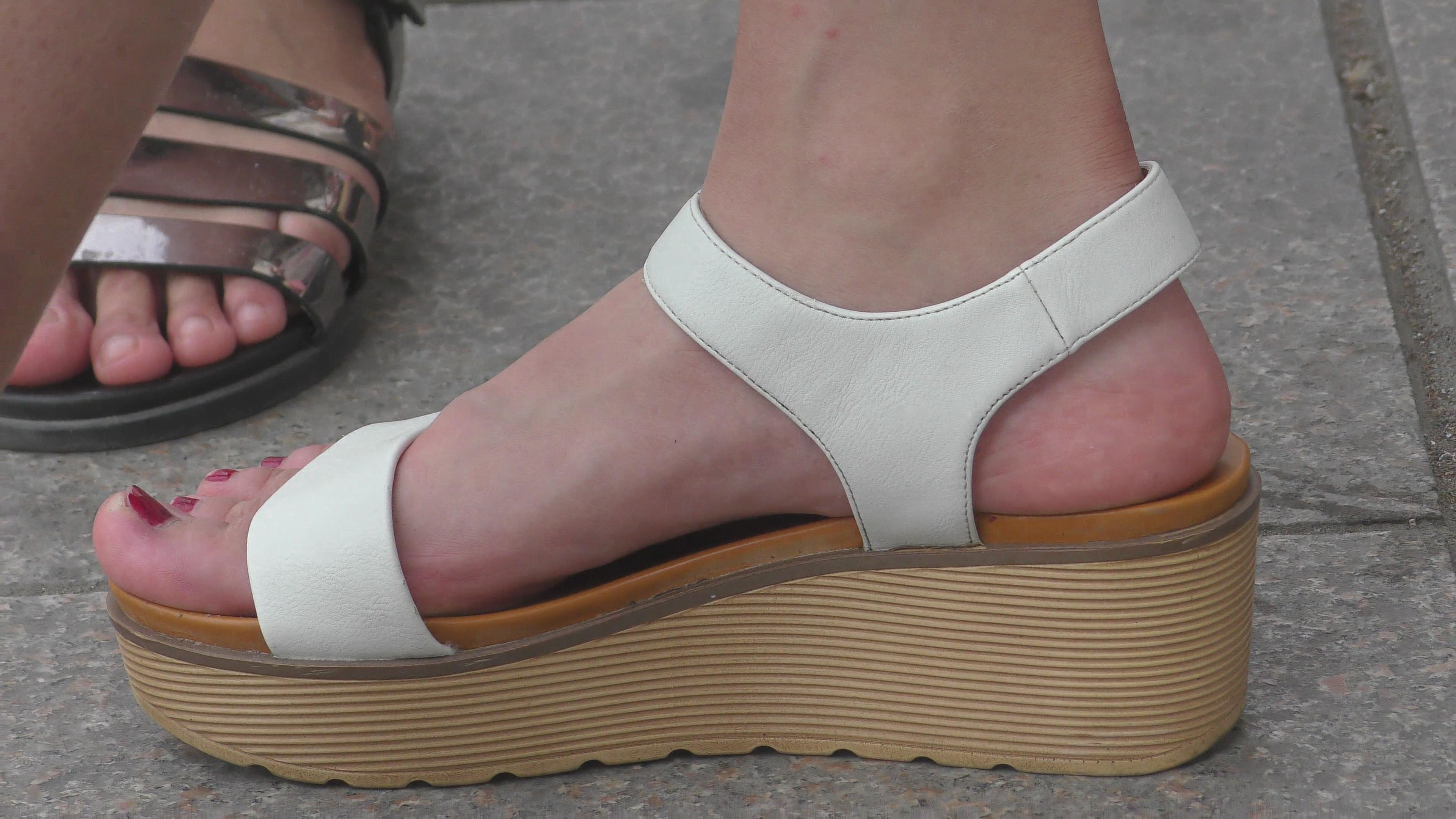 4k-干净素脚丫坡高跟鞋眼镜妹,白白的大腿让人想入非非 编号6558