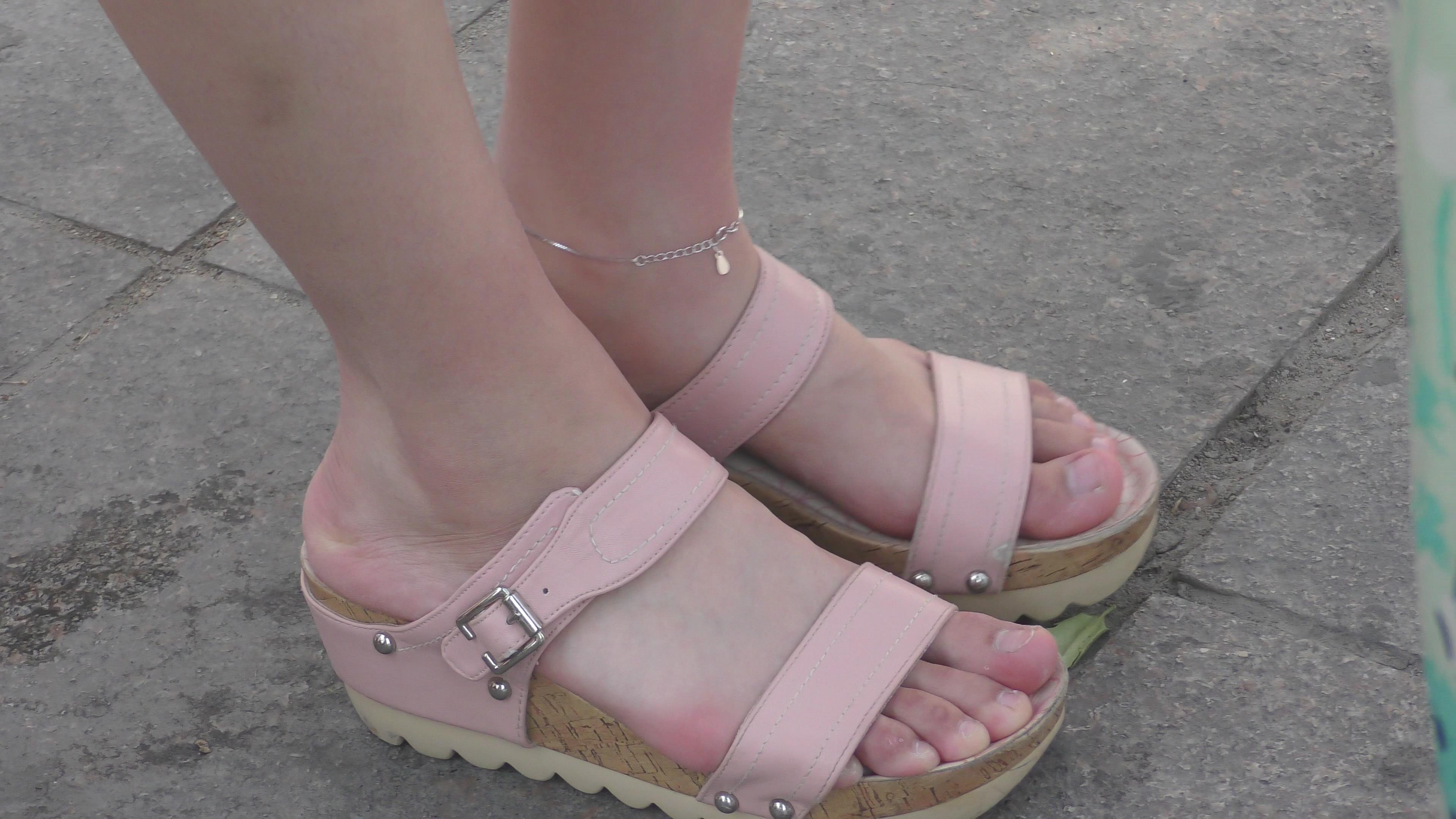 4k-逆天颜值的粉色坡高跟凉鞋美女,马尾辫更显清纯 编号6576