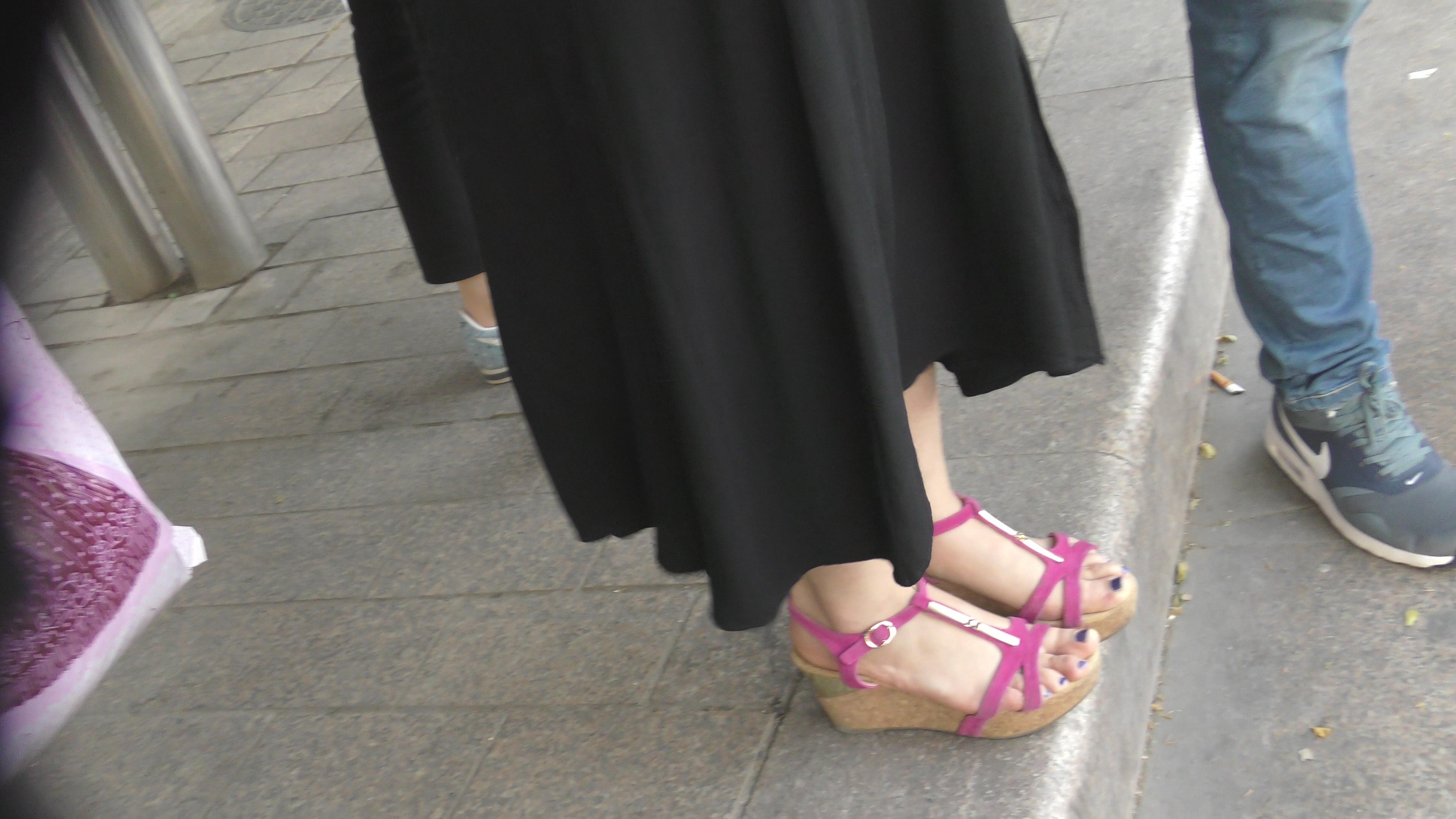 4k-坡高跟凉鞋玉指美眉等公车,颜值超高 编号6577
