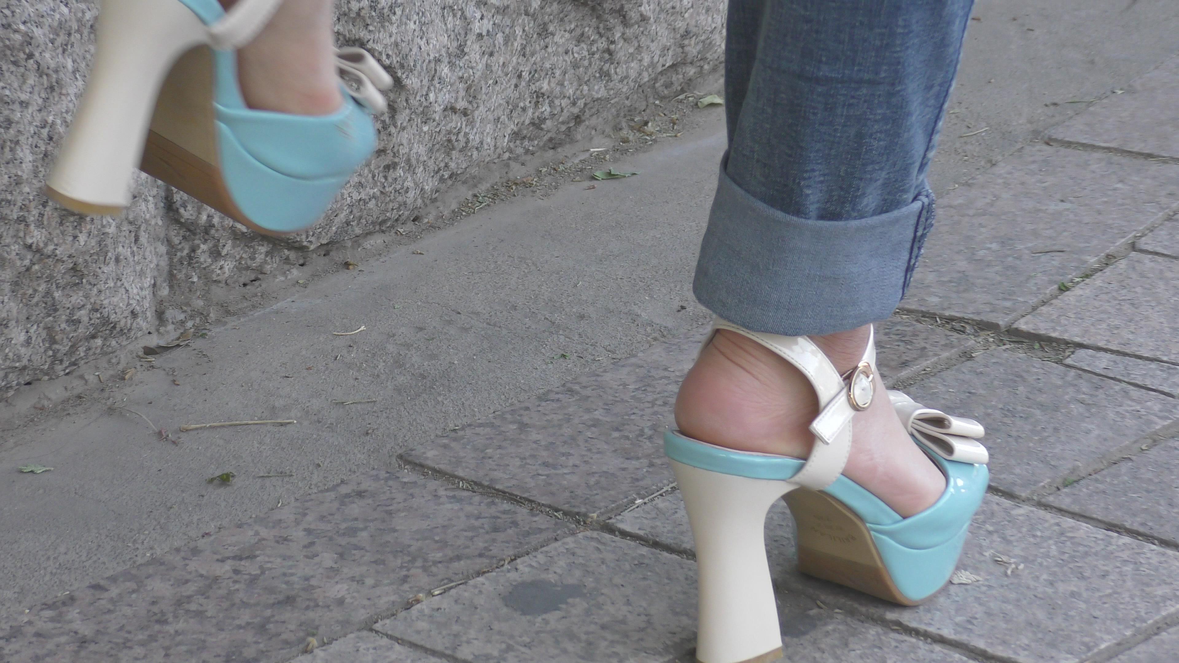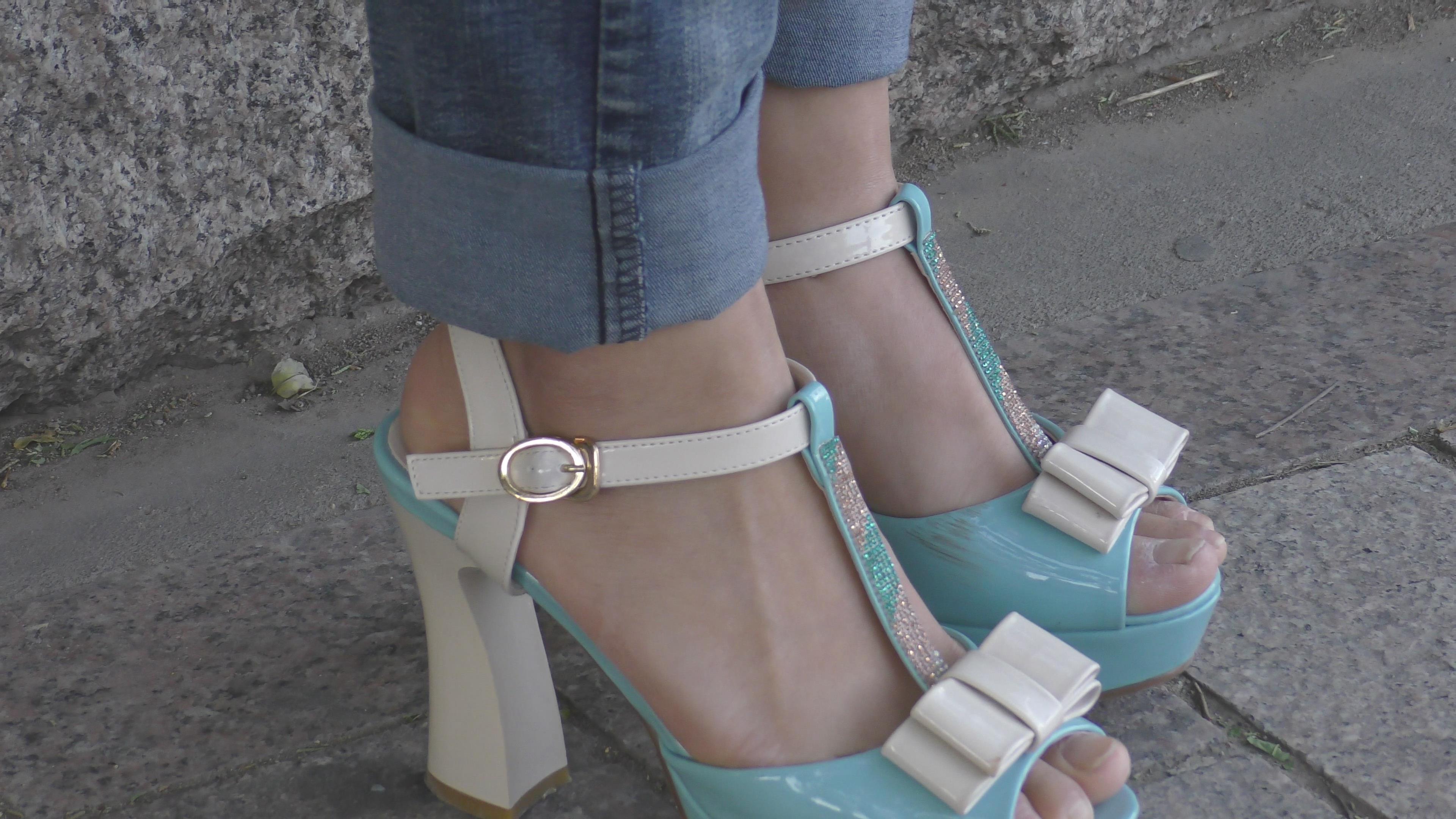 4k-蓝色紧身牛仔裤美眉,玉足高跟凉鞋很诱惑哦 编号6581