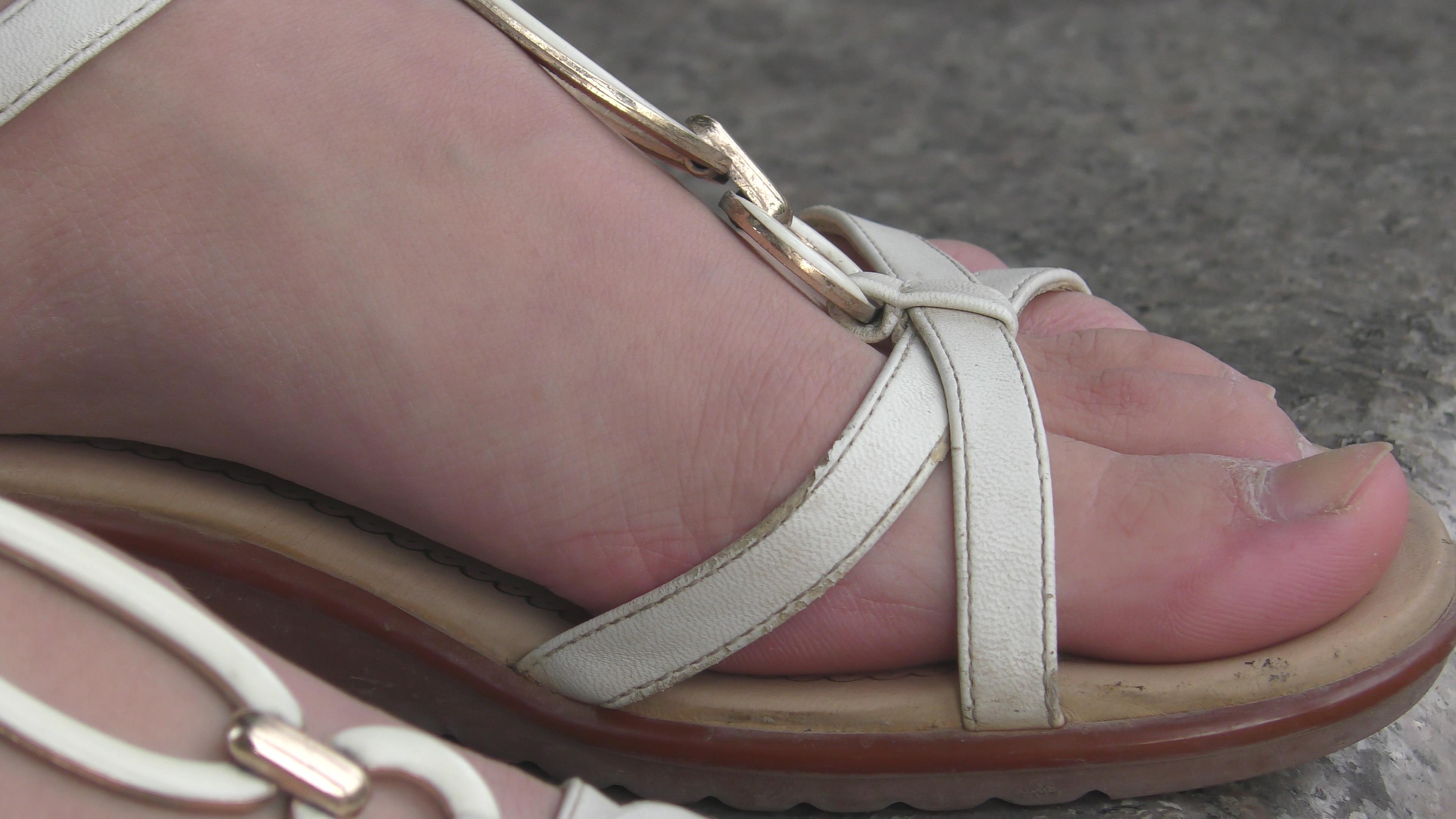 4k-等公车的光脚凉鞋素脚丫眼镜妹 编号6588