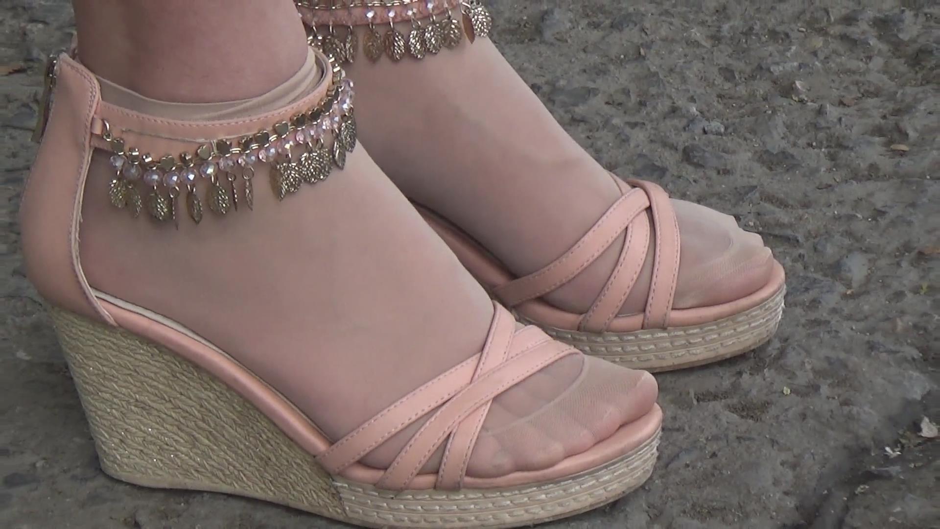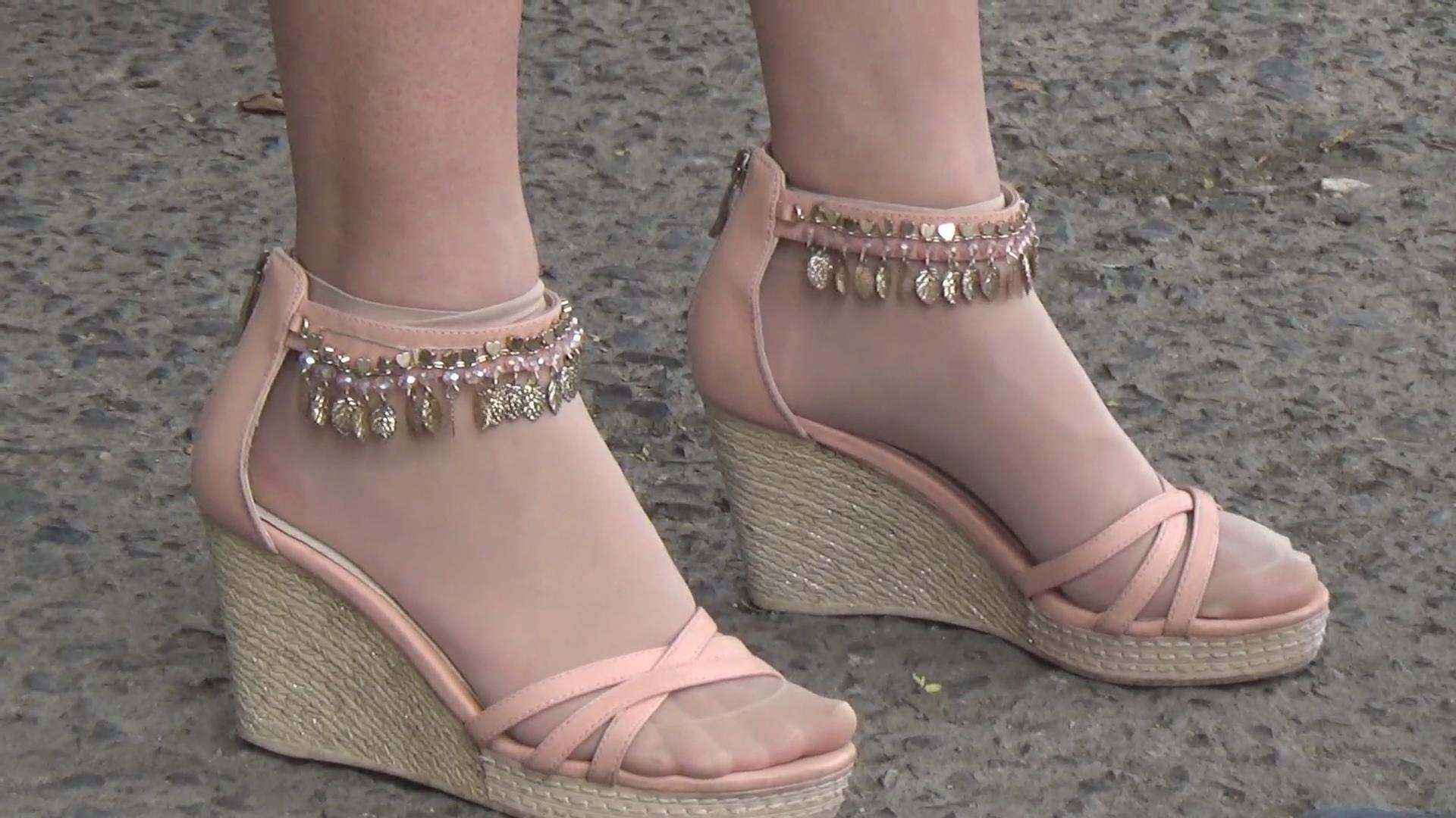 超漂亮的碎花裙女神,一双坡高跟凉鞋肉丝美足更是抢眼 编号6589
