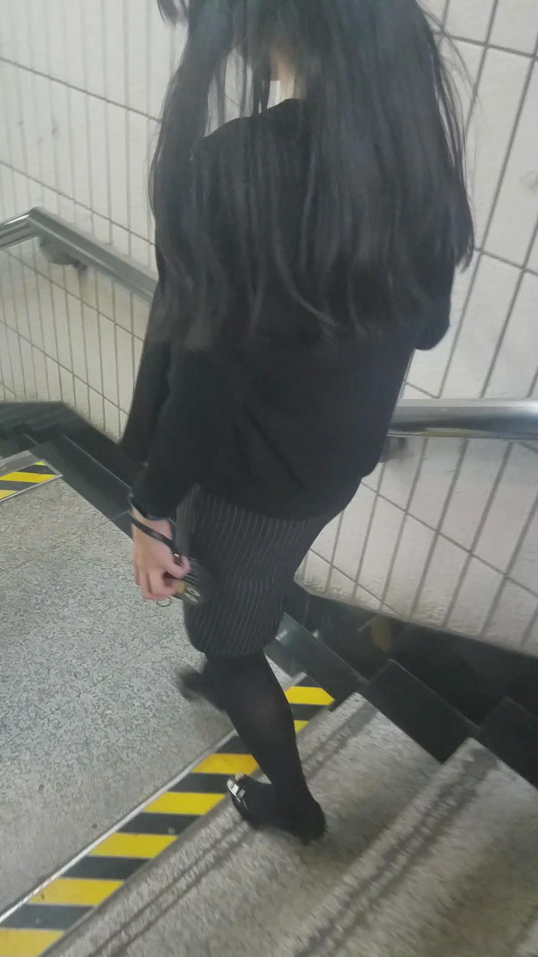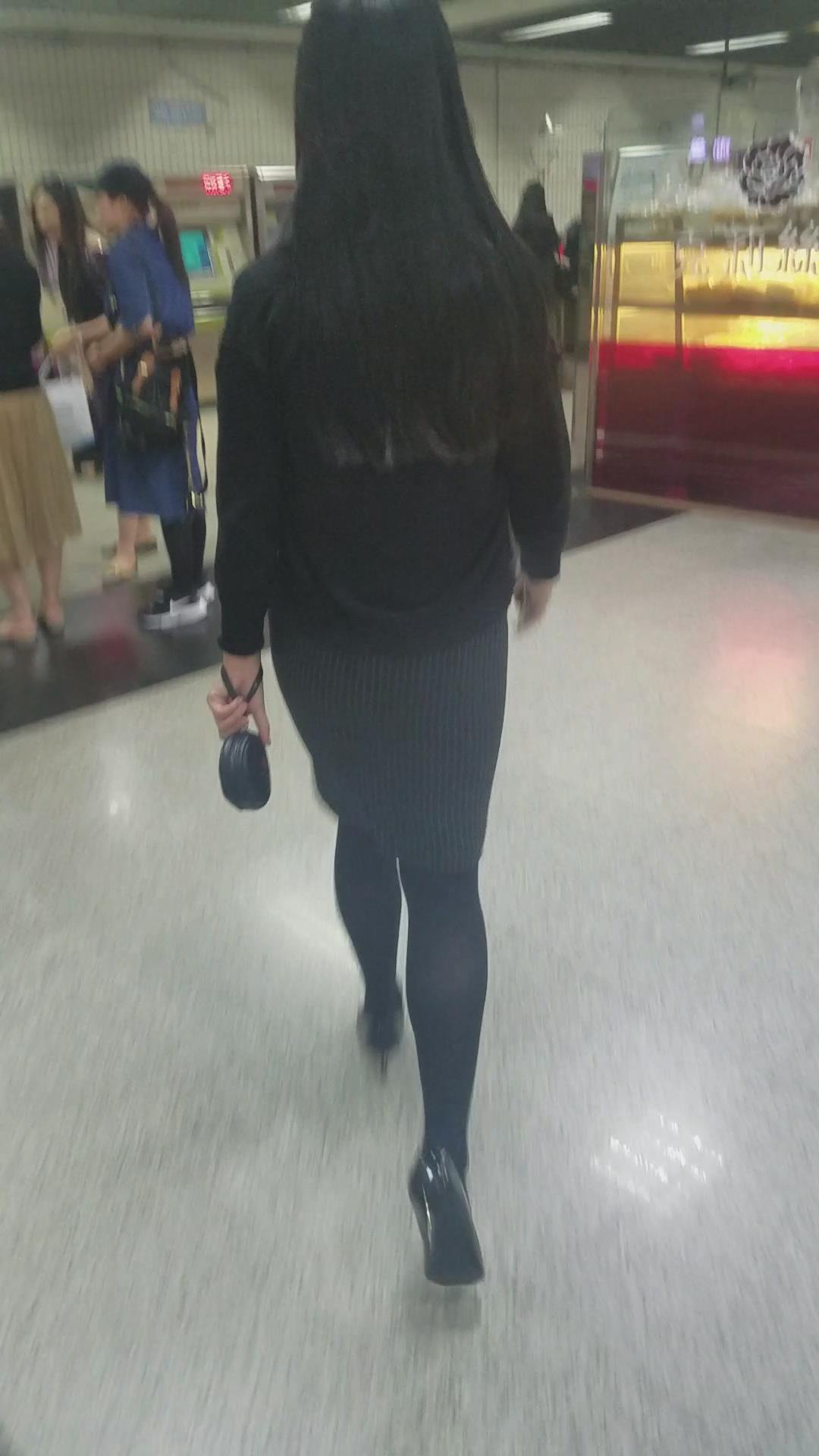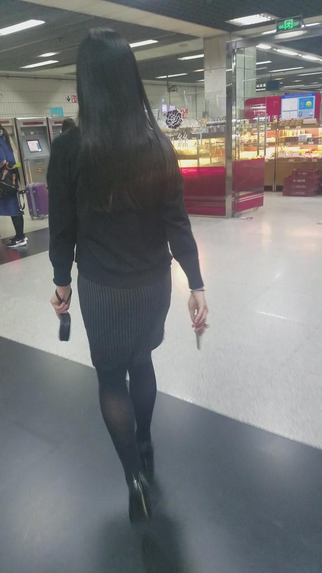 街拍黑丝袜紧身裙制服美女 编号2044