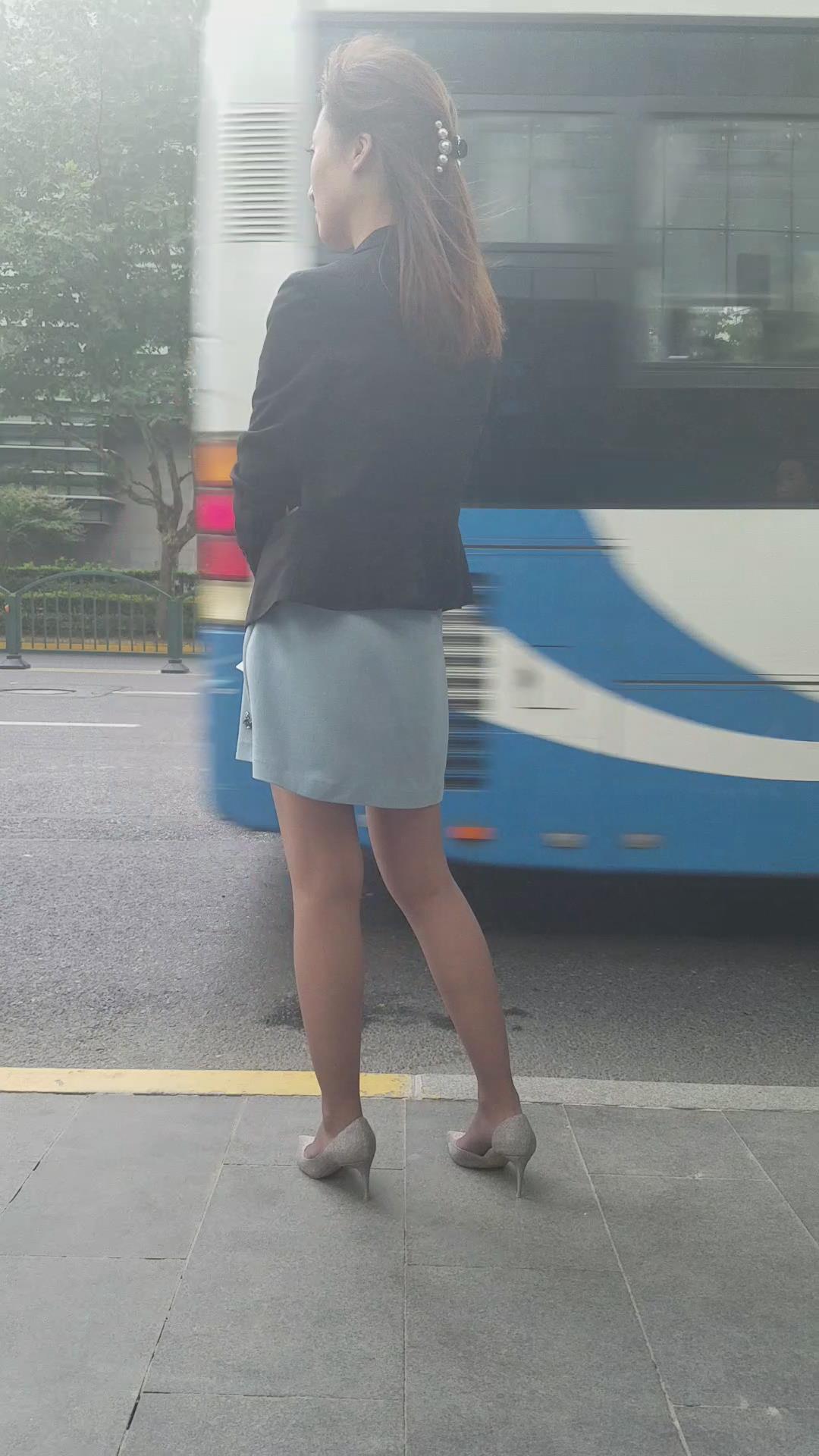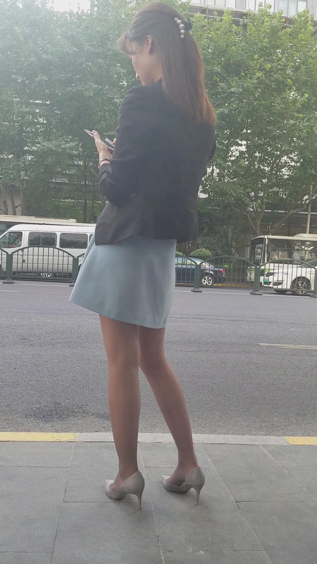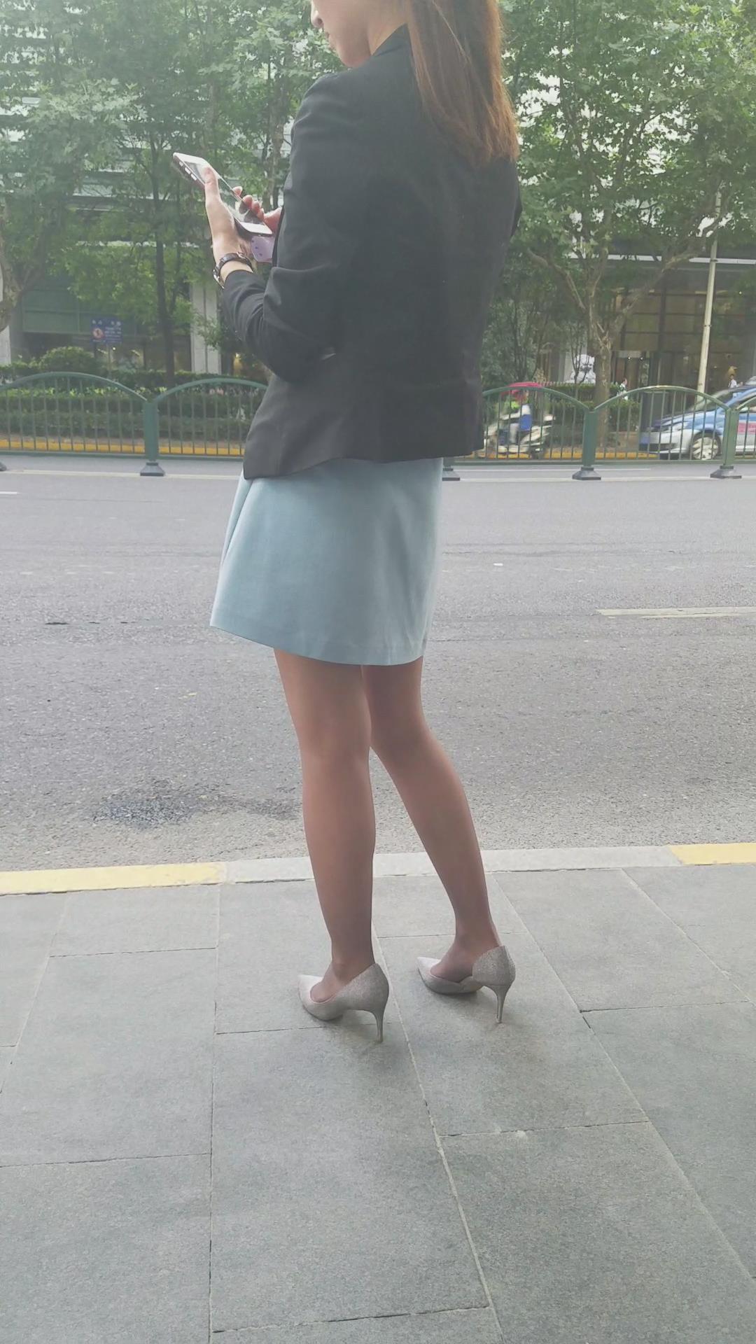 迷人的黑丝短裙高跟街拍美女 编号2052