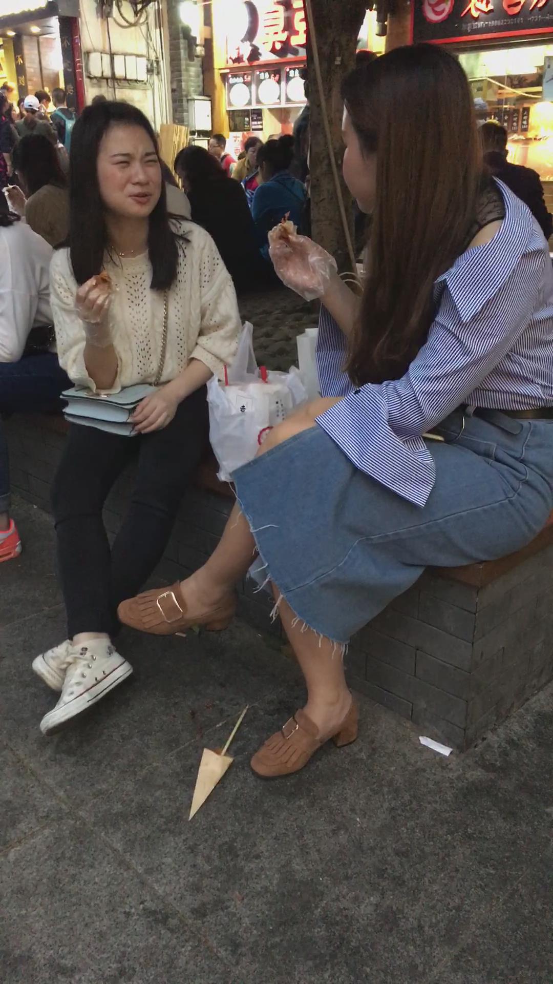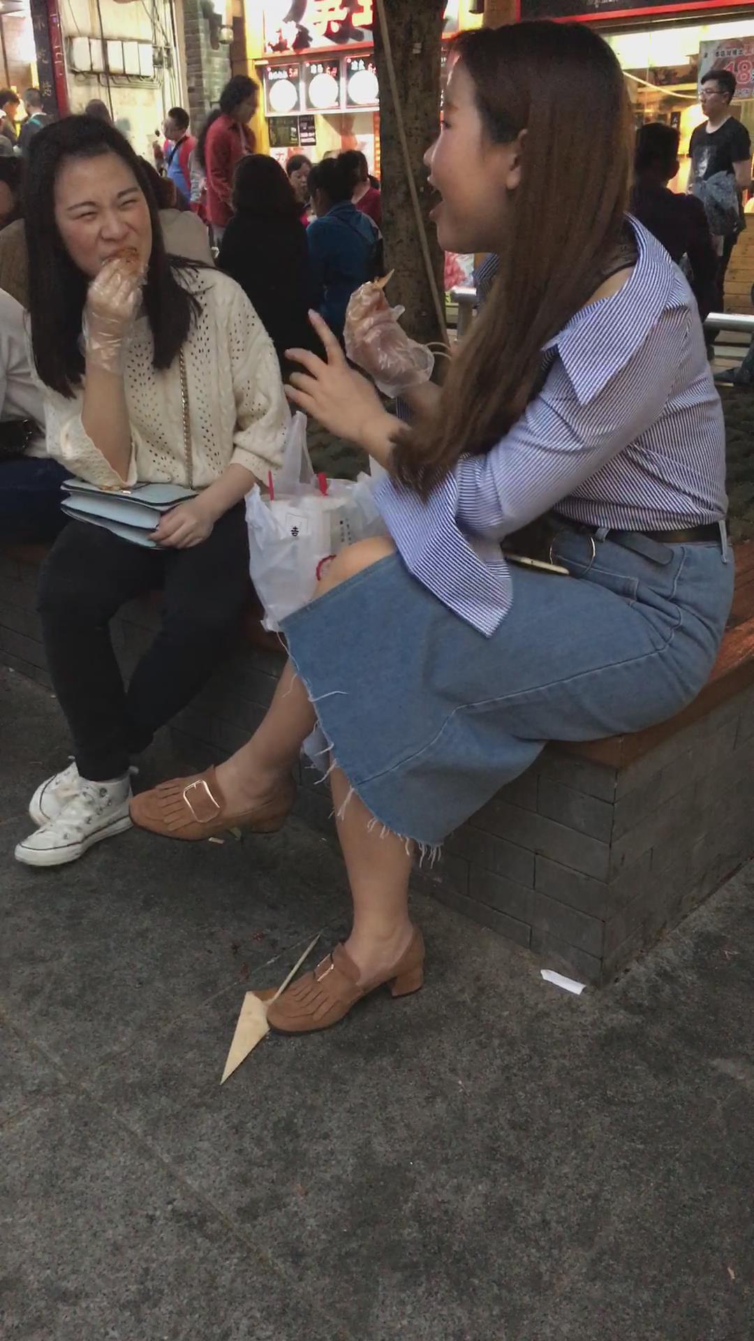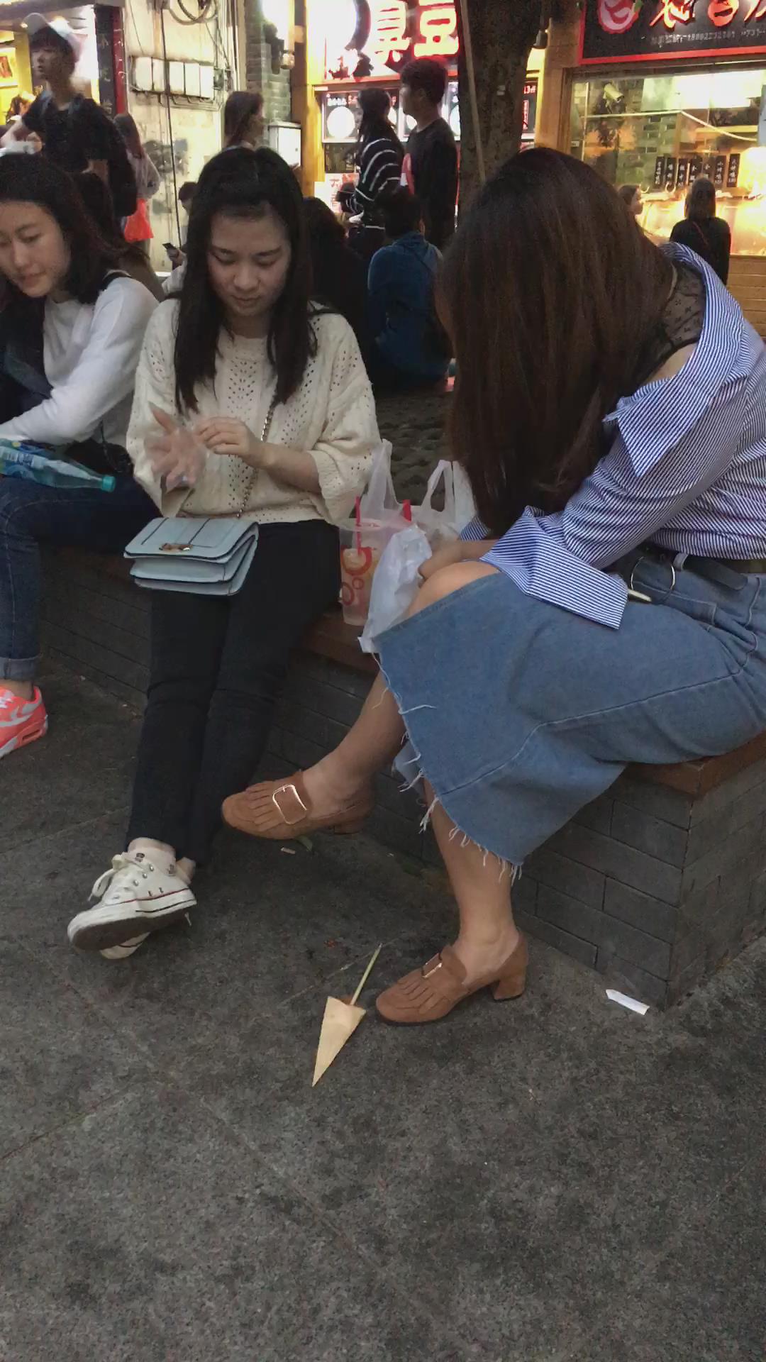 牛仔裙大姐姐跟闺蜜花坛边聊天 编号2110