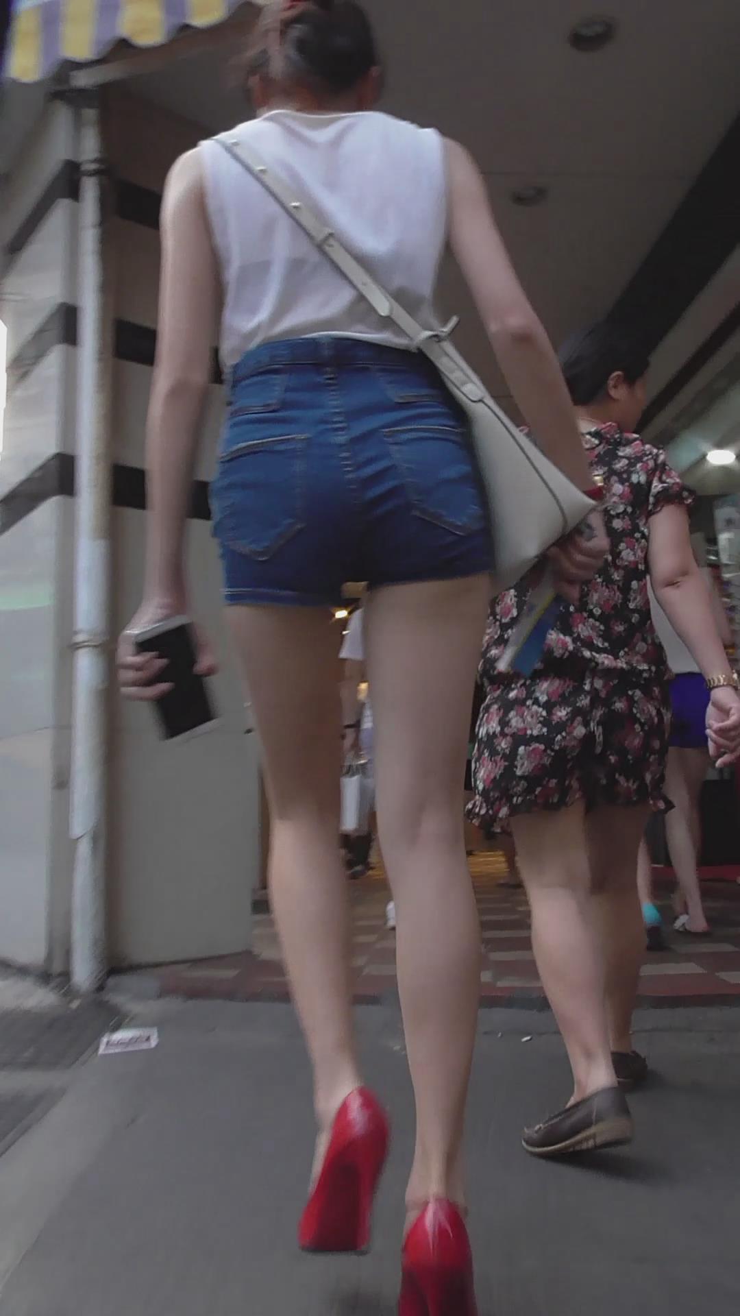 街拍极品大长腿红高跟鞋性感美女 编号4630