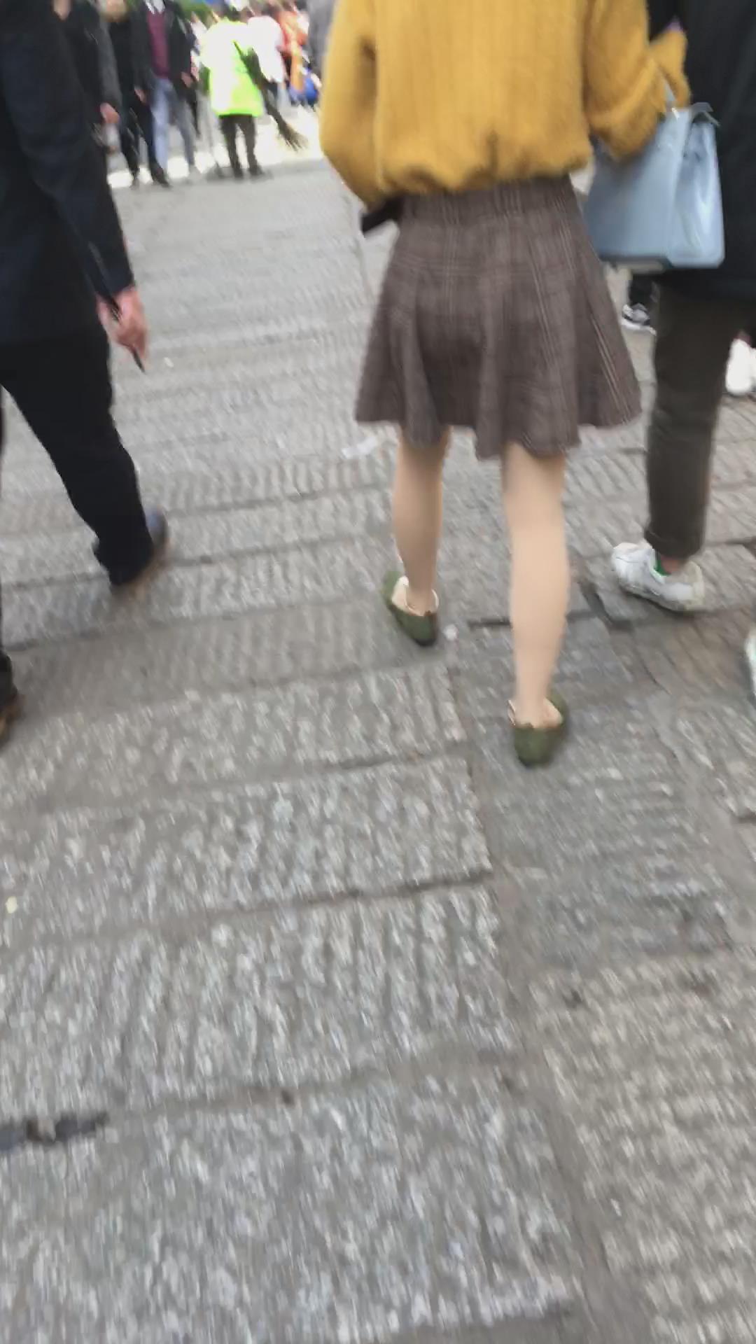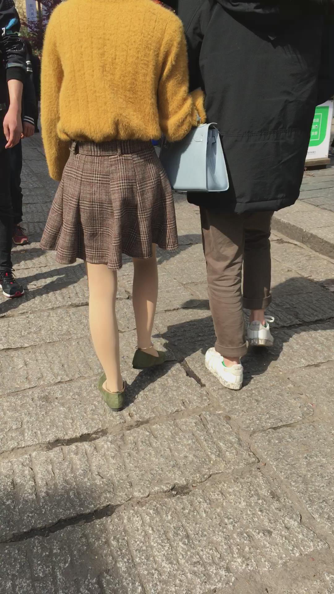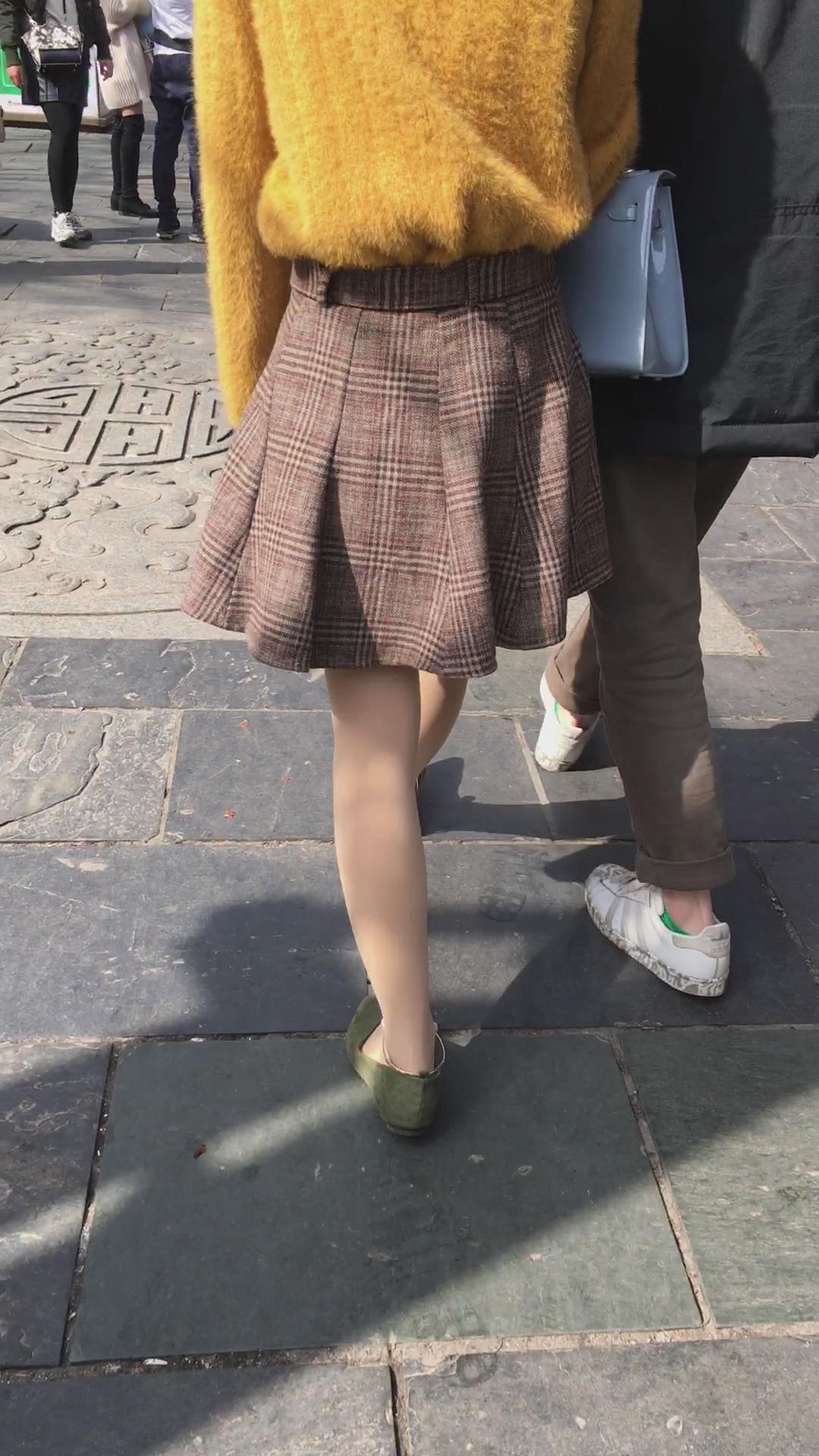 黄色毛衣短裙街拍肉丝视频 编号2153