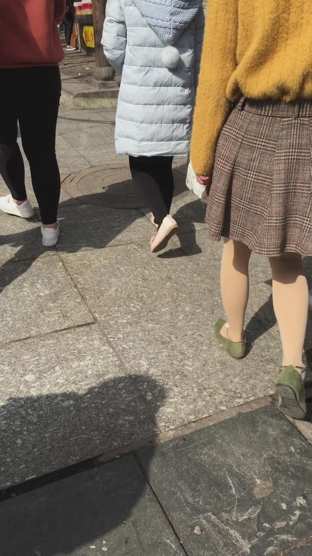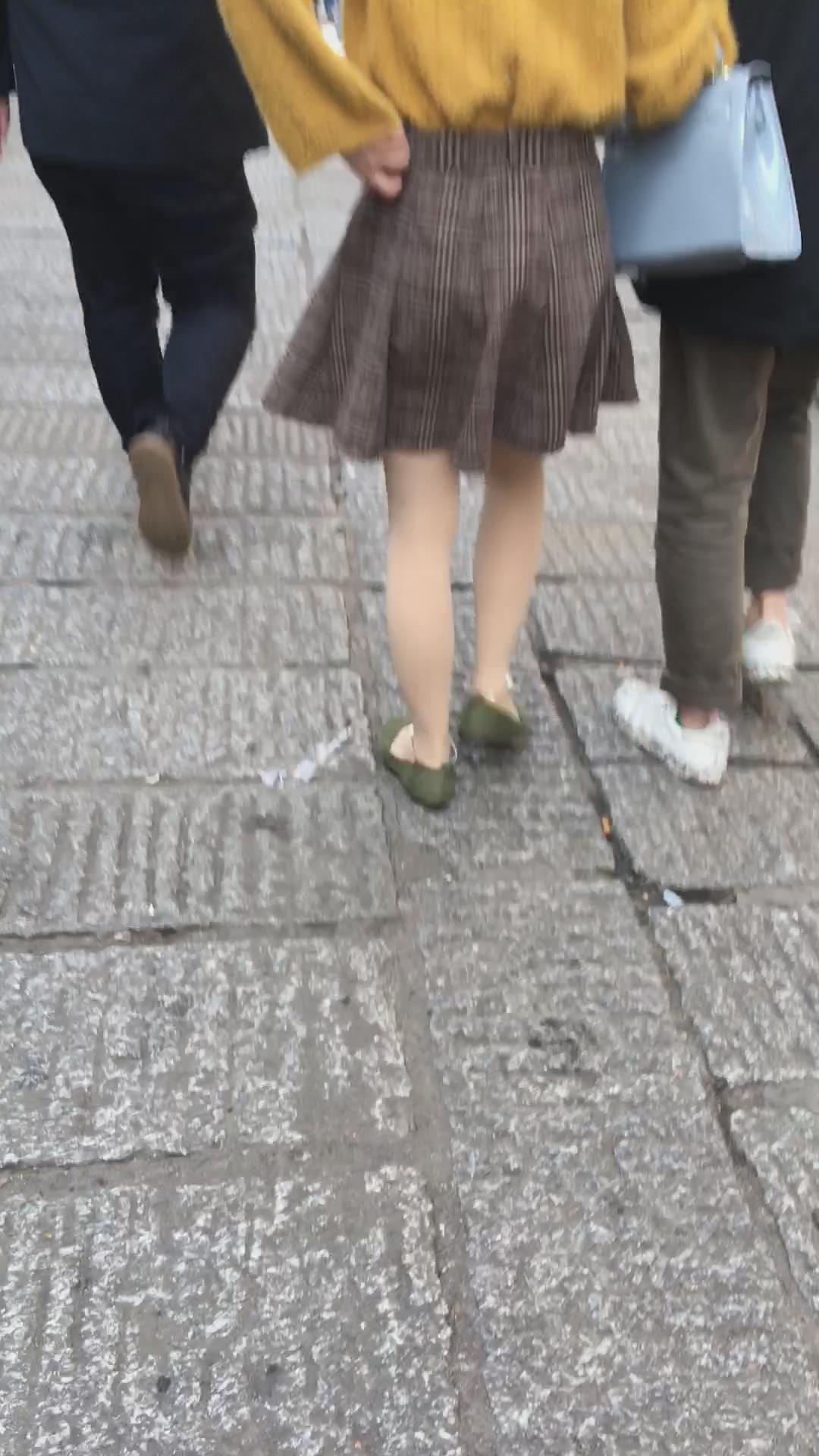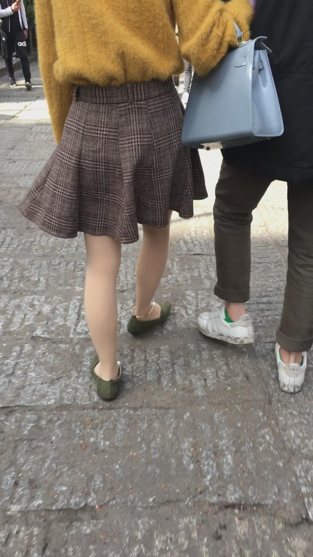 黄色毛衣短裙街拍肉丝视频 编号2153