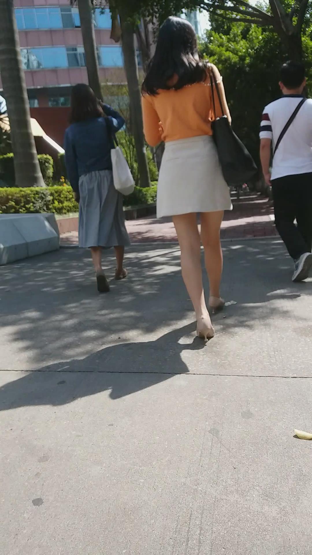 橙衣白色短裙裸腿高跟鞋极品美女 编号2169