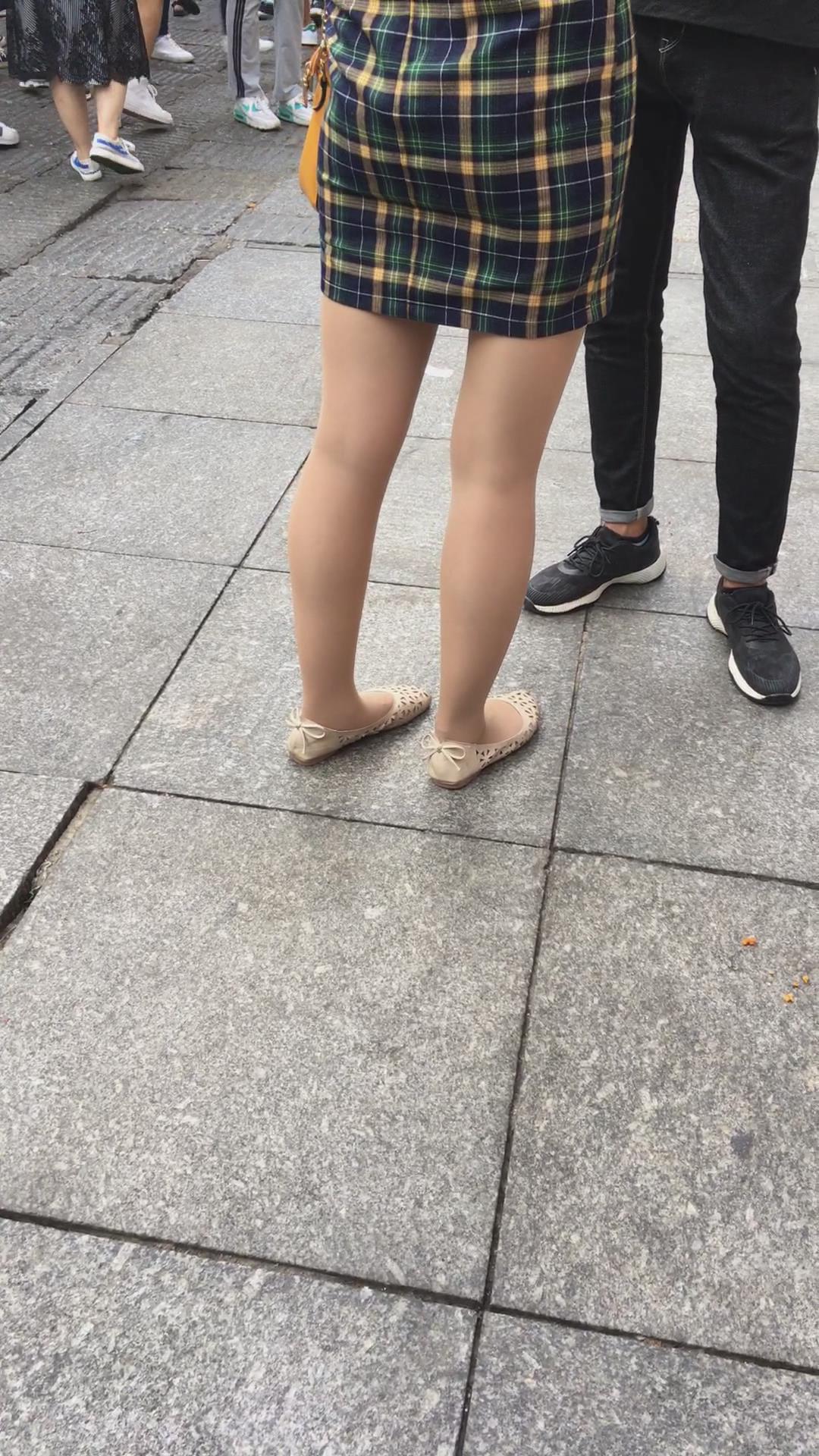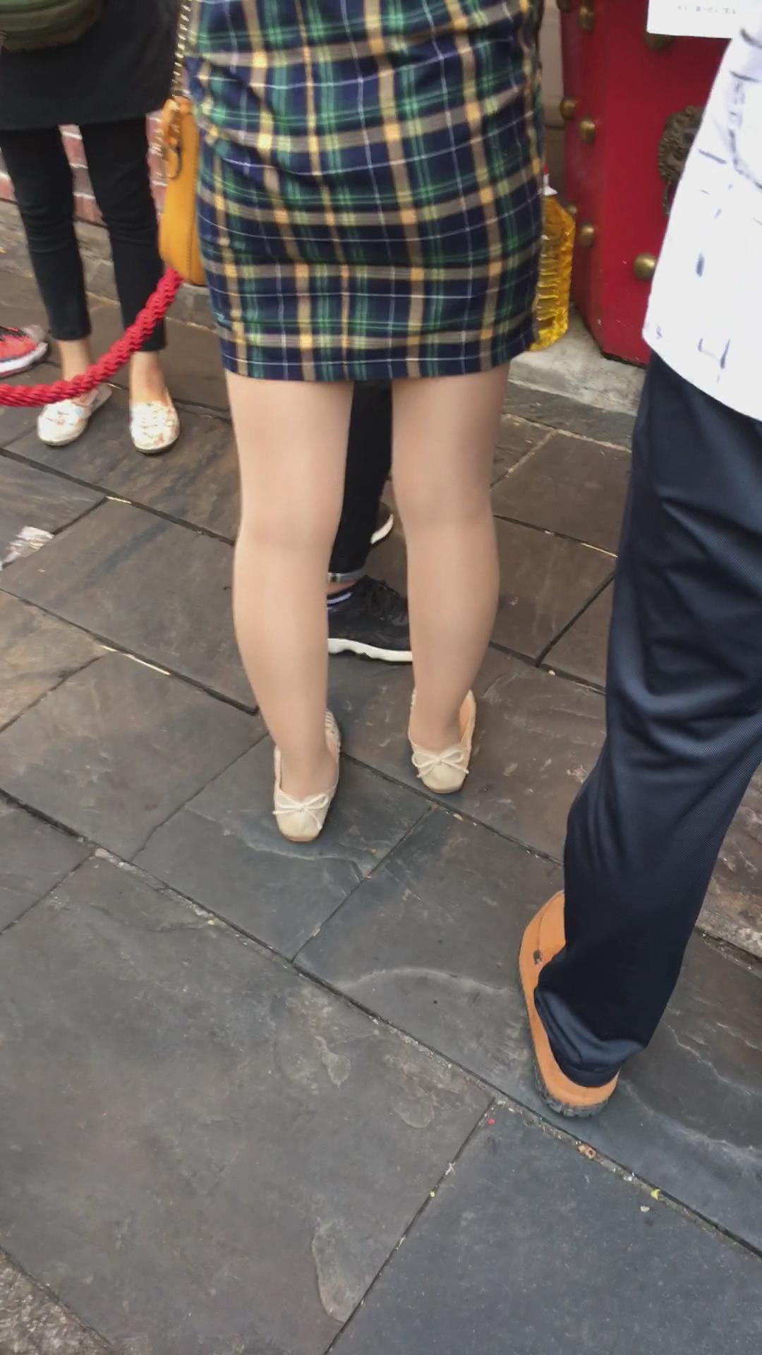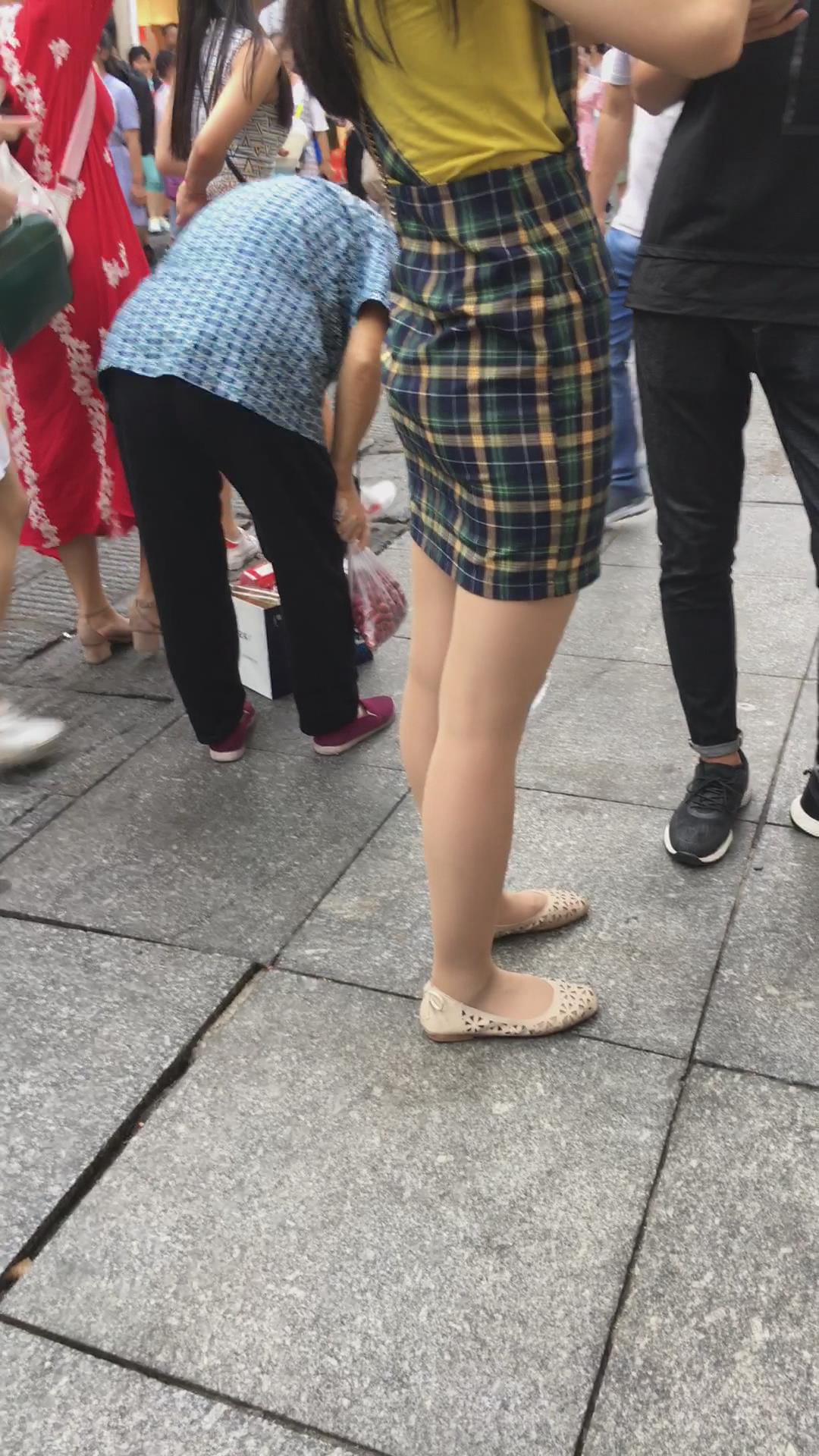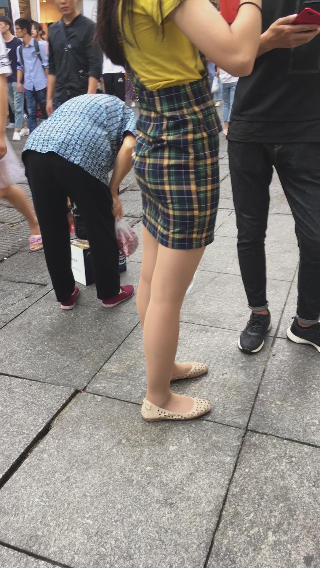 街拍小蛮腰翘臀格子吊带裙美女 编号2199