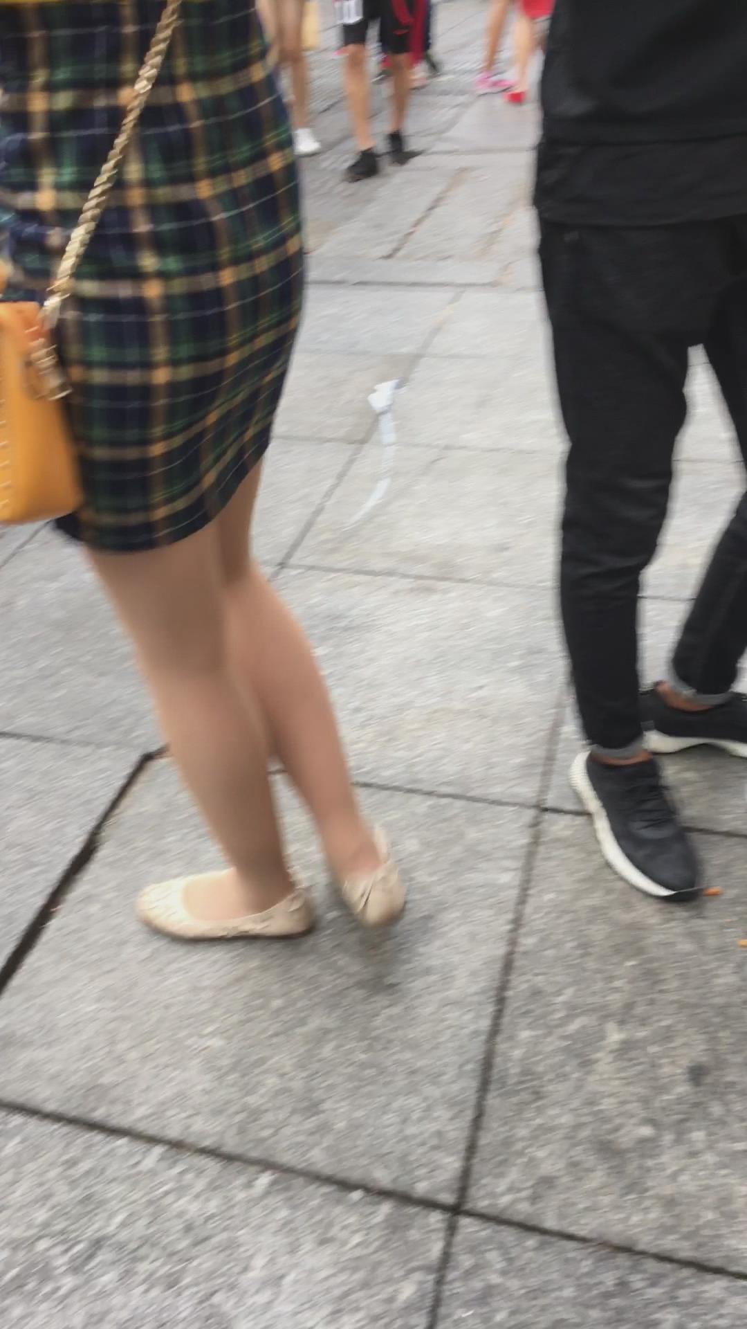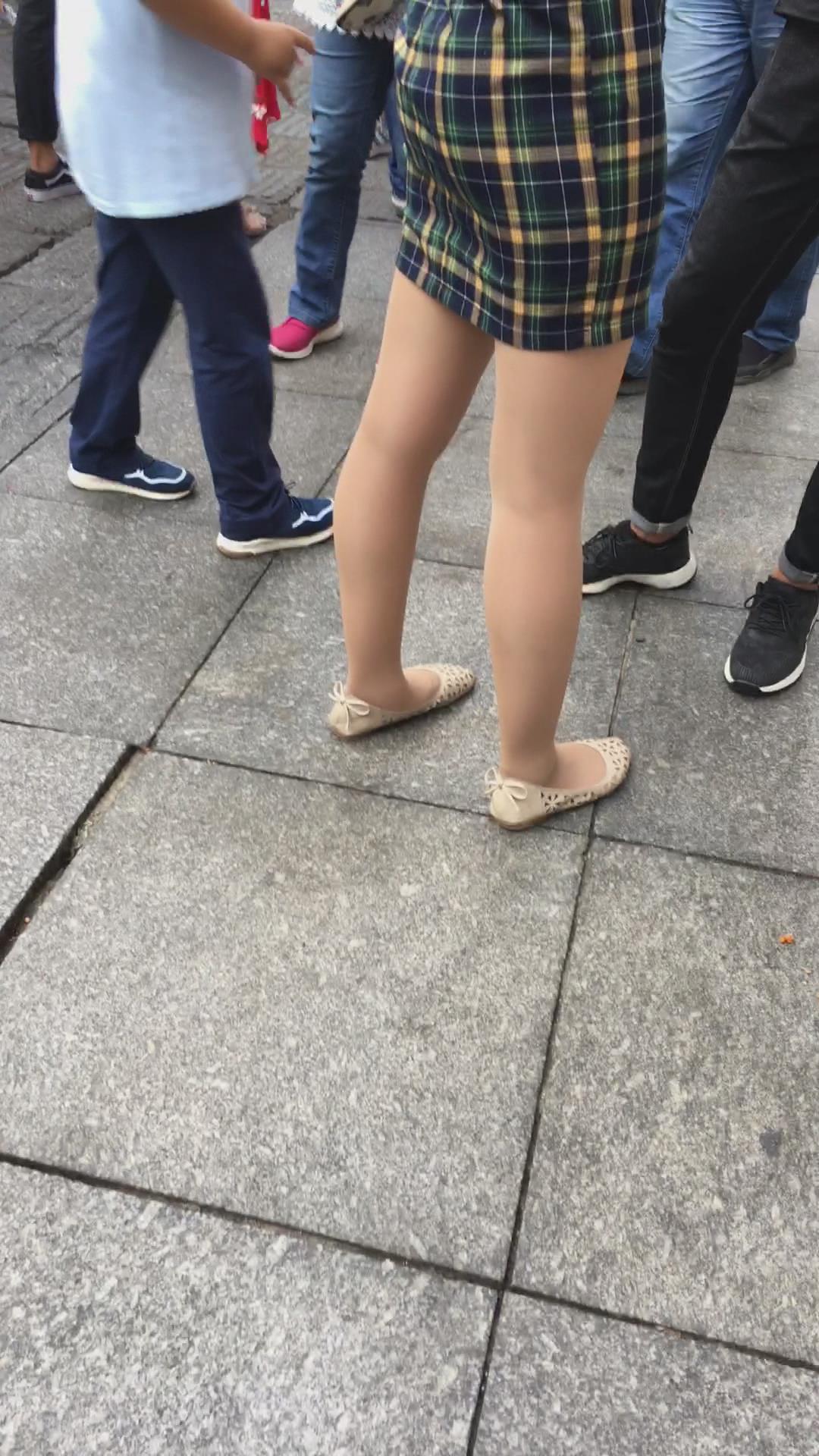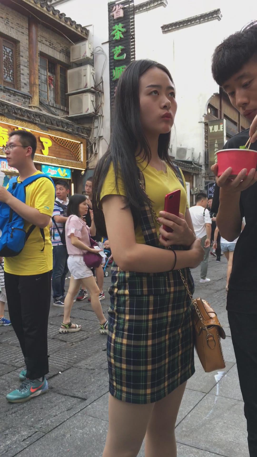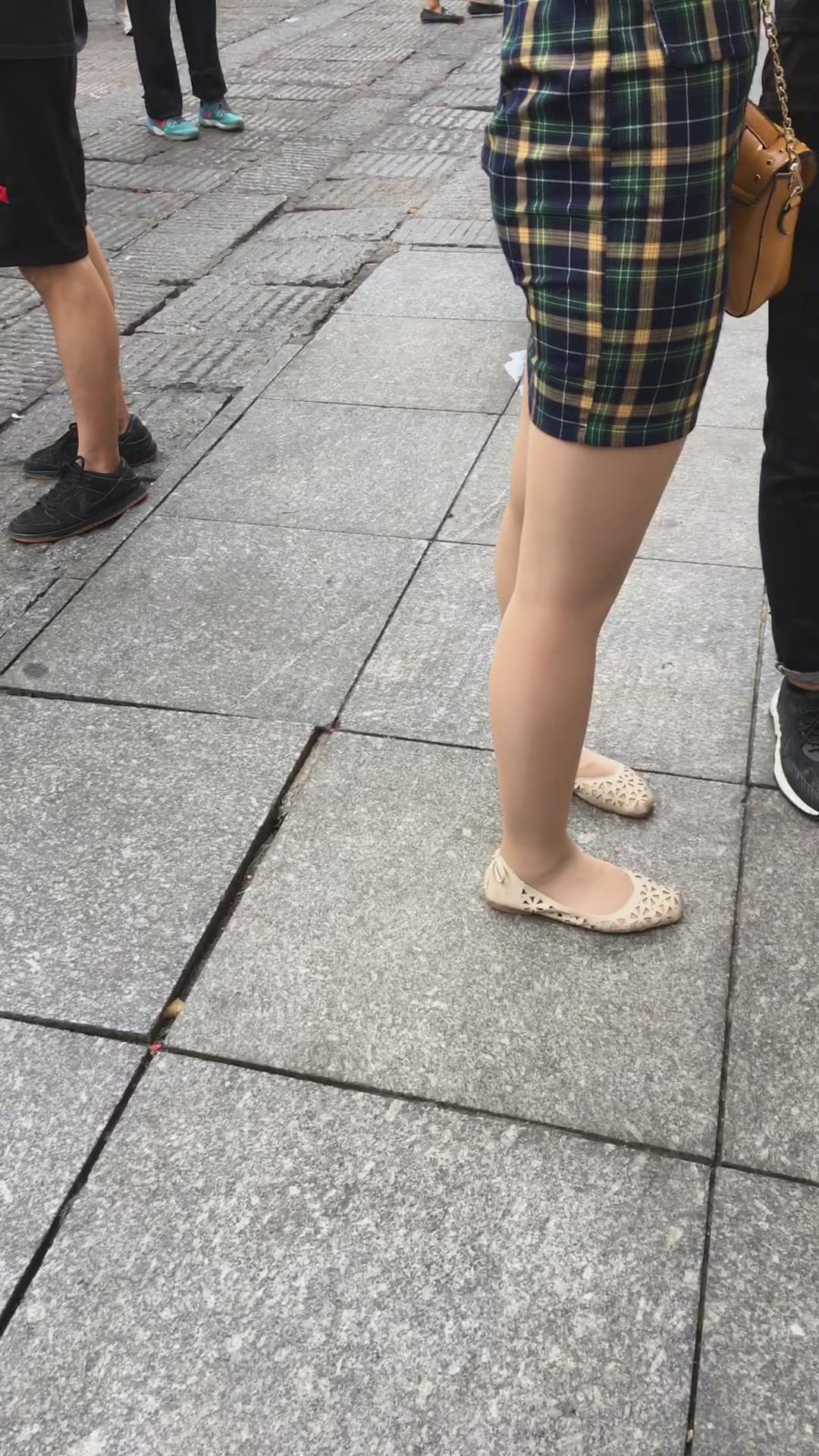 街拍小蛮腰翘臀格子吊带裙美女 编号2199