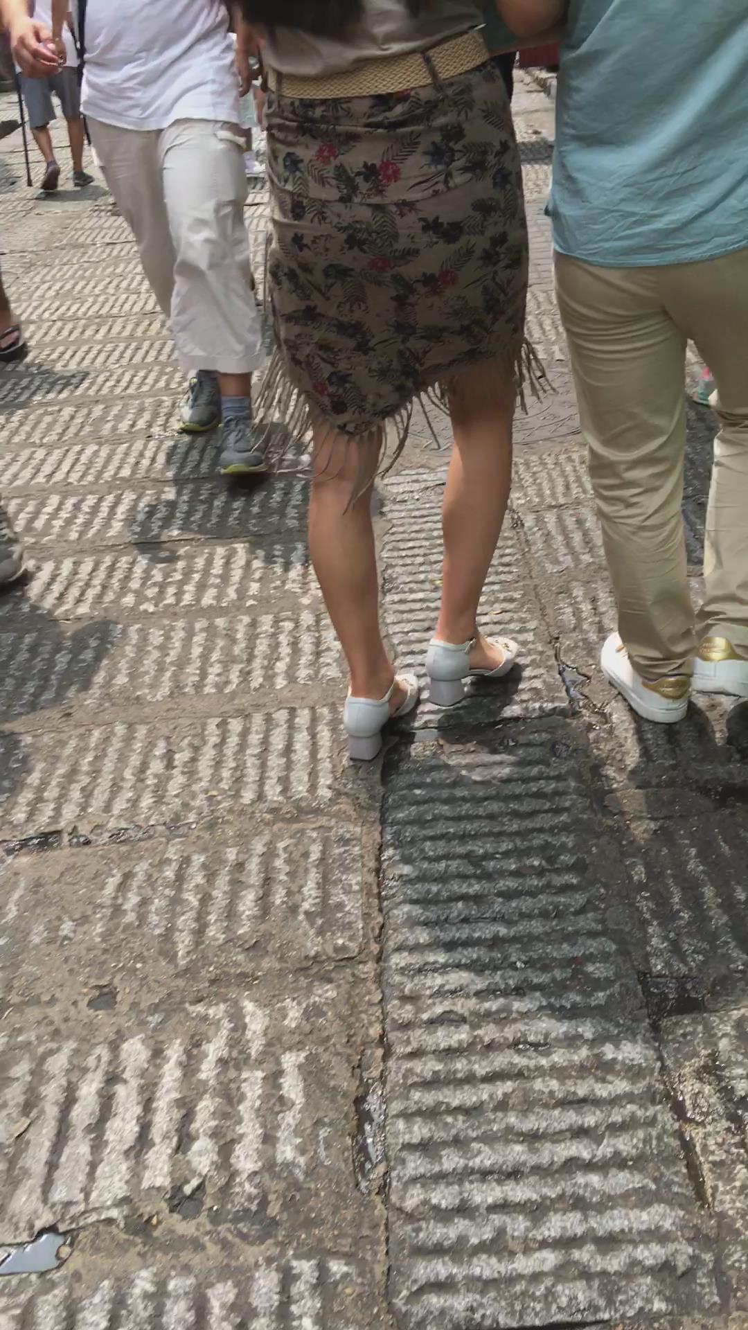 街拍花色包臀裙极品性感美女 编号2215