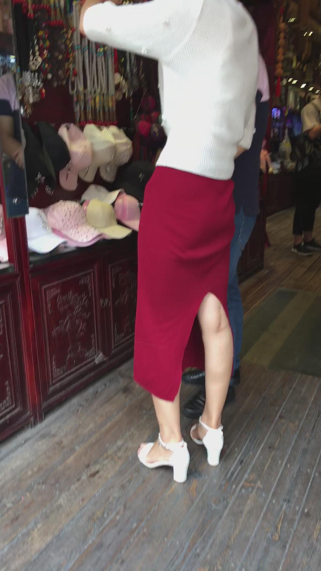 极品气质大红色开叉包臀裙性感姐姐 编号2218