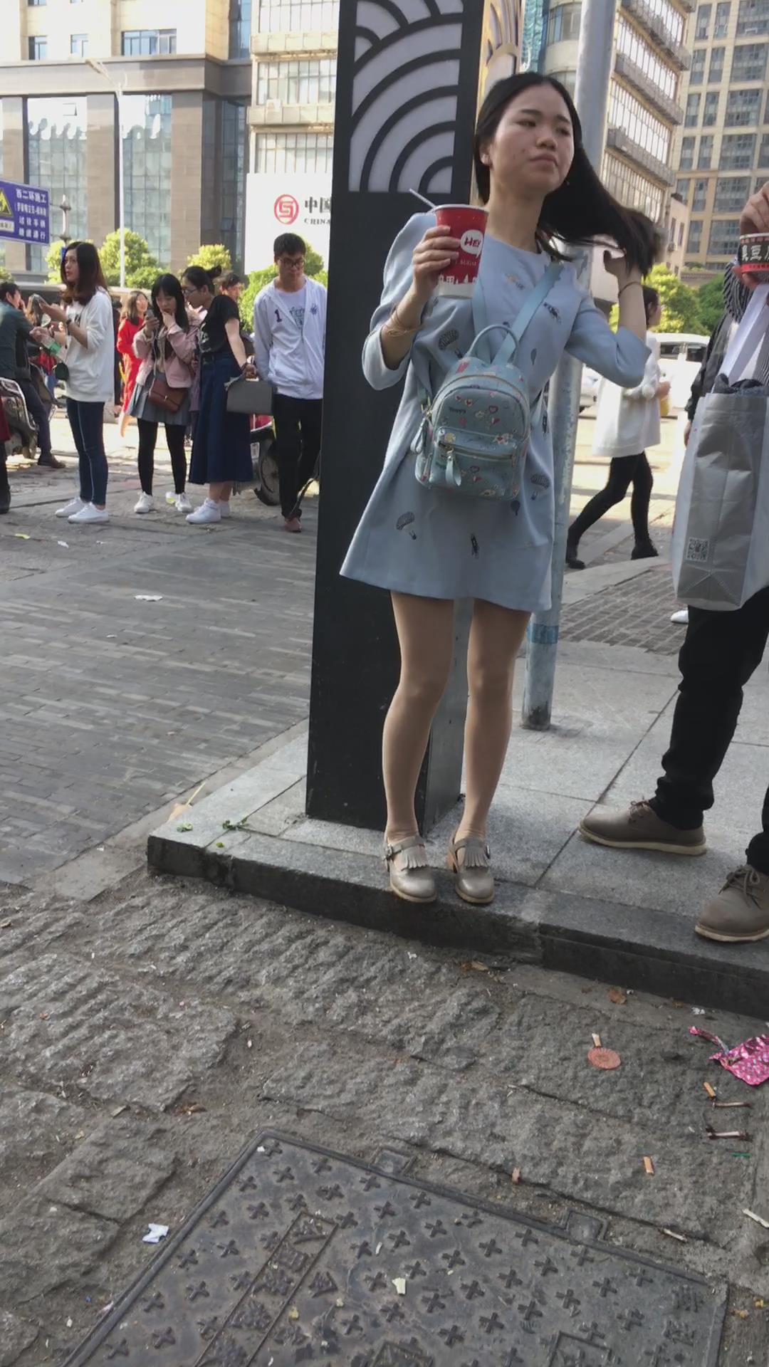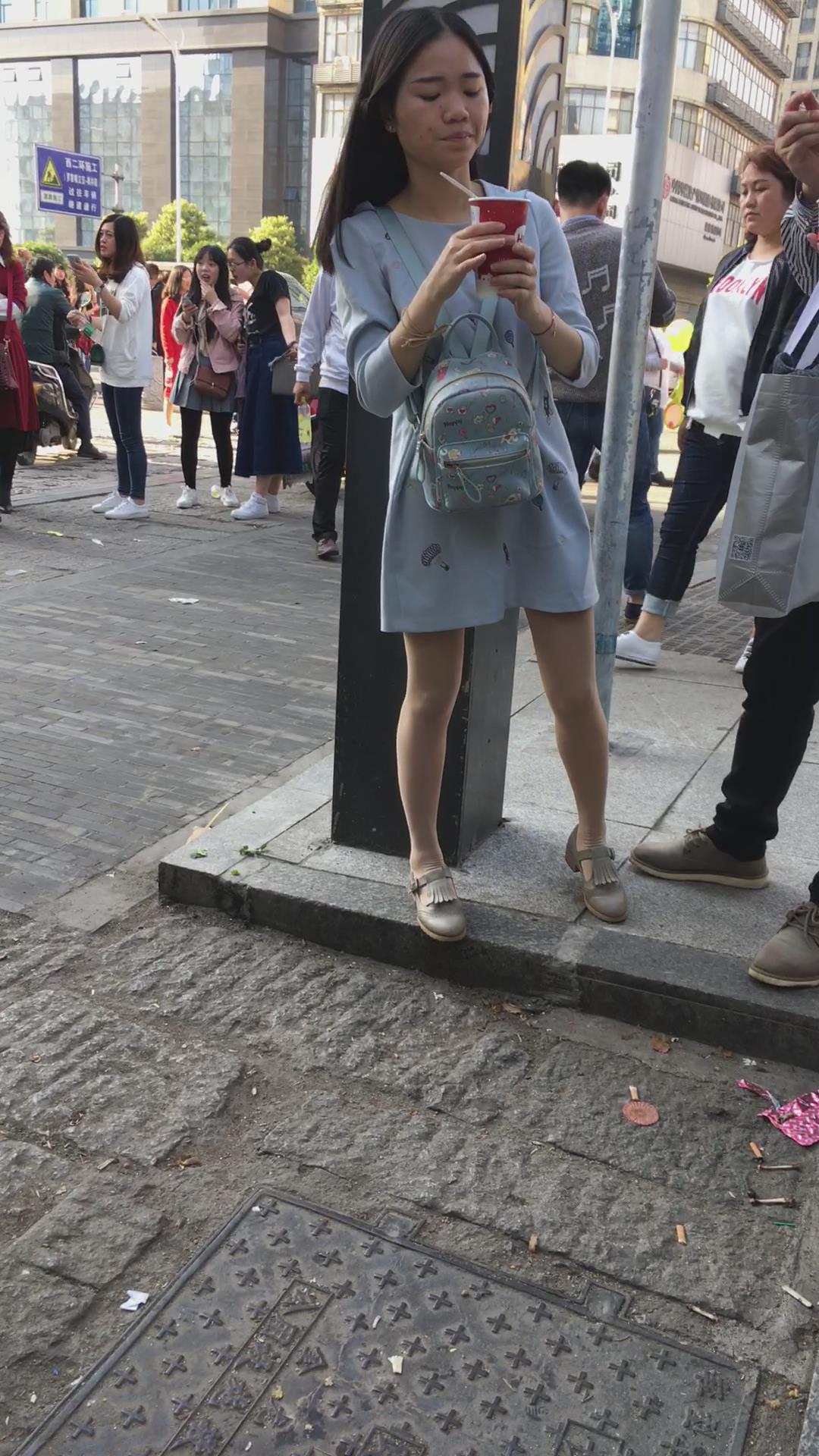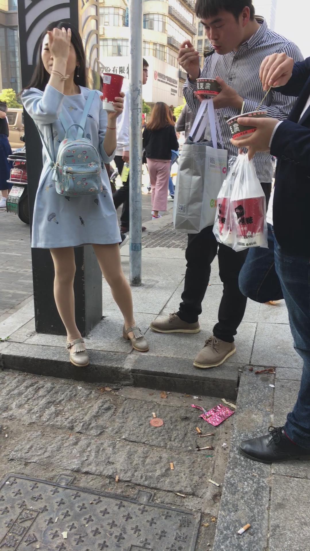 街拍美腿连衣裙清纯气质小姐姐路边吃雪糕 编号2220