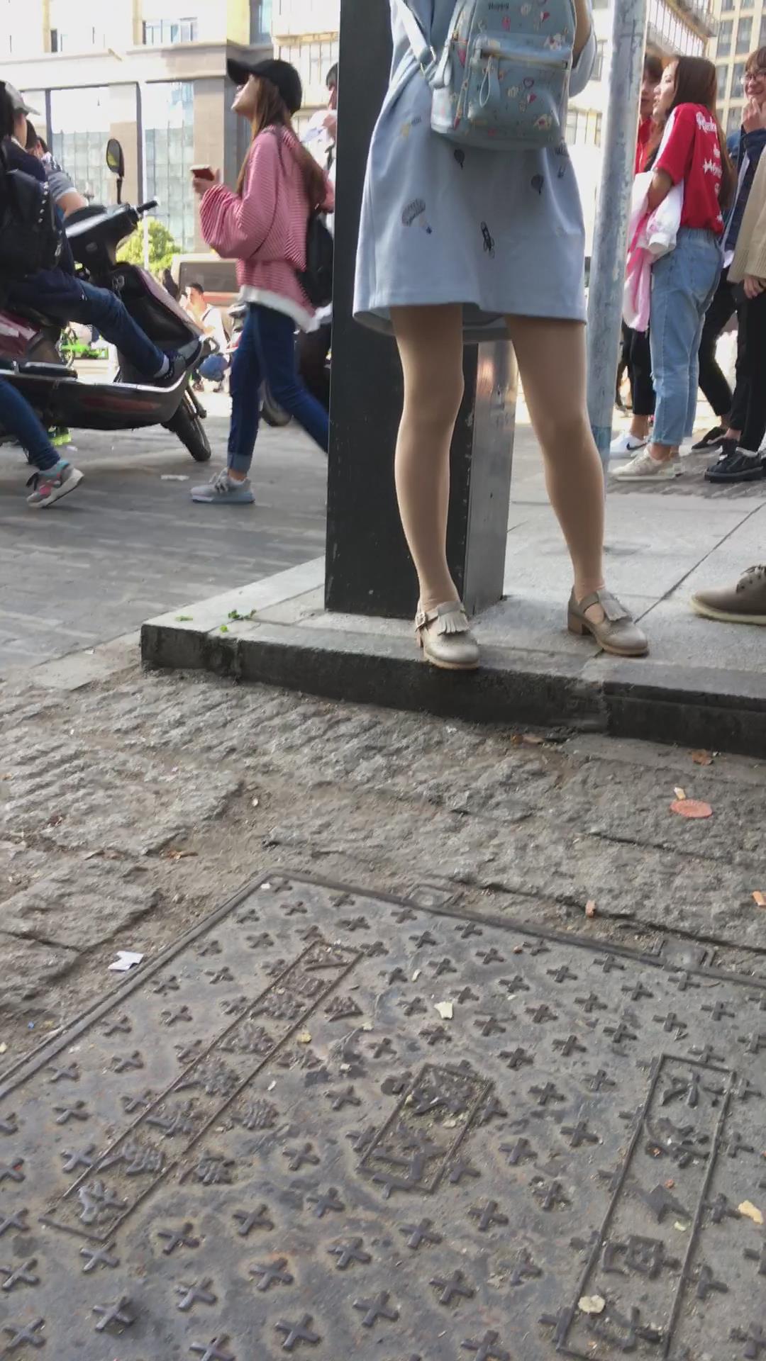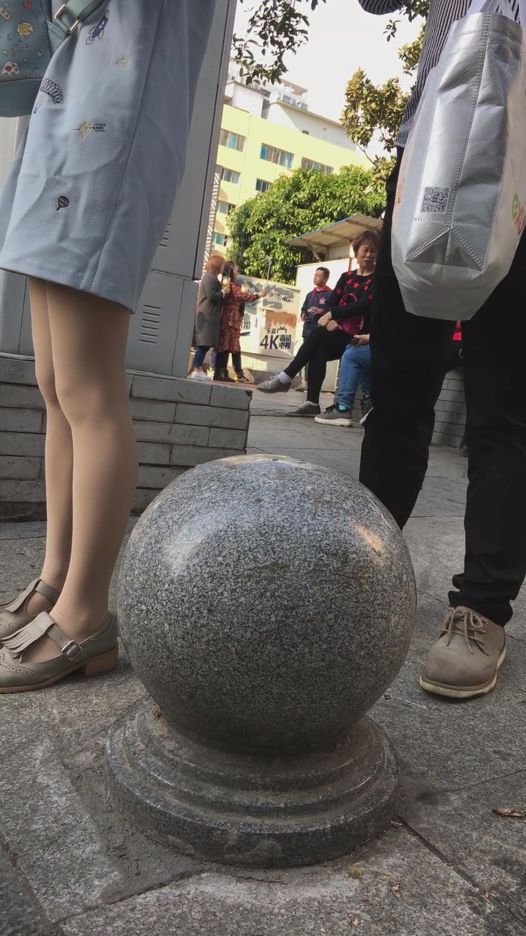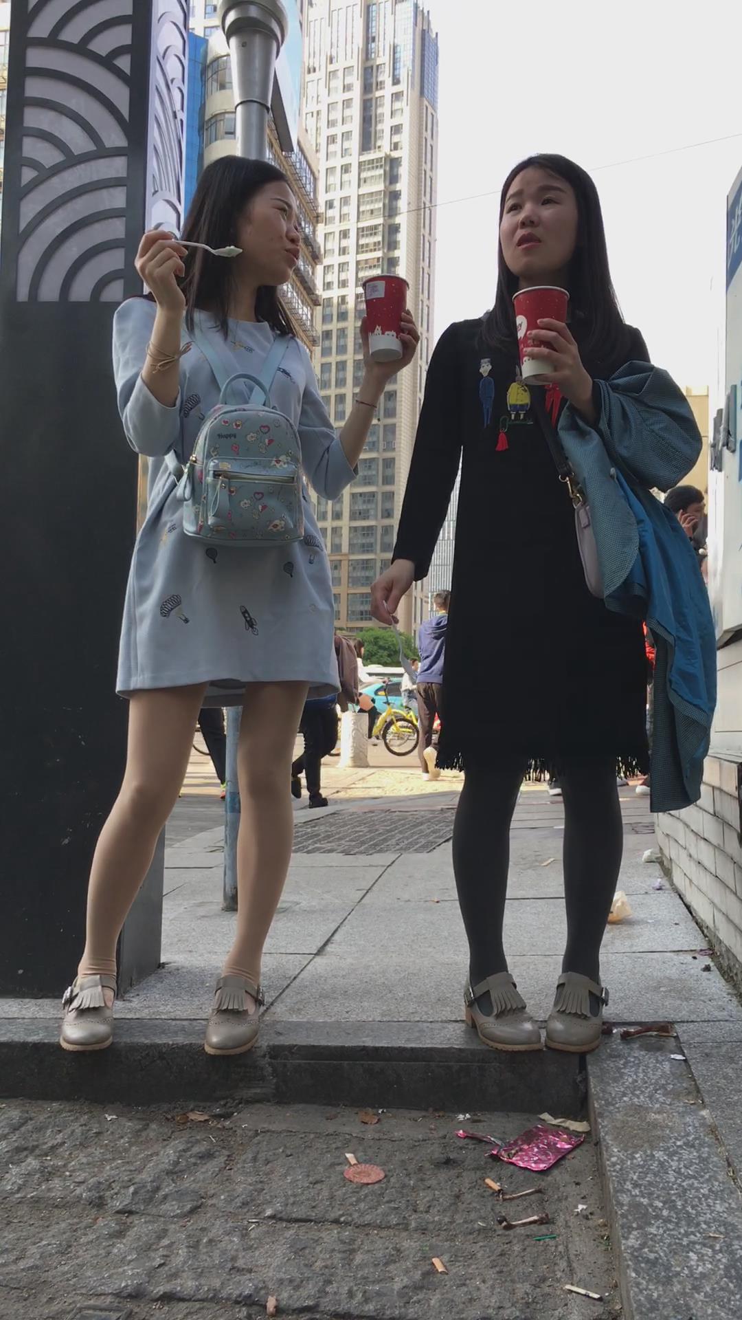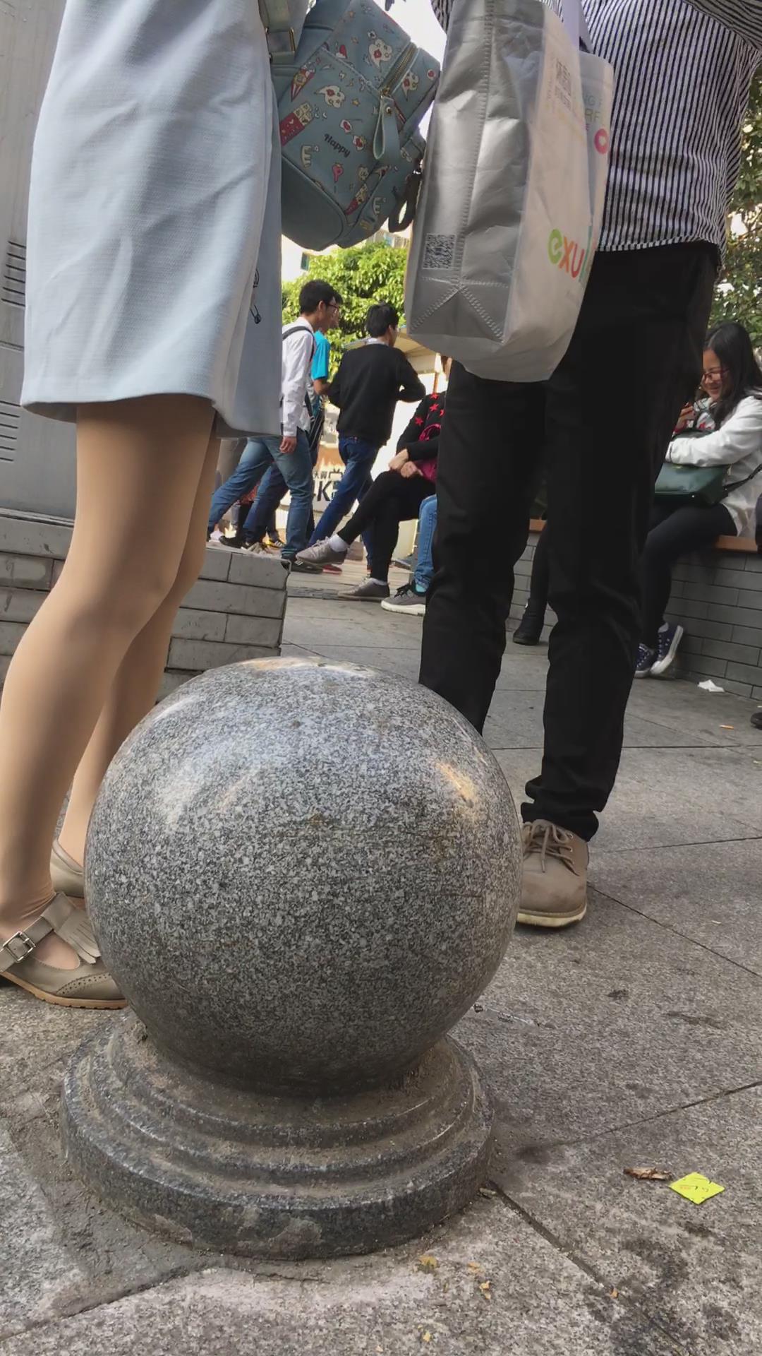 街拍美腿连衣裙清纯气质小姐姐路边吃雪糕 编号2220