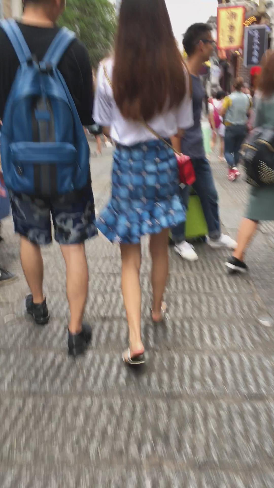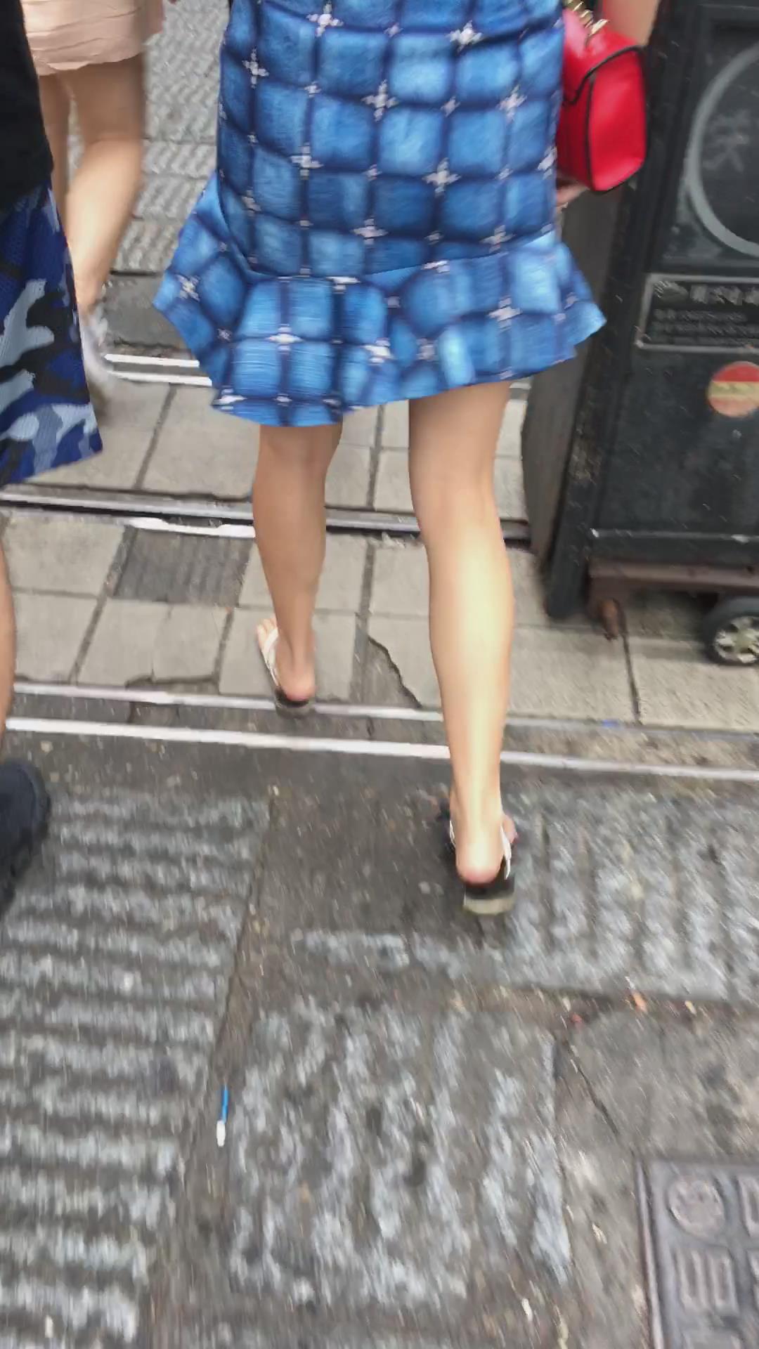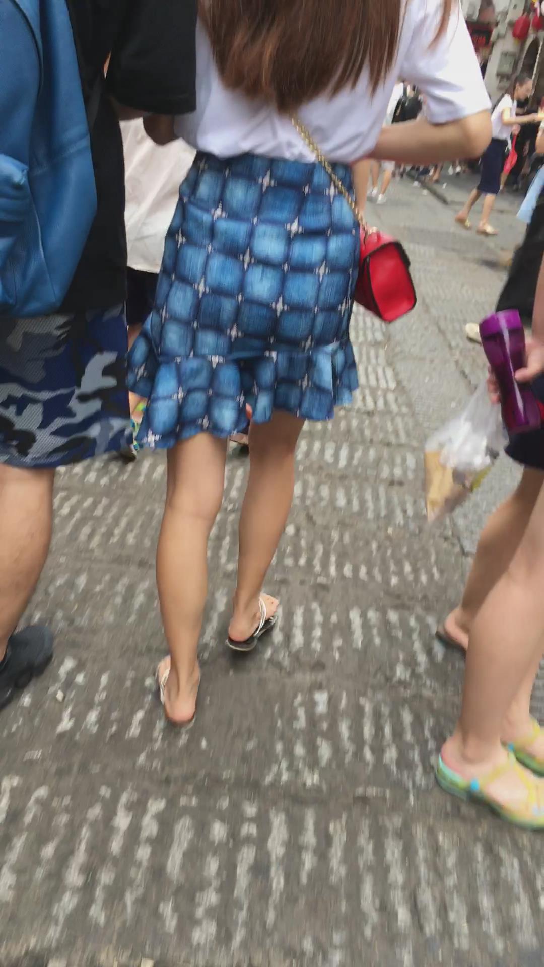 街拍人字拖娇小身材的蓝裙小姐姐 编号2239