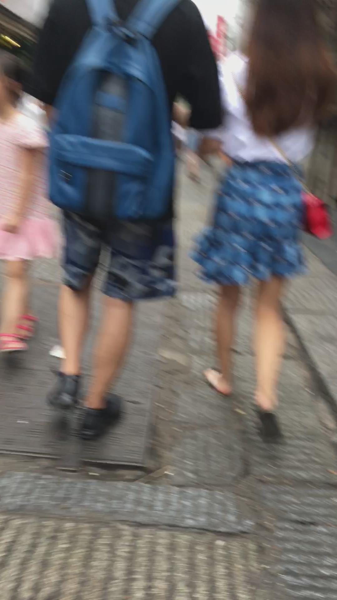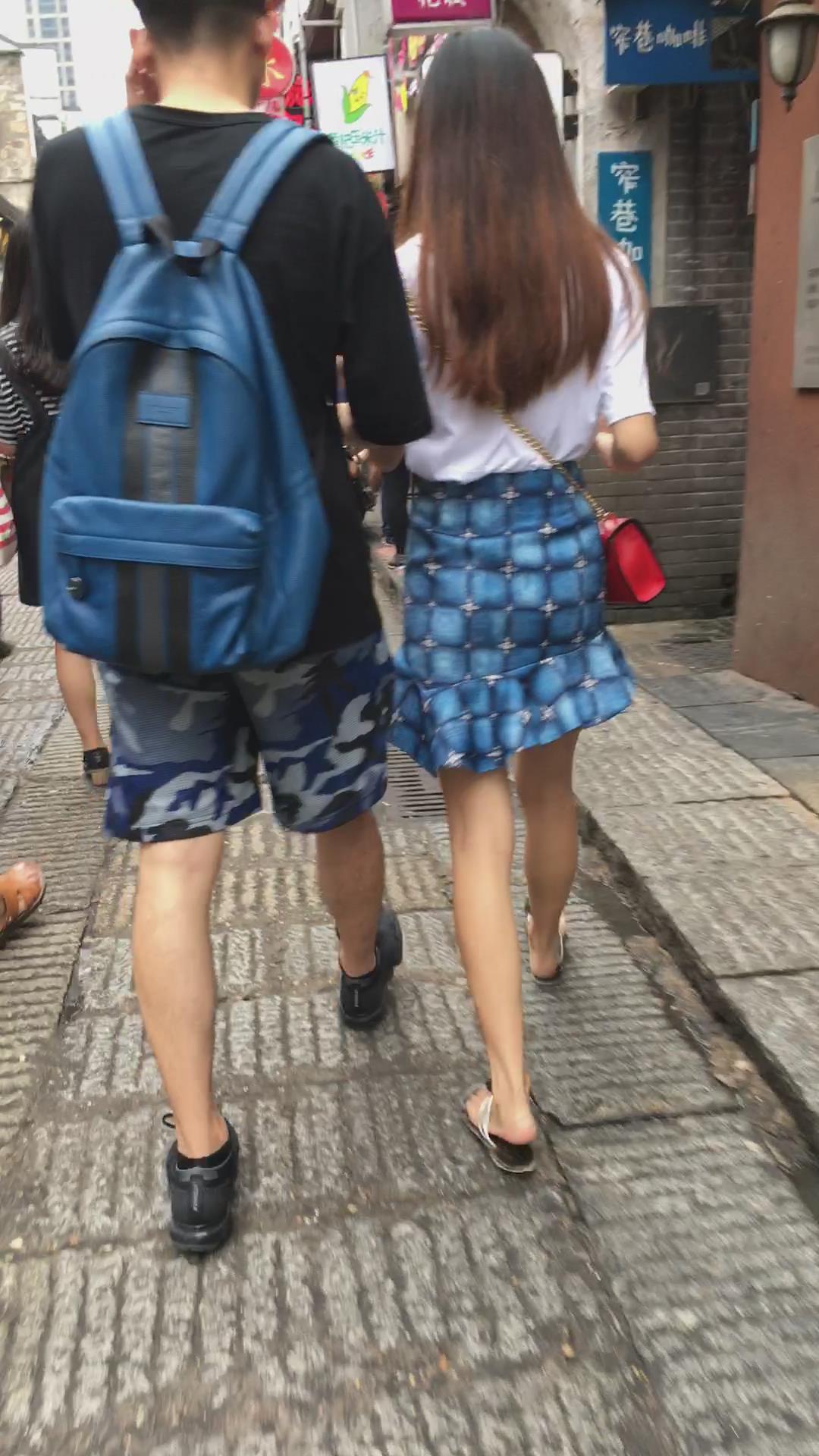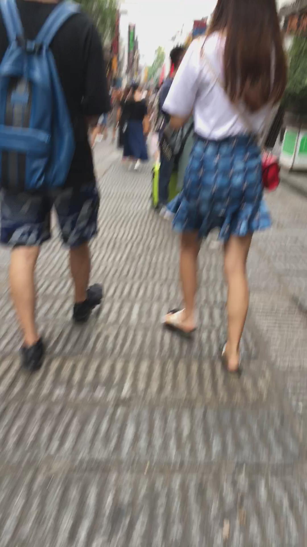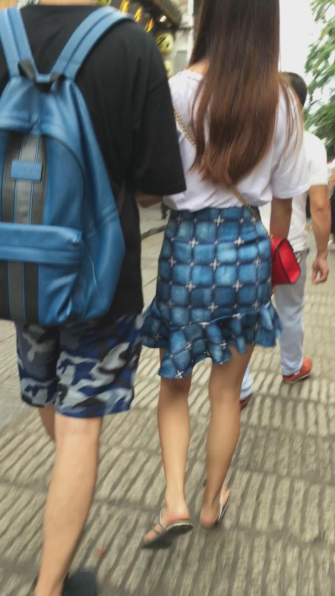 街拍人字拖娇小身材的蓝裙小姐姐 编号2239
