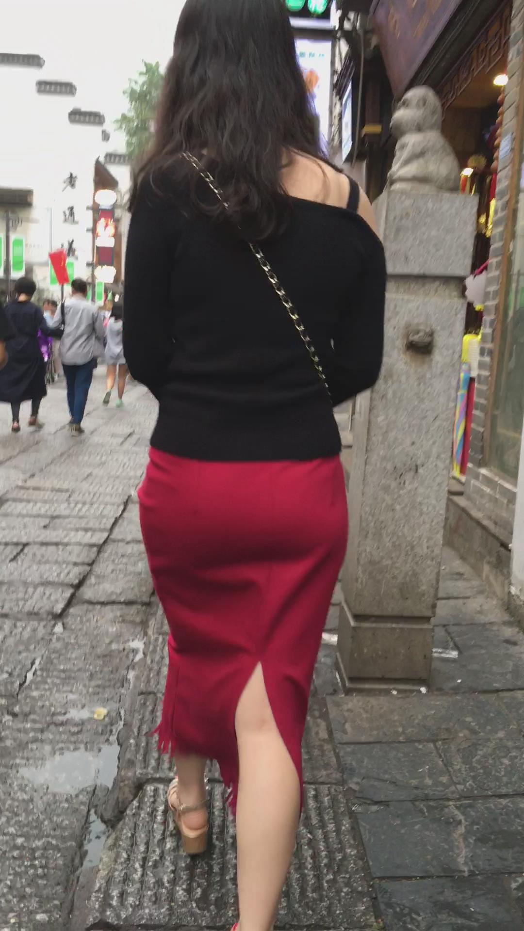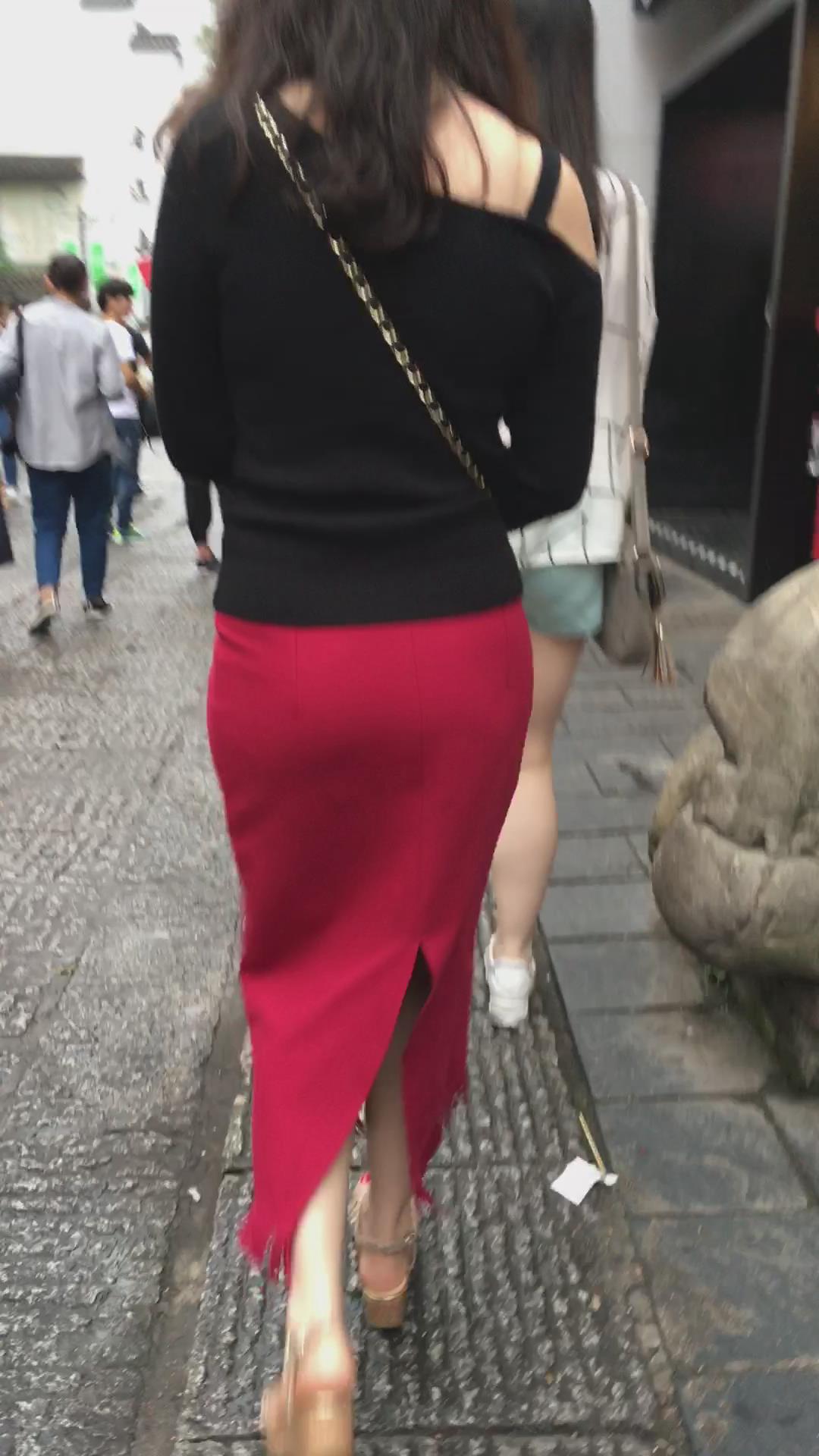 跟拍极品红色包臀裙性感美臀大美女 编号2240