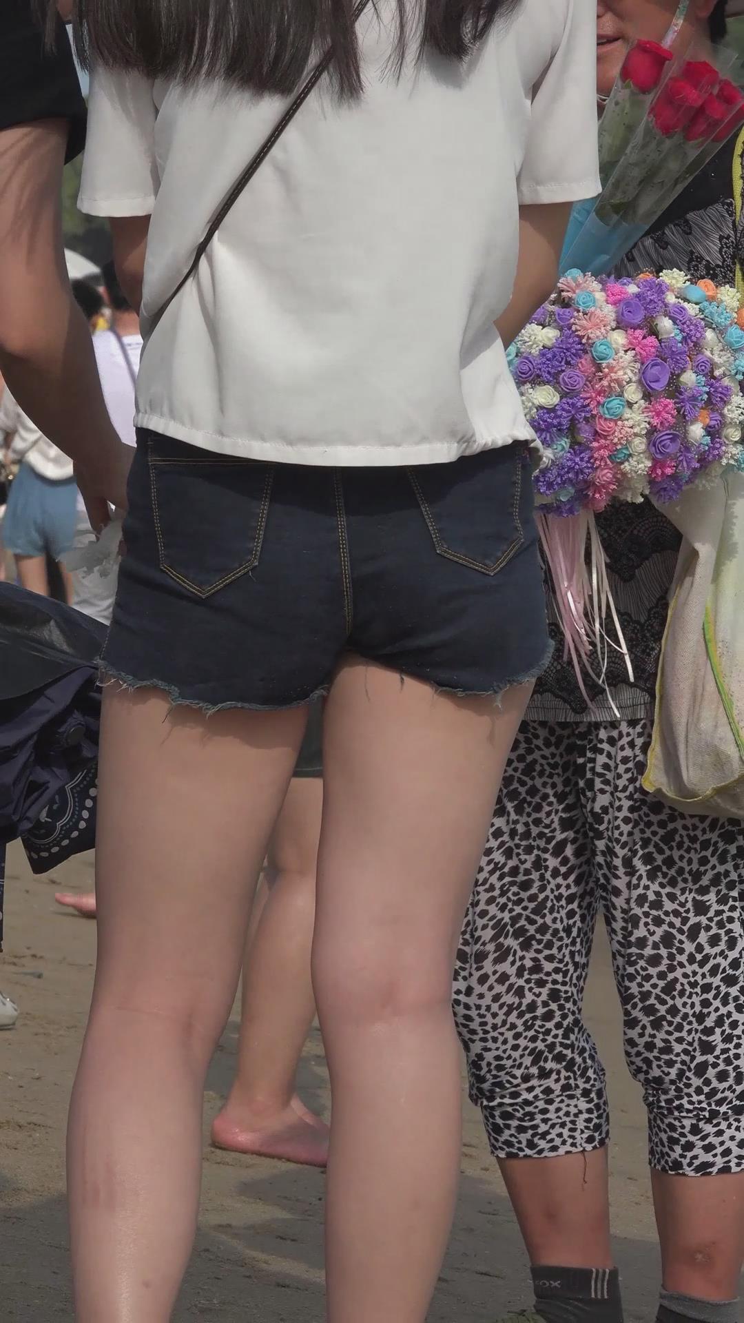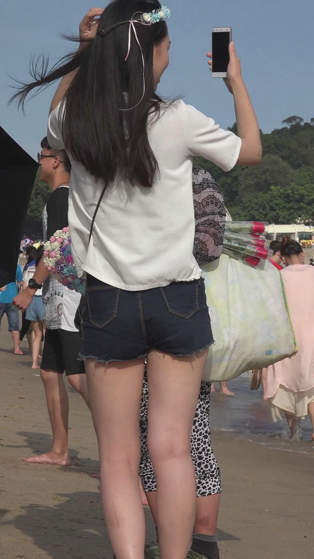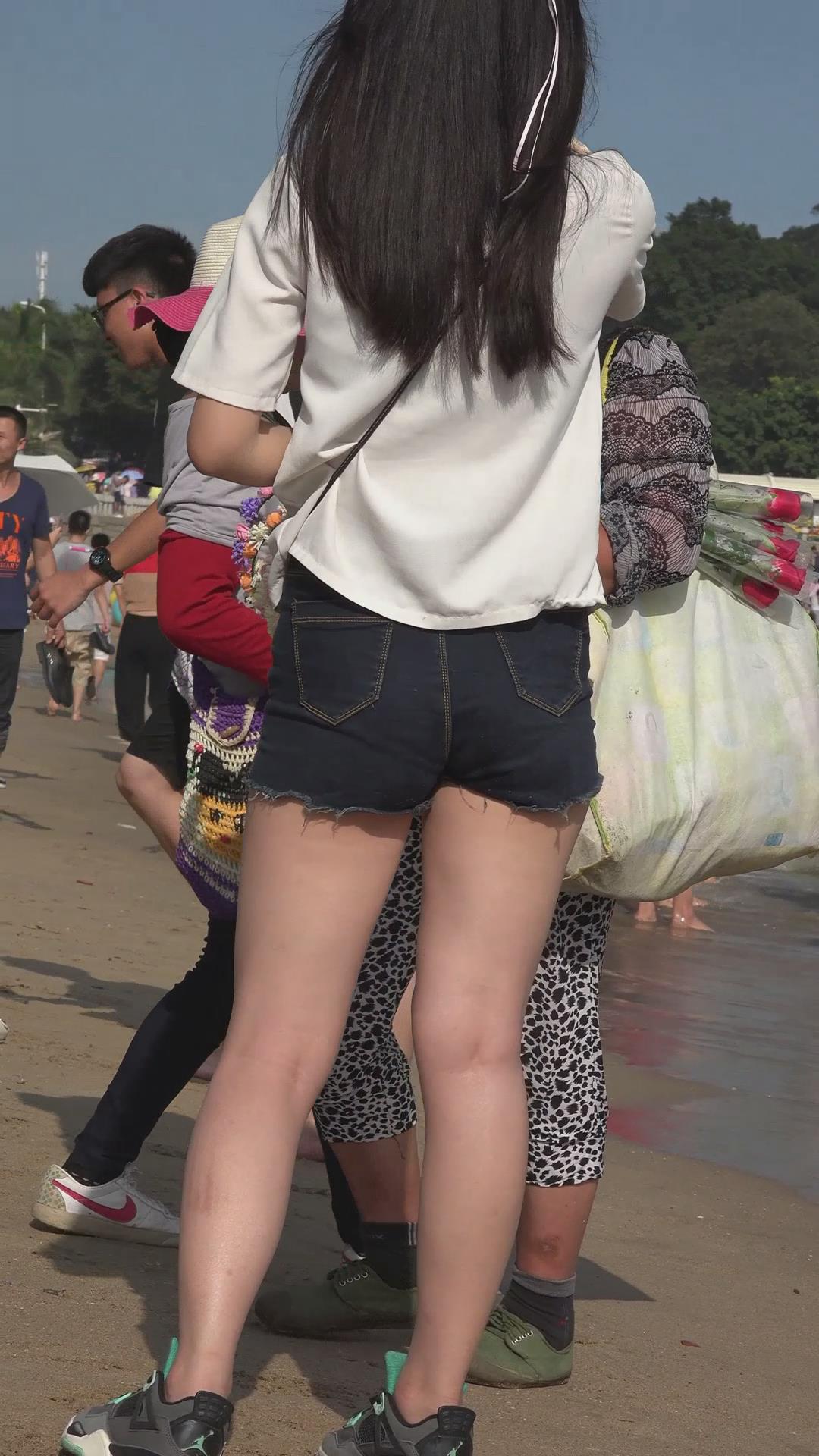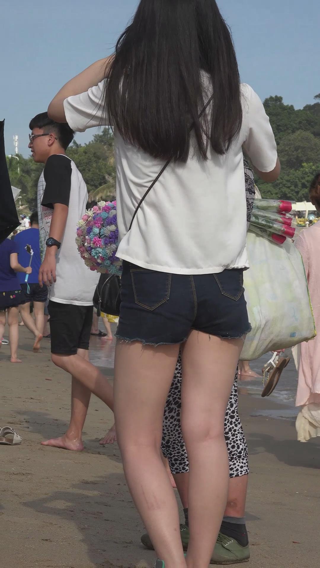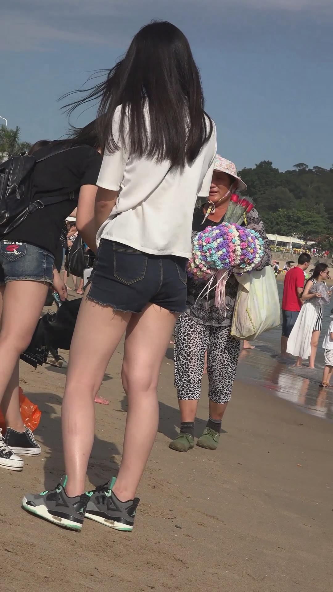 海边沙滩拍摄美腿热裤运动鞋妹子 编号4643