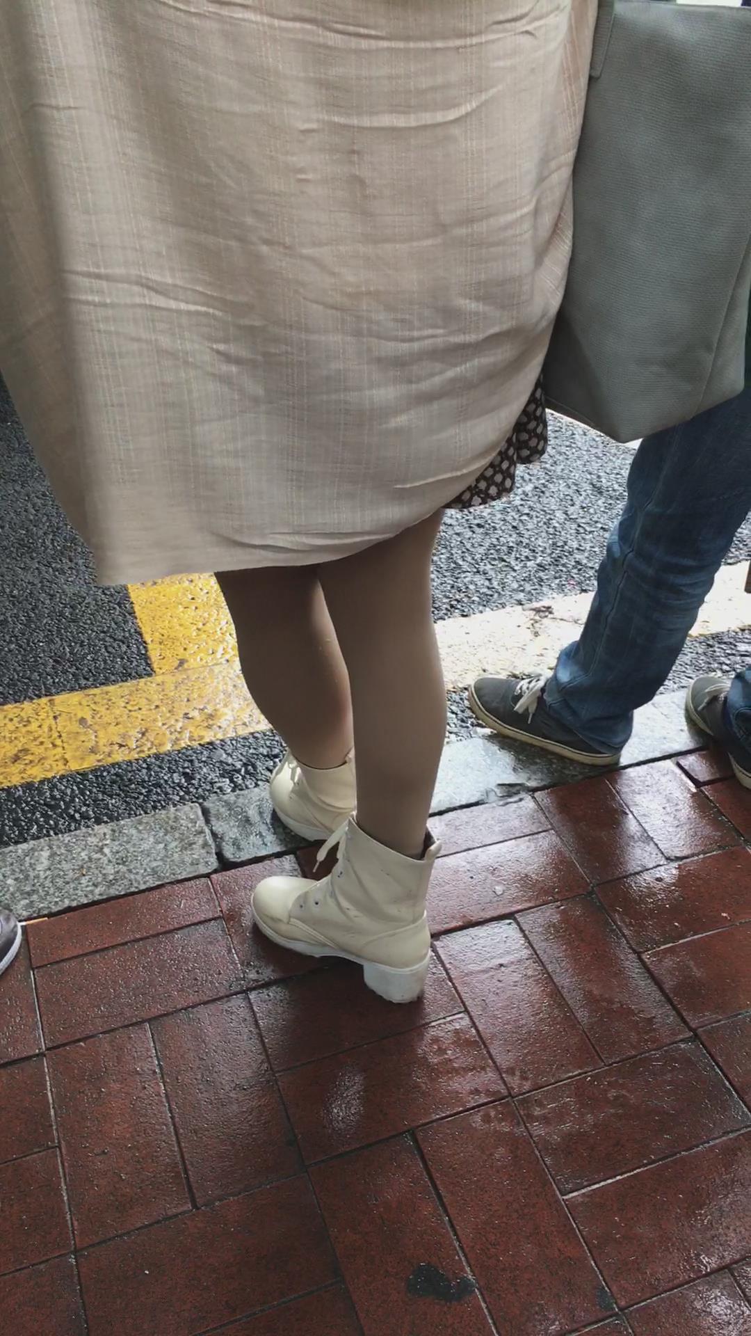 等车的气质肉丝袜连衣裙美颜美女 编号2284