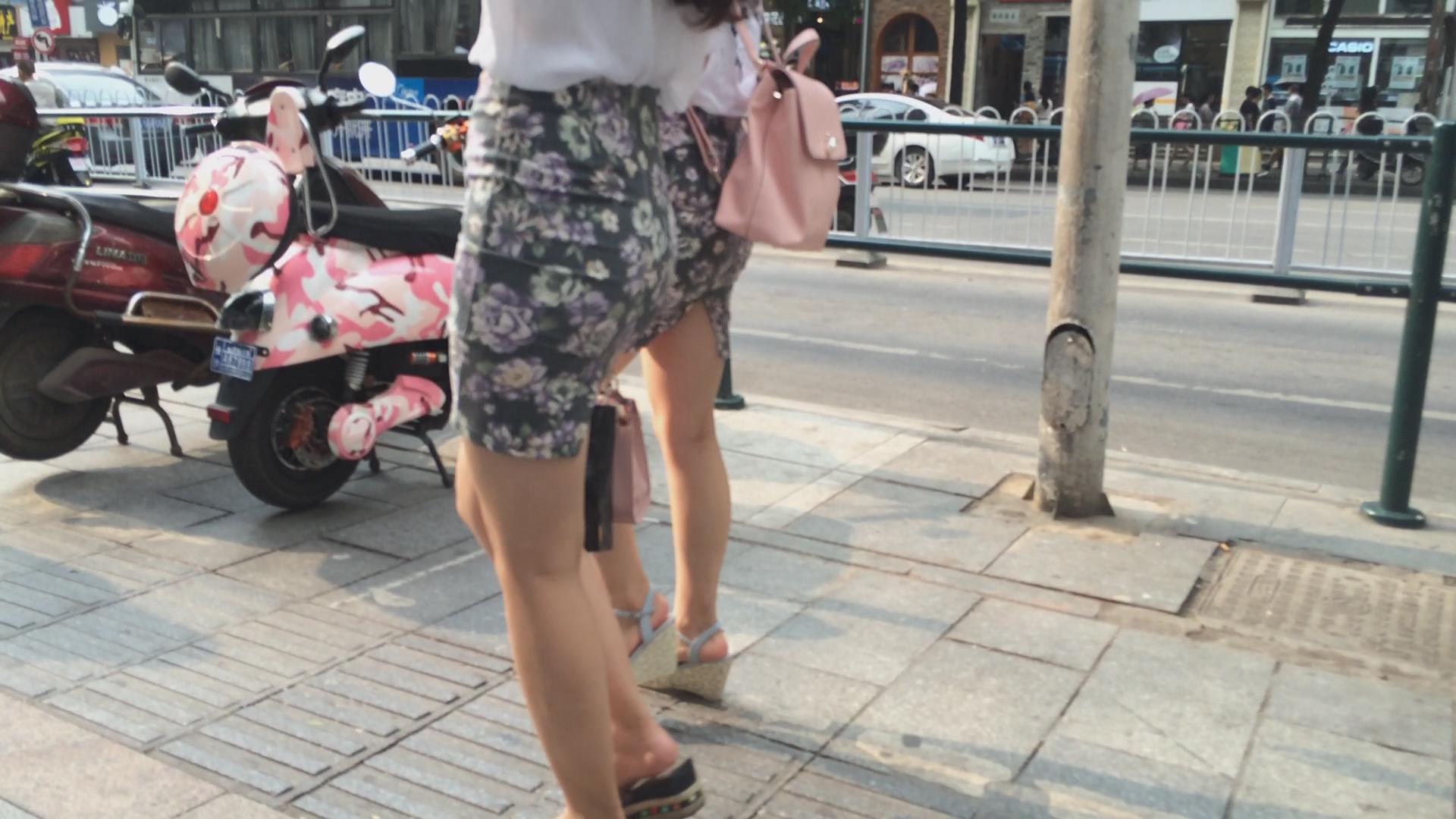 街拍碎花包臀裙颜值美女小姐姐 编号2324