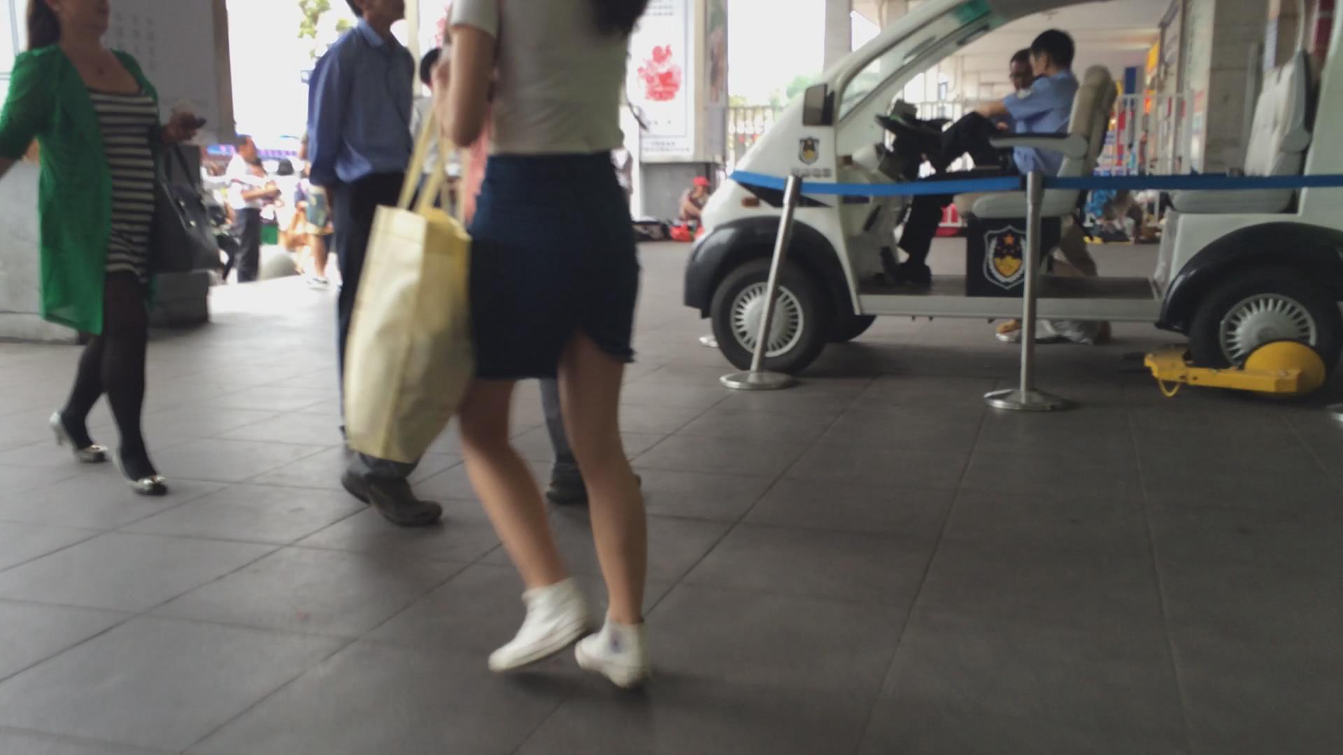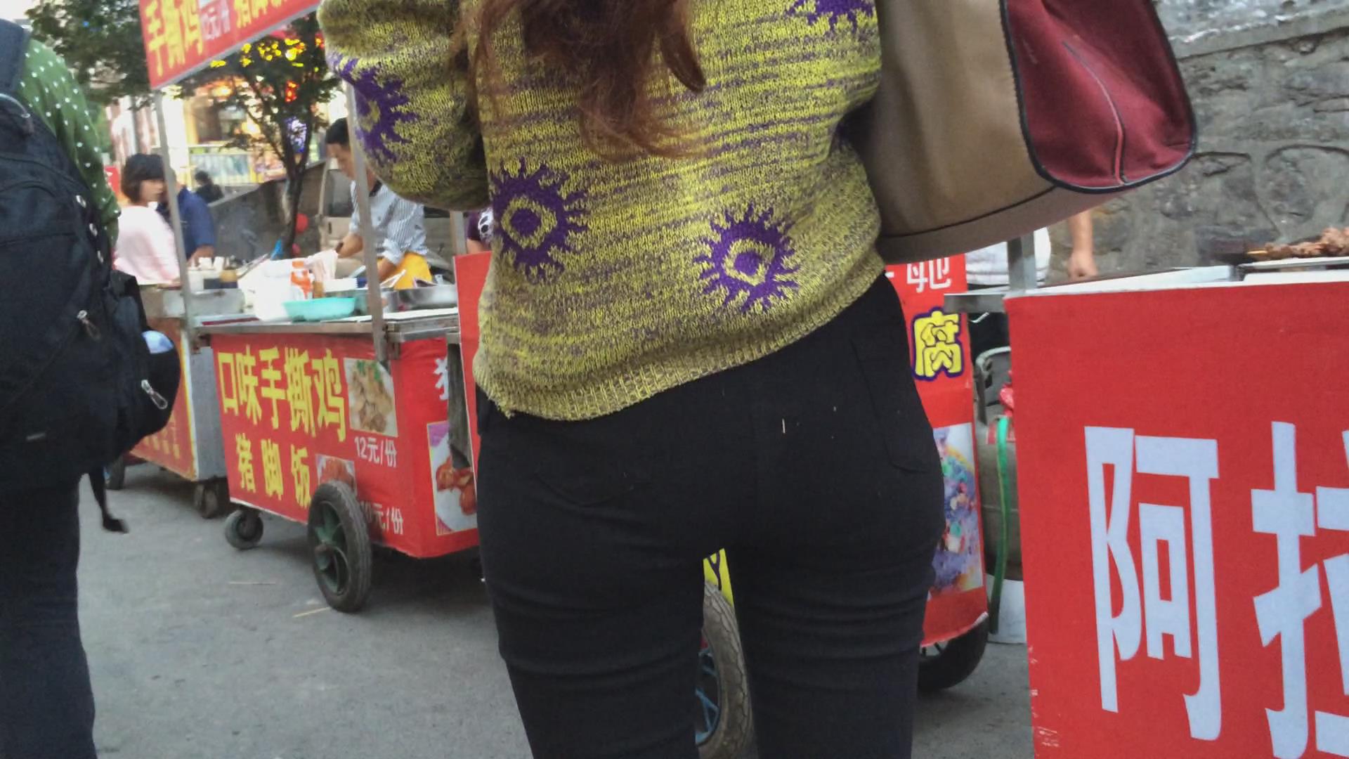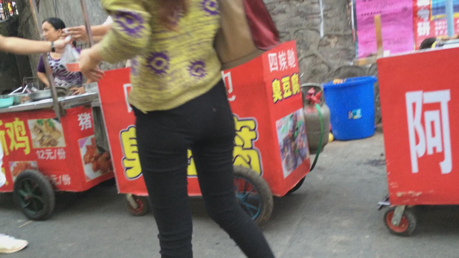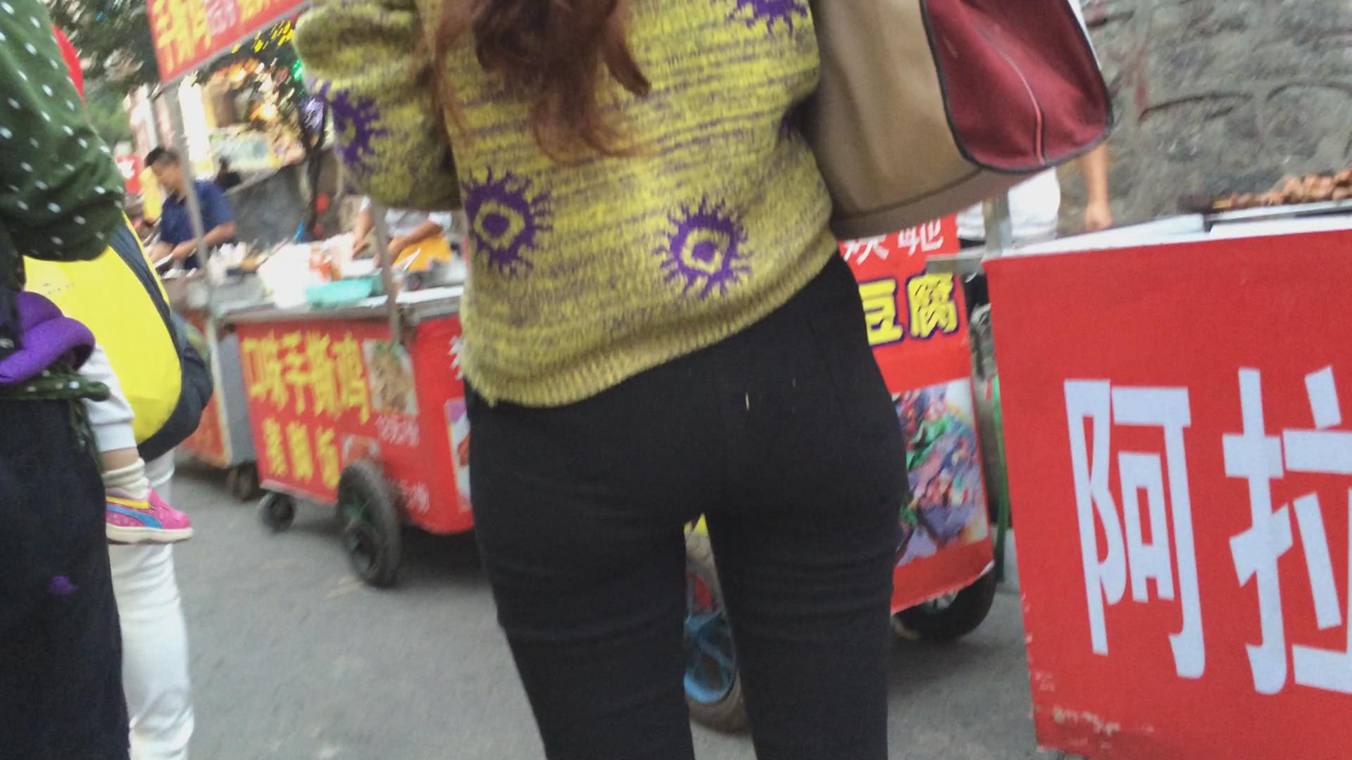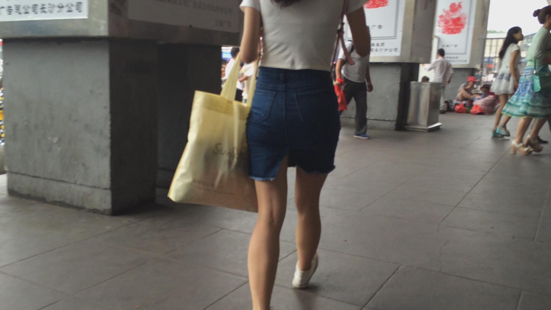 街拍丰满大咪咪牛仔包臀裙美女 编号2326
