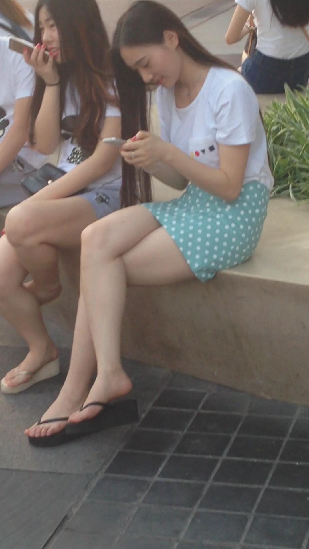 花坛边休息的白皙嫩腿姐妹花,腿玩年 编号2359