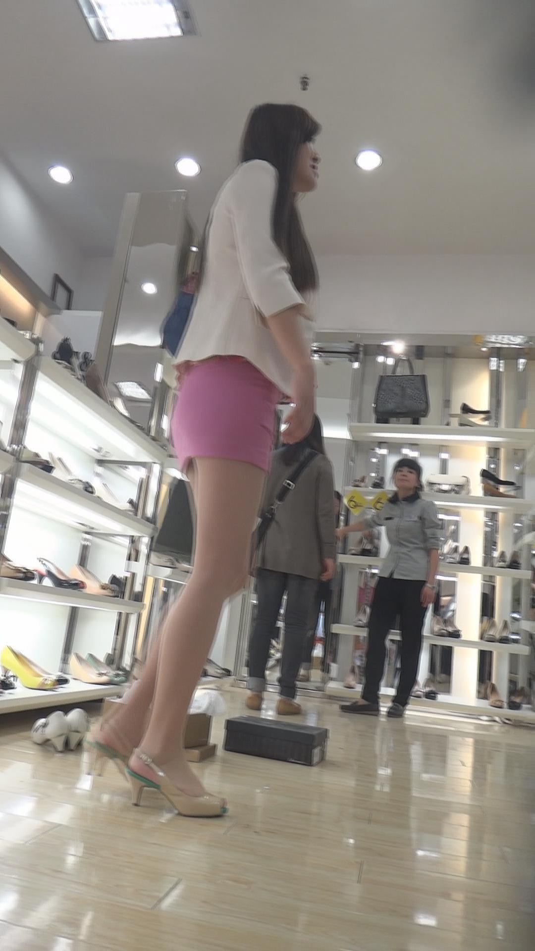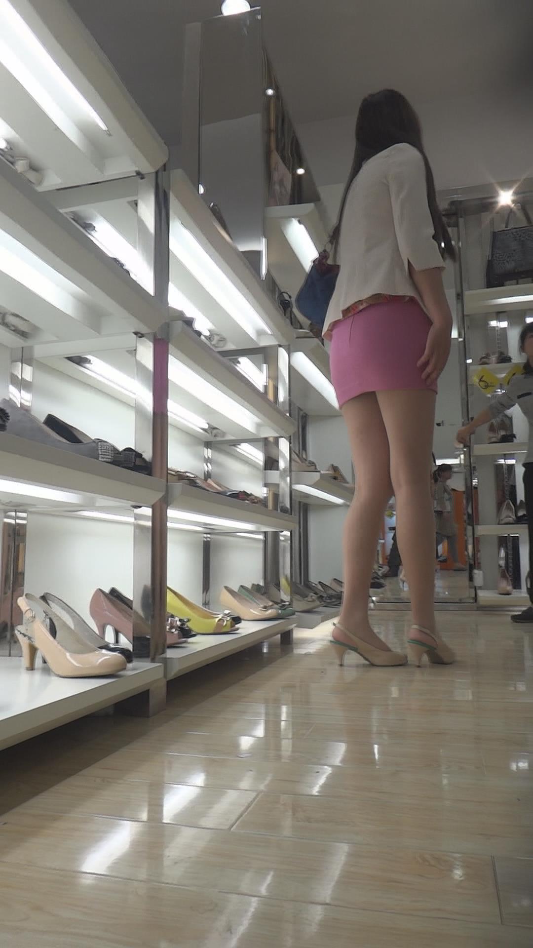鞋店试鞋的极品粉色包臀裙丝袜美女 编号2367