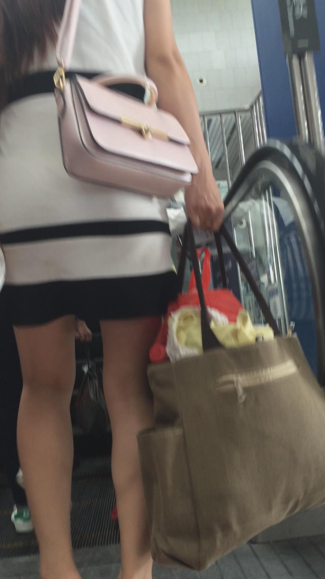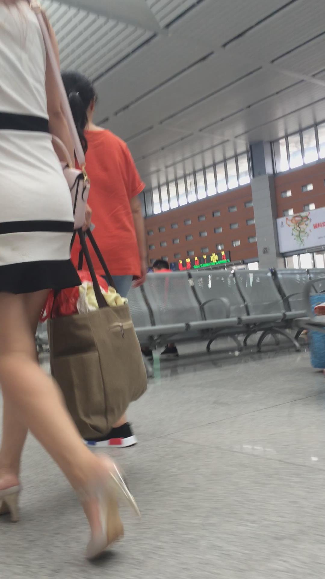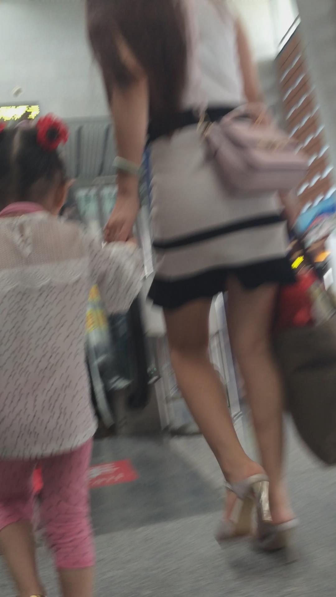 街拍匆忙带女儿赶车的翘臀高跟美腿连衣裙少妇 编号2379