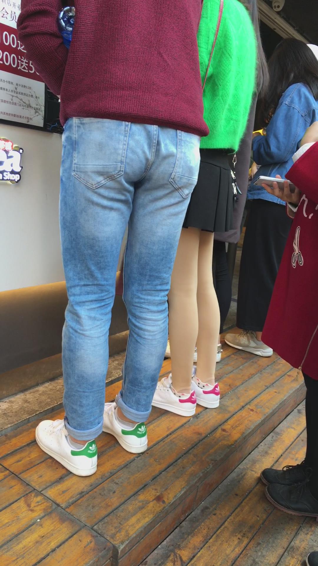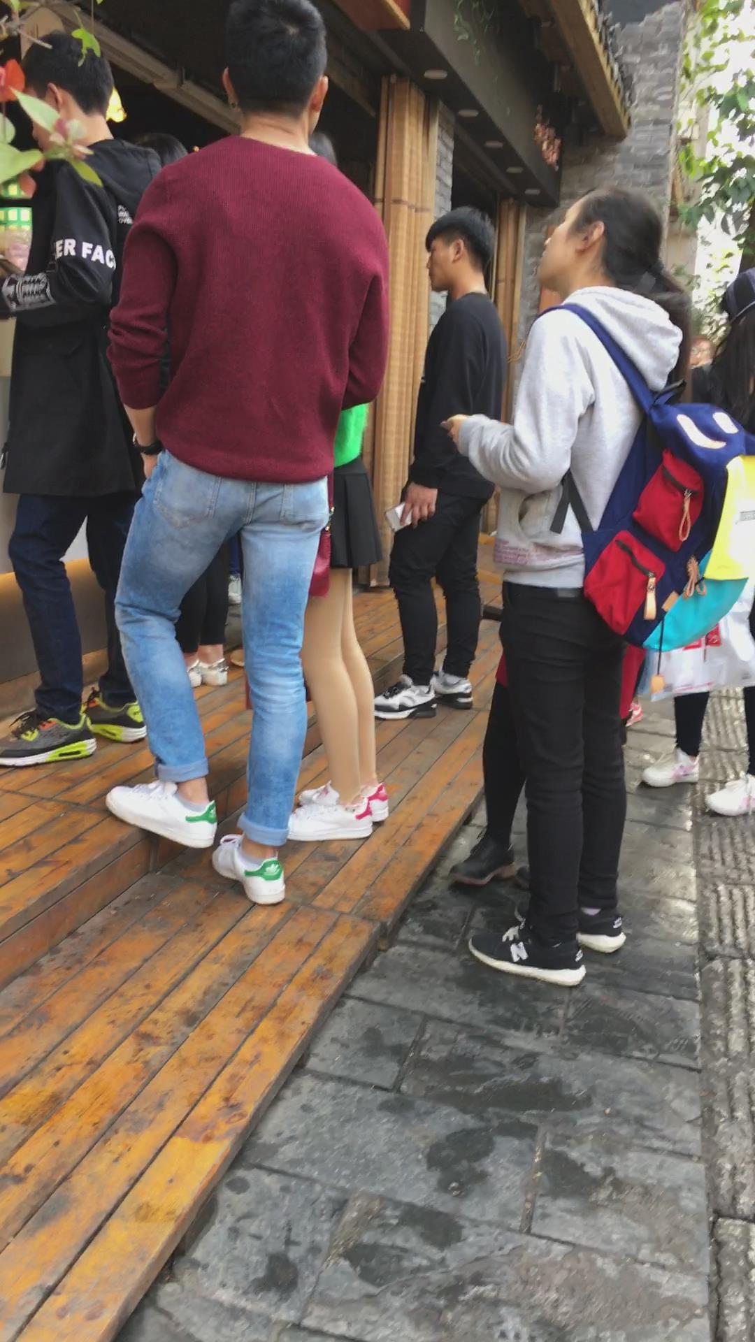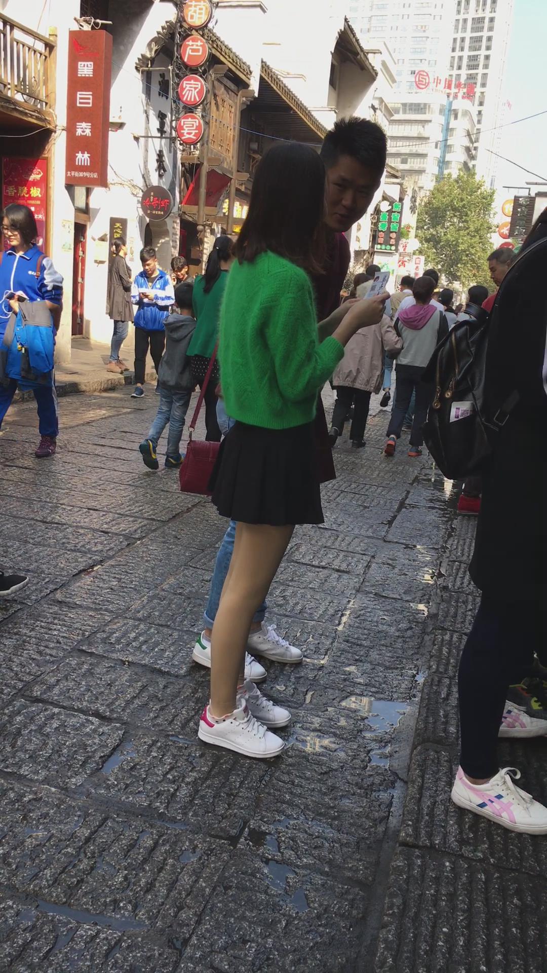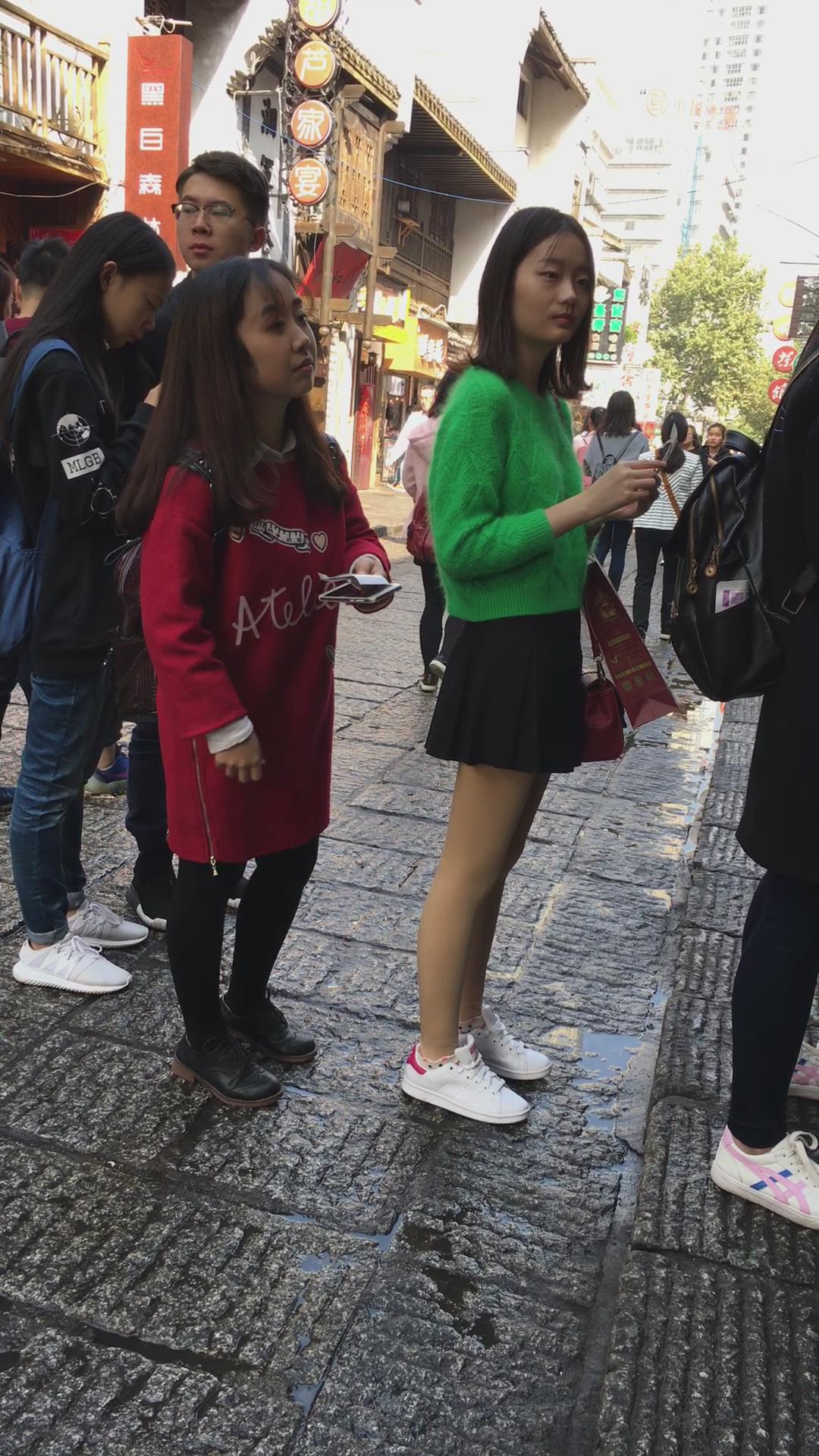 排队的绿色毛衣肉丝袜短裙青春小美女 编号2382