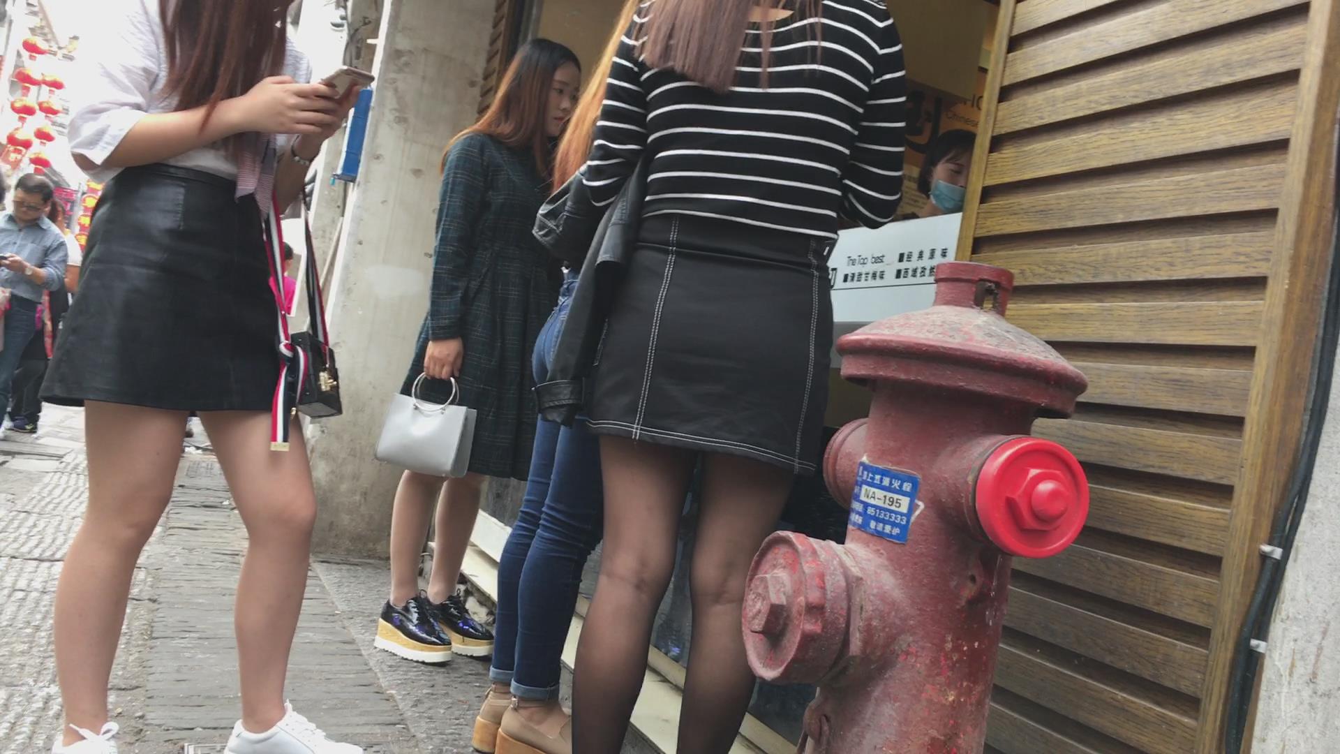 超薄黑丝袜短裙美女跟姐妹买饮料 编号2405