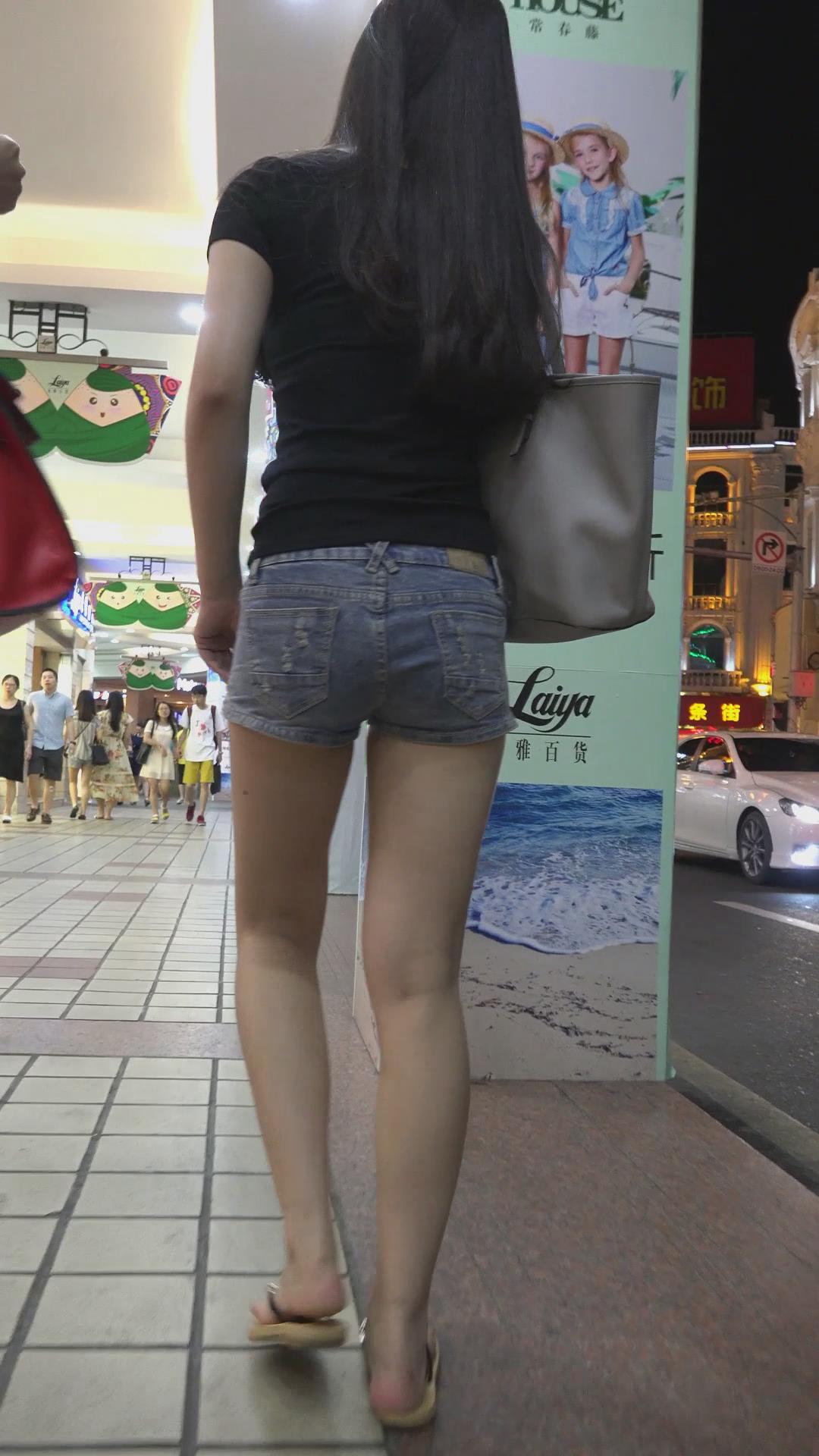 蓝色紧身牛仔短裤美臀美女 编号4659