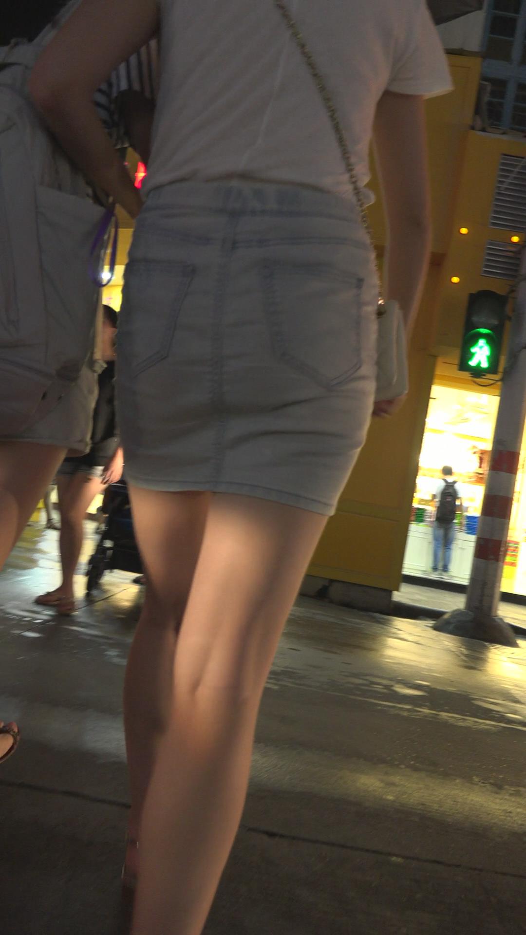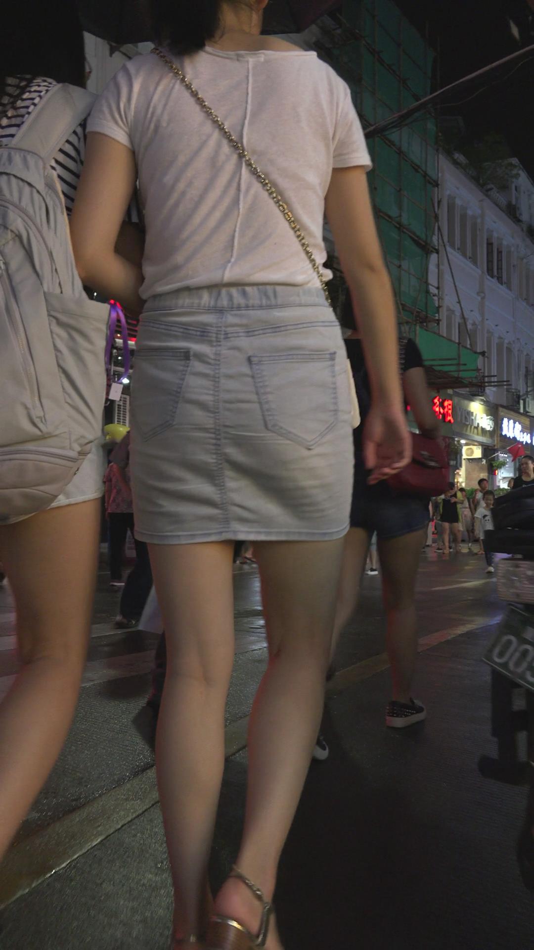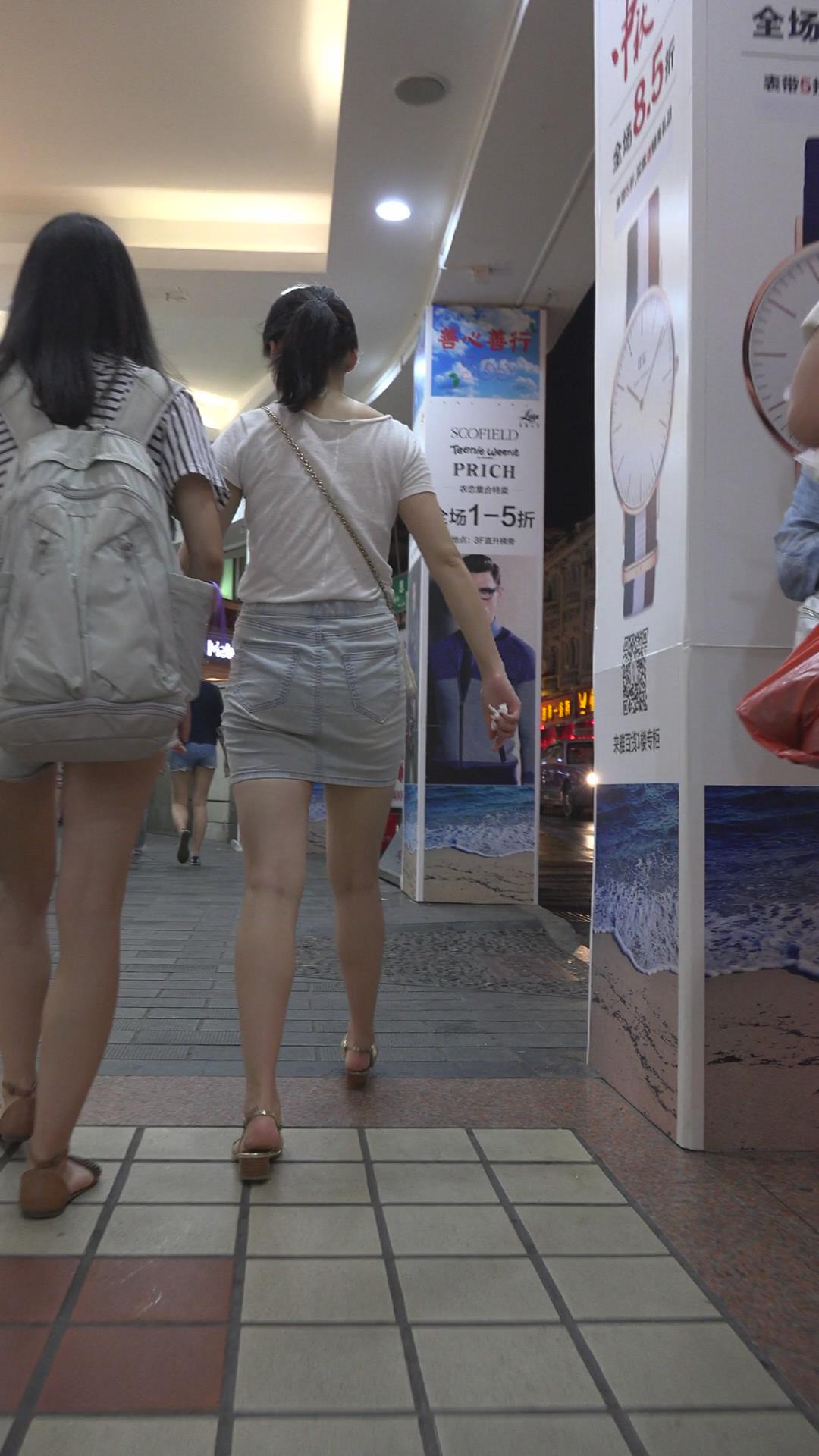 街拍牛仔短裙美腿姐妹花逛街 编号2428