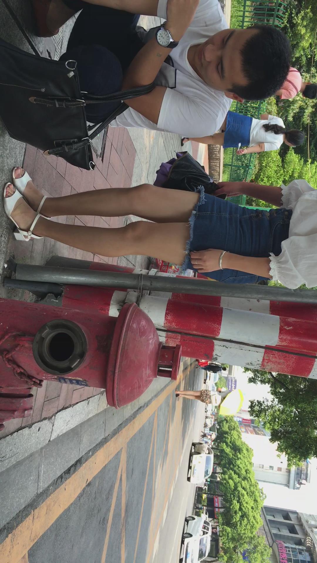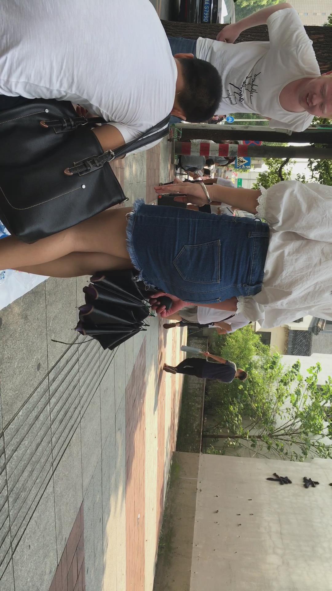 街拍美丽的紧身包臀牛仔裙女孩 编号2429