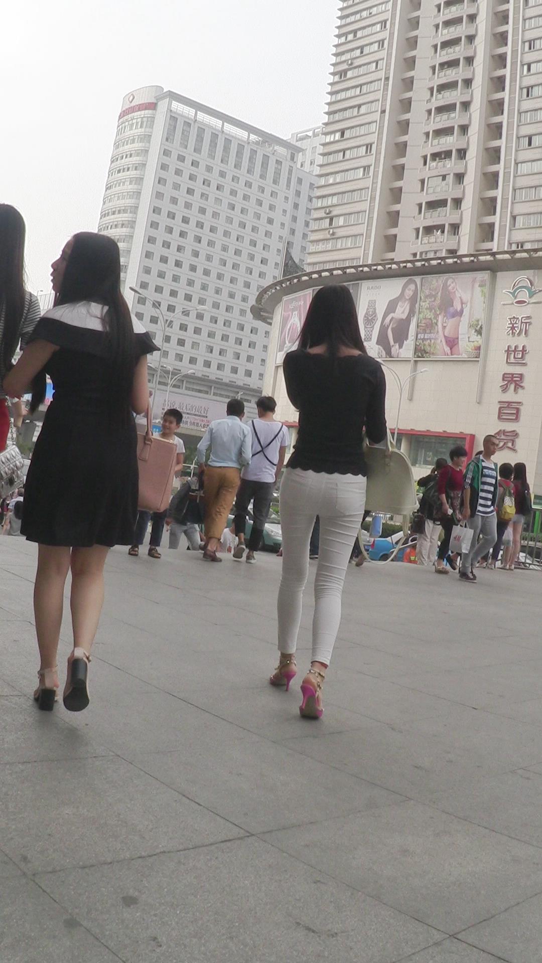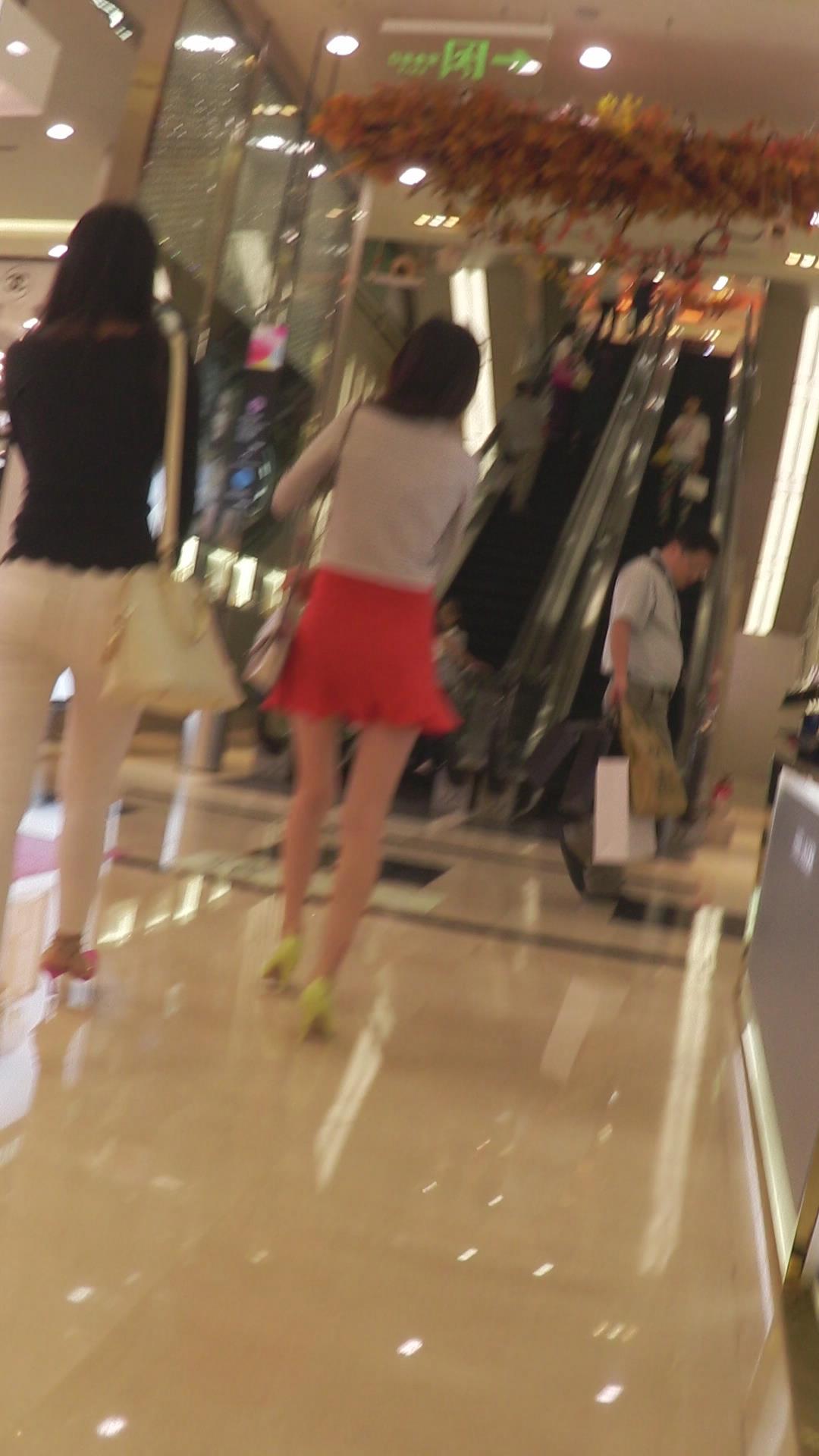 街拍红色小短裙高跟鞋性感美女 编号2446