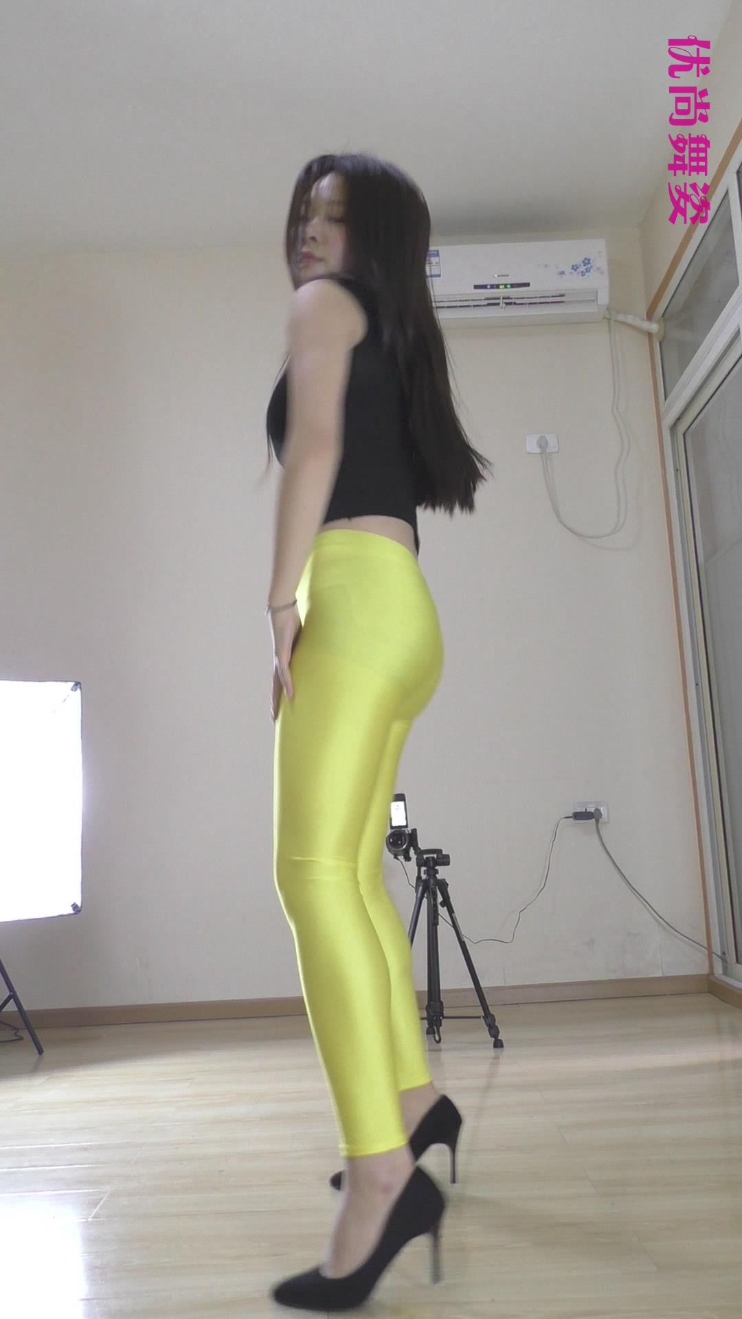 黄色紧身裤原版模拍 编号6640