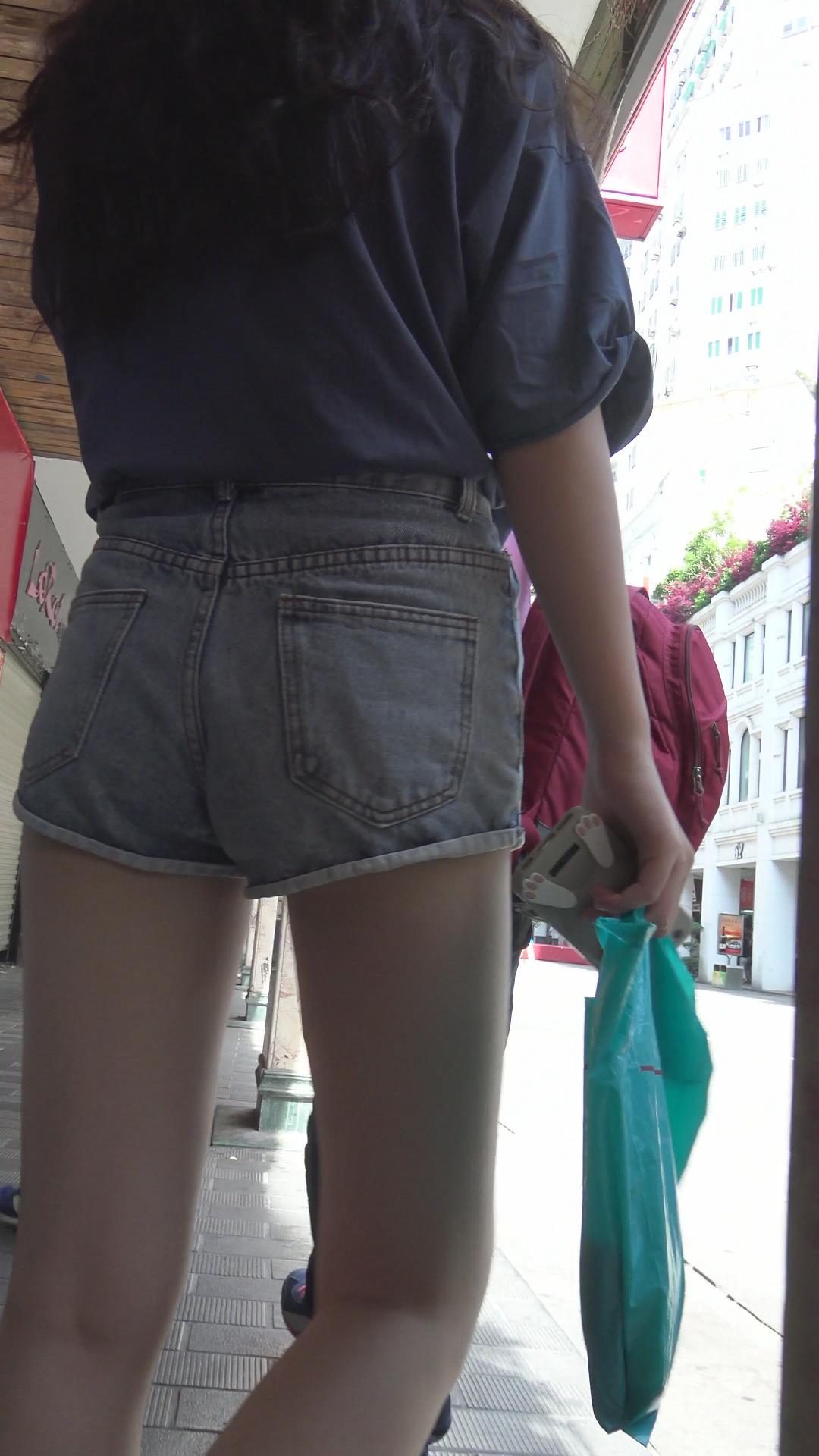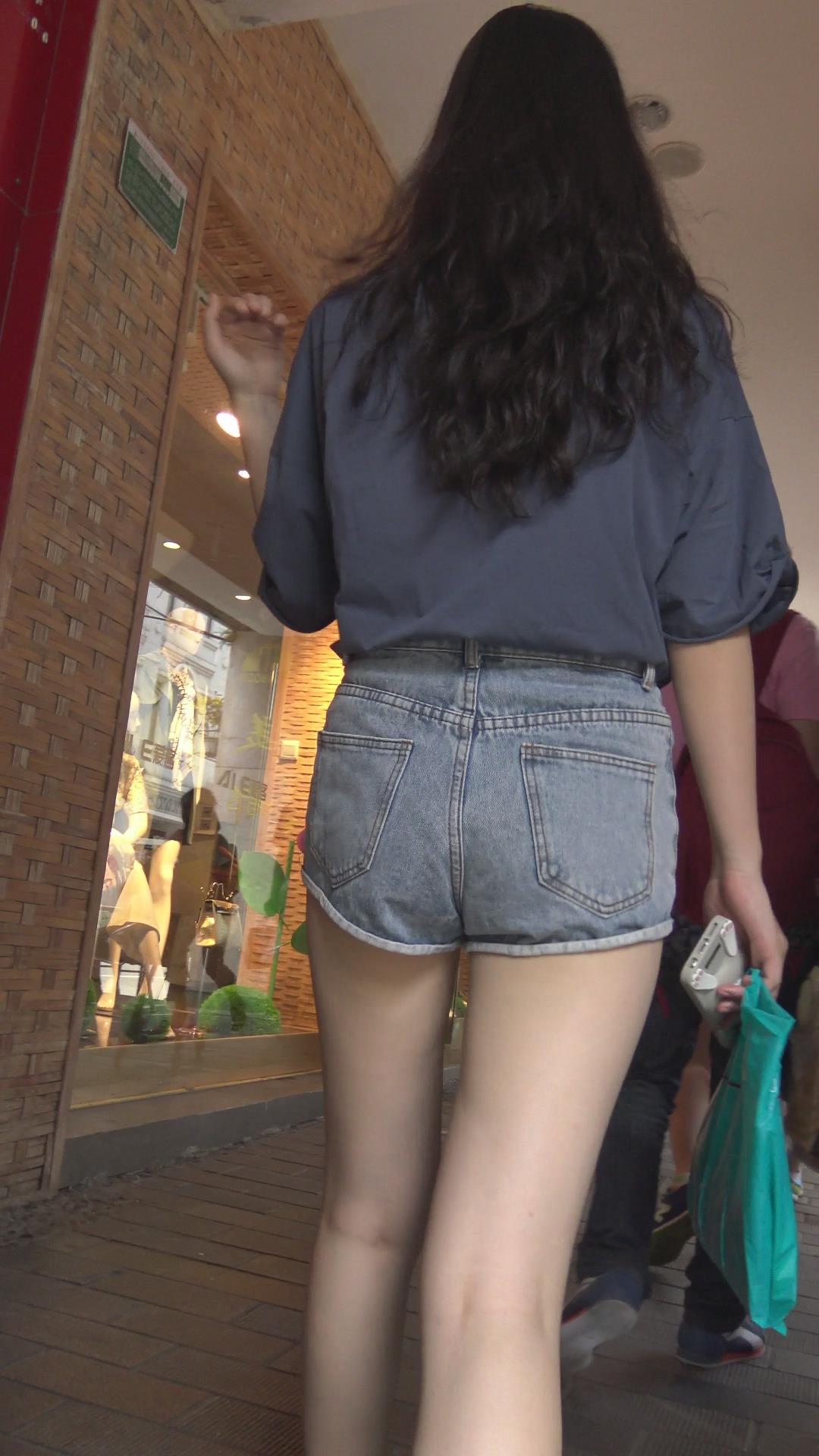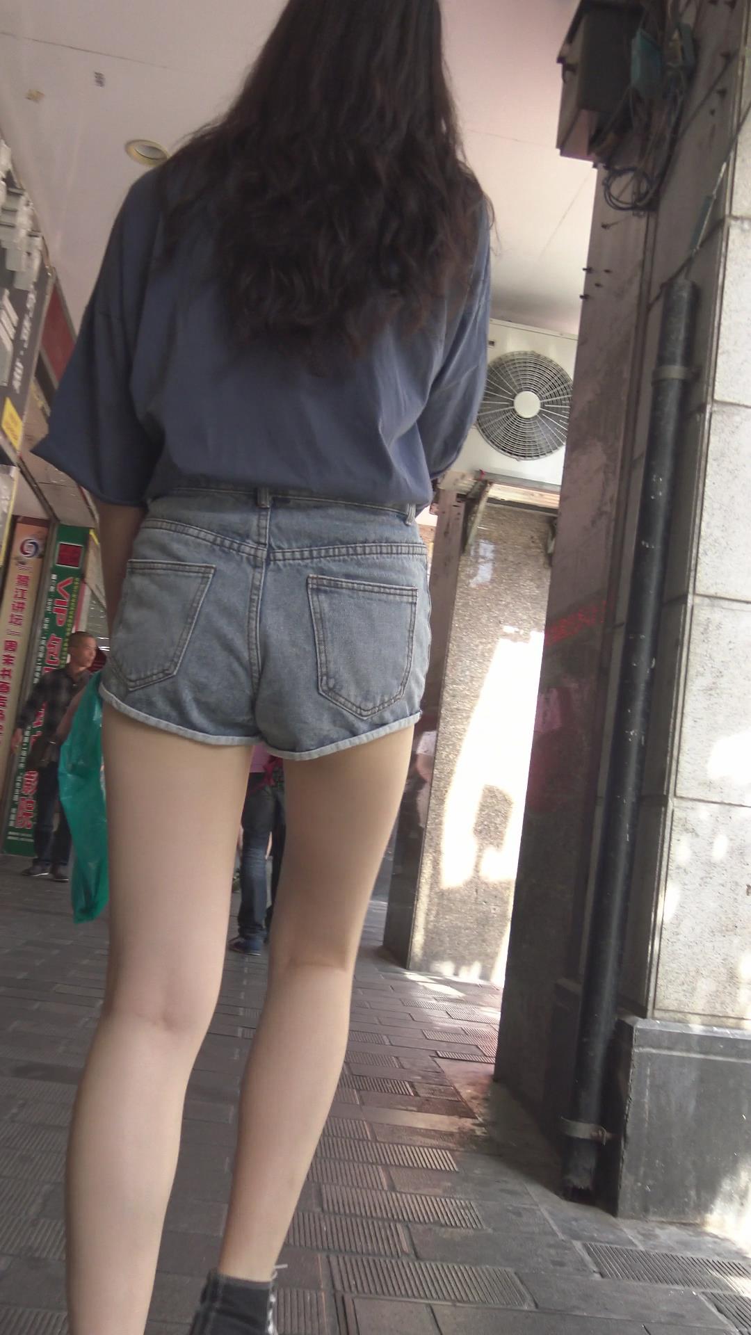 街拍超短牛仔热裤美腿清纯小美女 编号4666