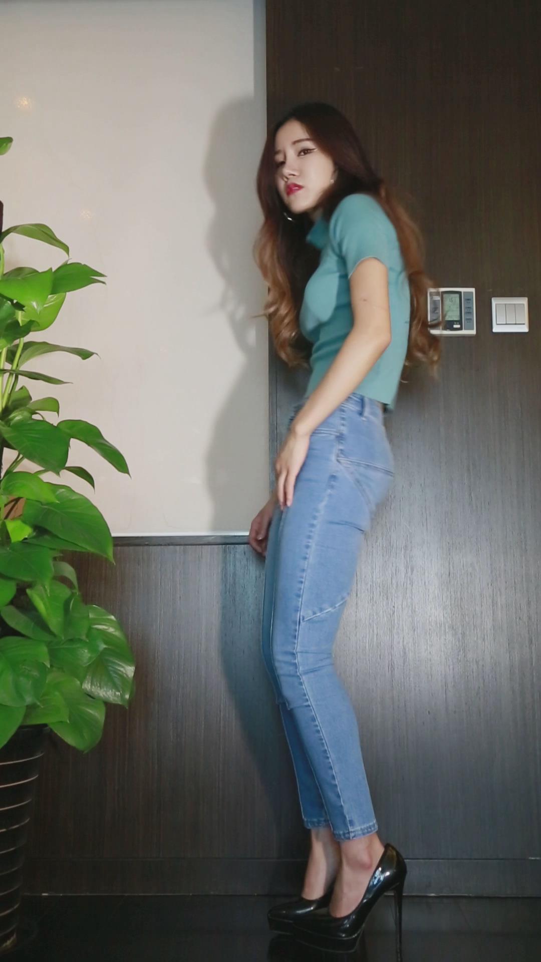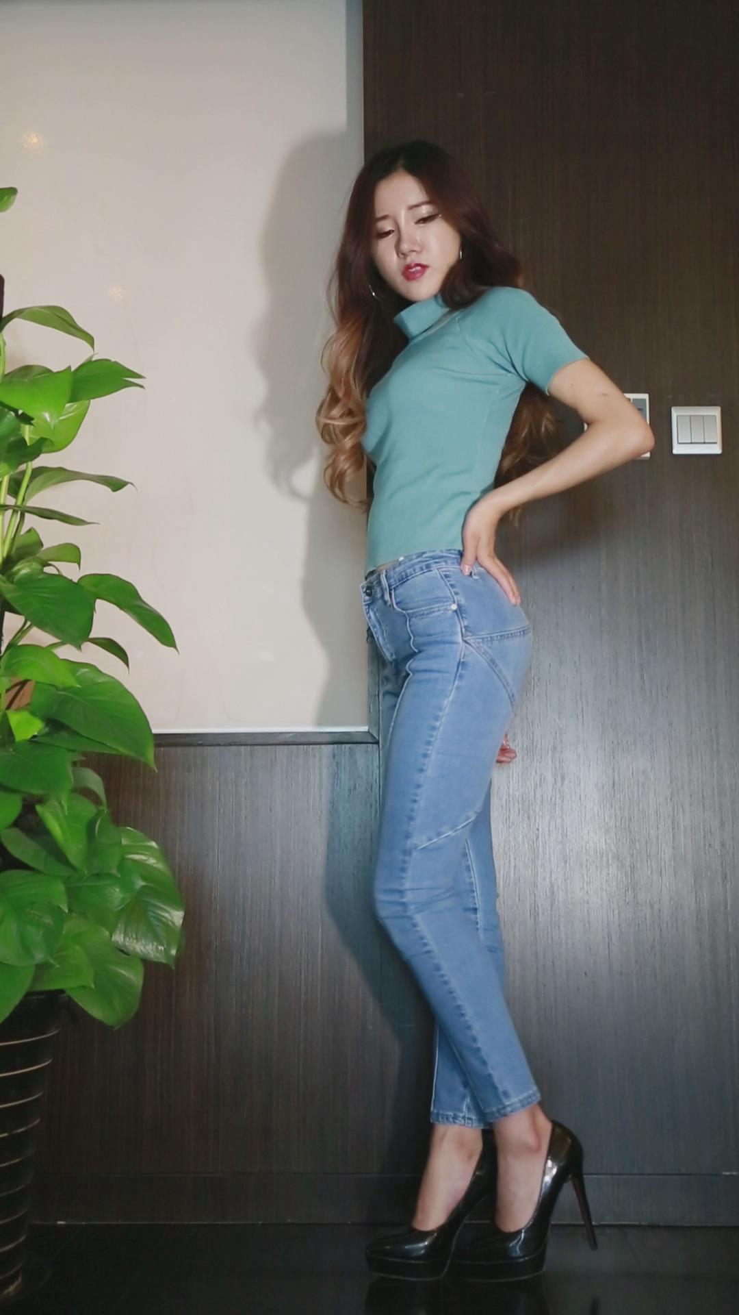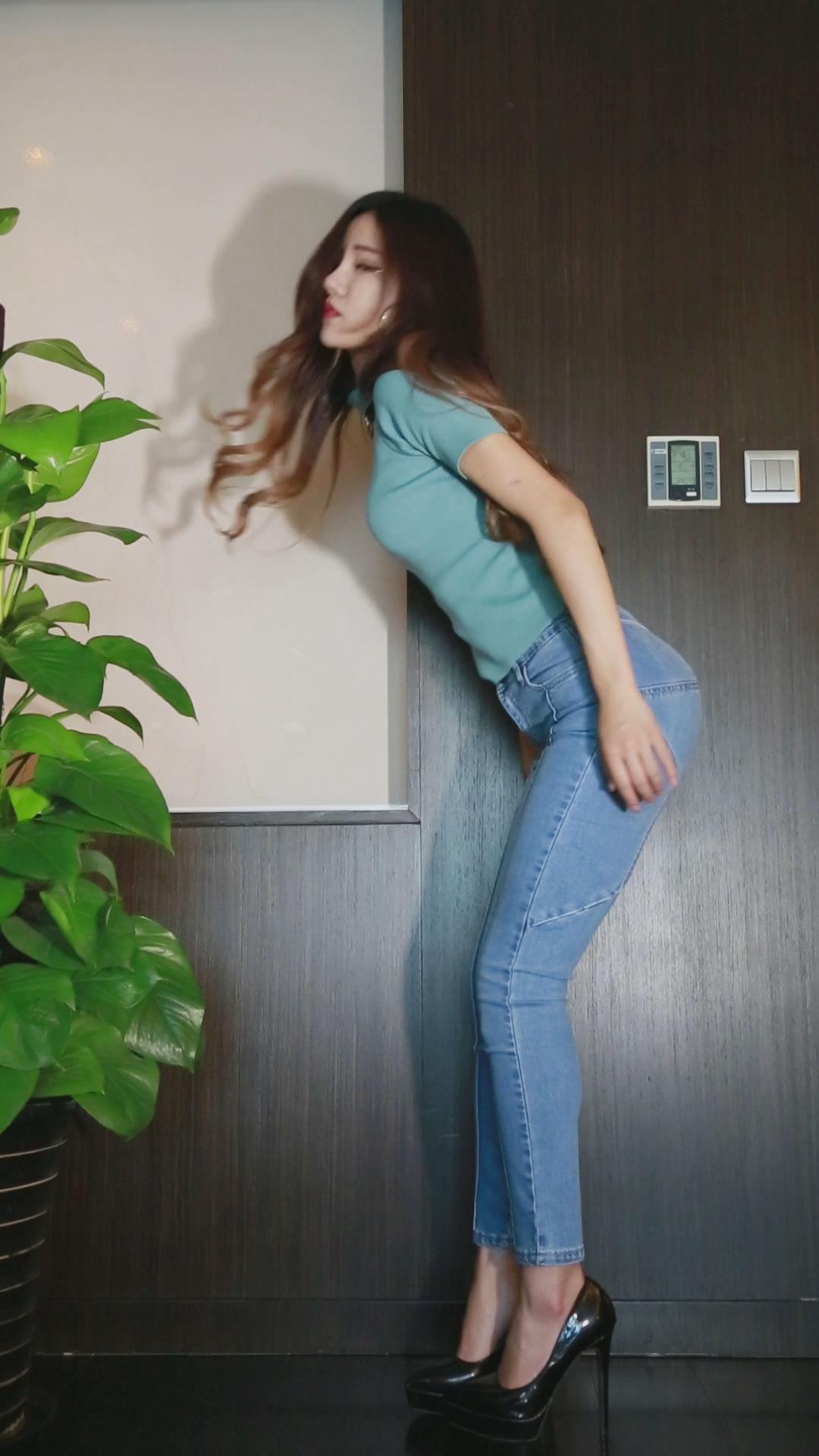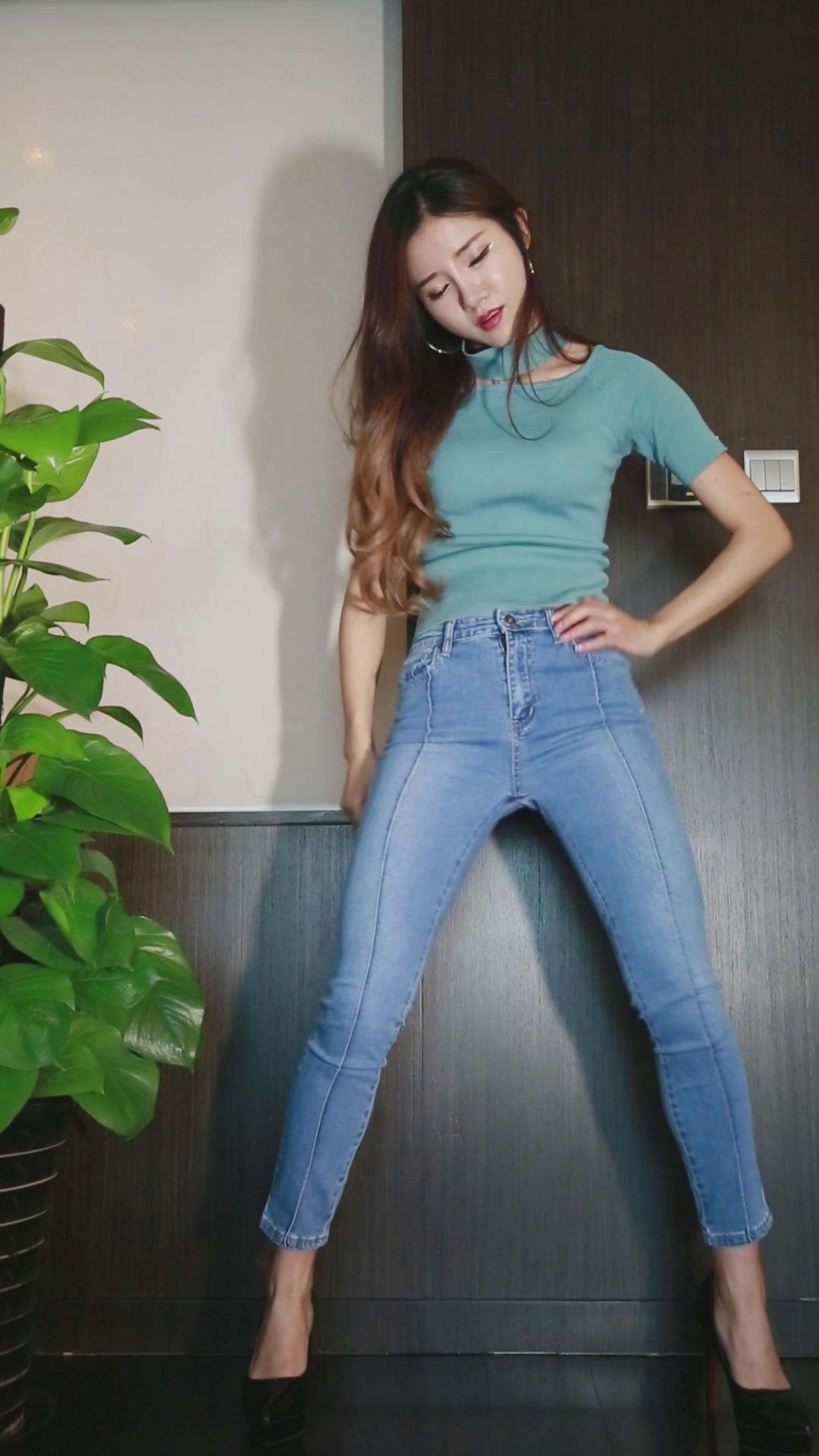 紧身牛仔裤女孩正面热舞慢摇 编号6691