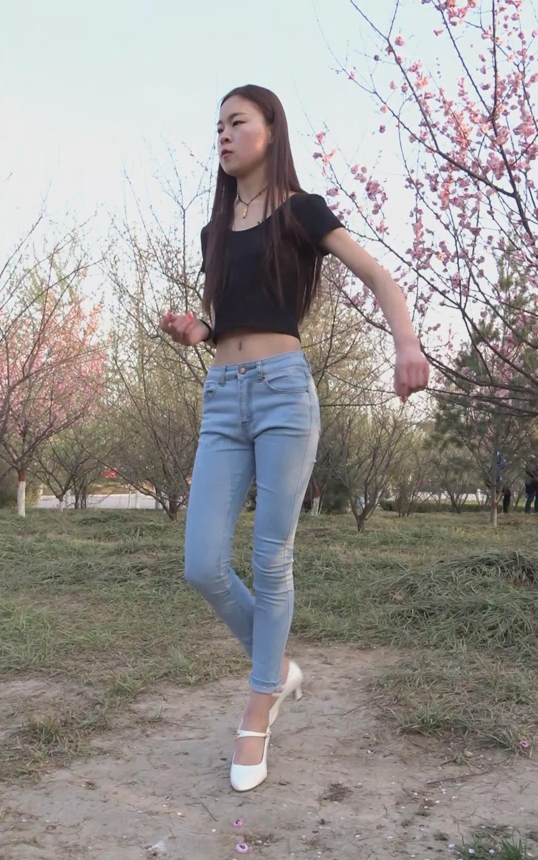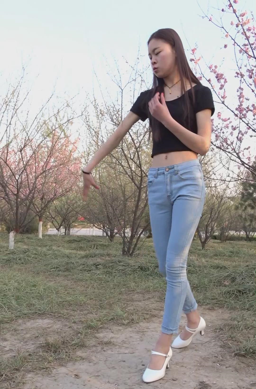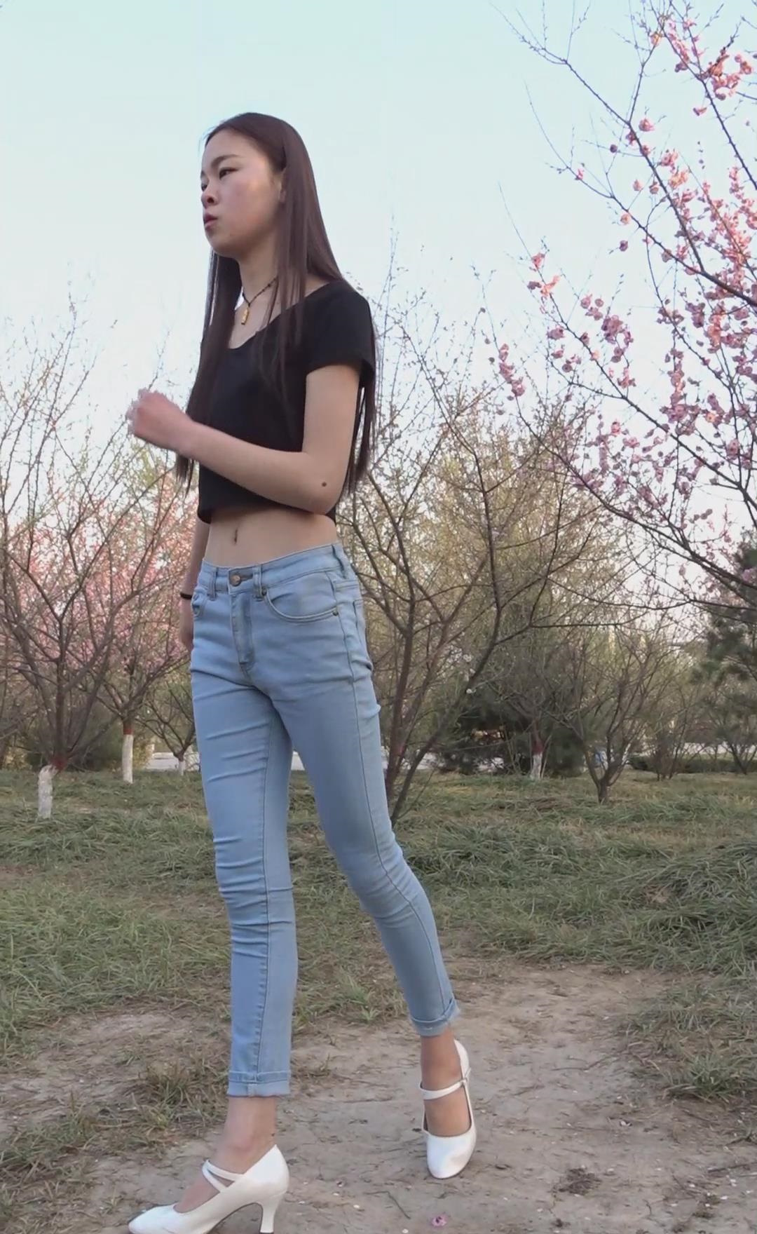紧身蓝色牛仔裤长腿长发美女姐姐模拍视频 编号6780
