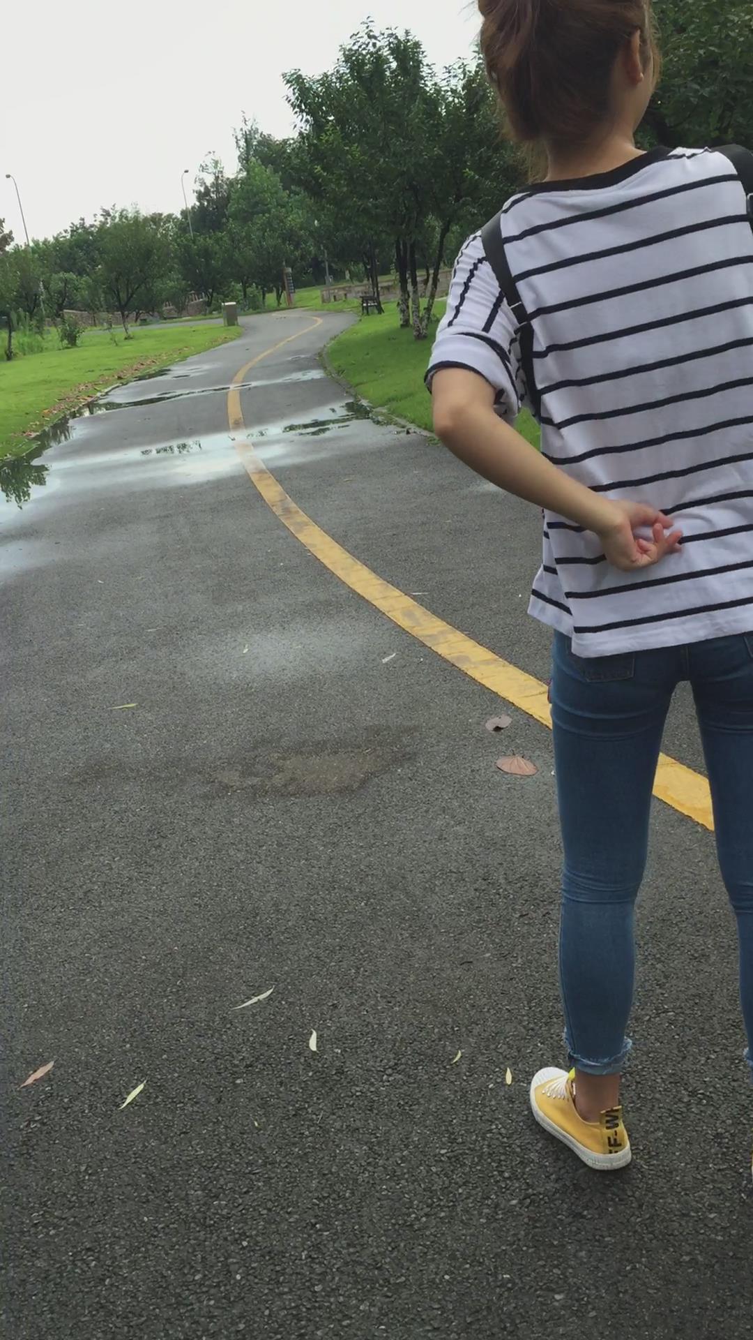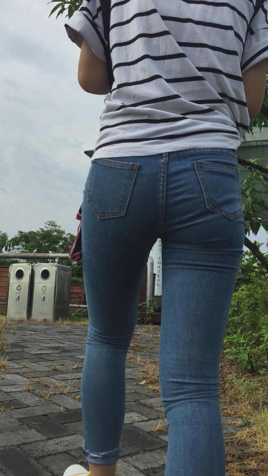 条纹T恤衫紧身蓝牛学妹外拍视频第四集 编号6850