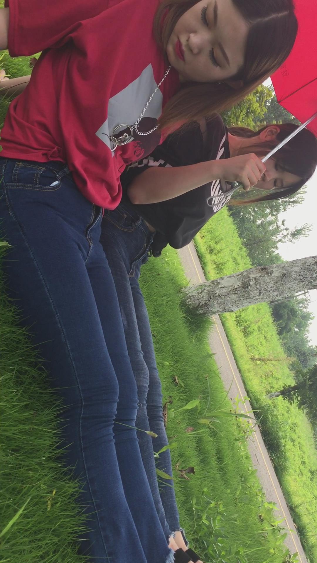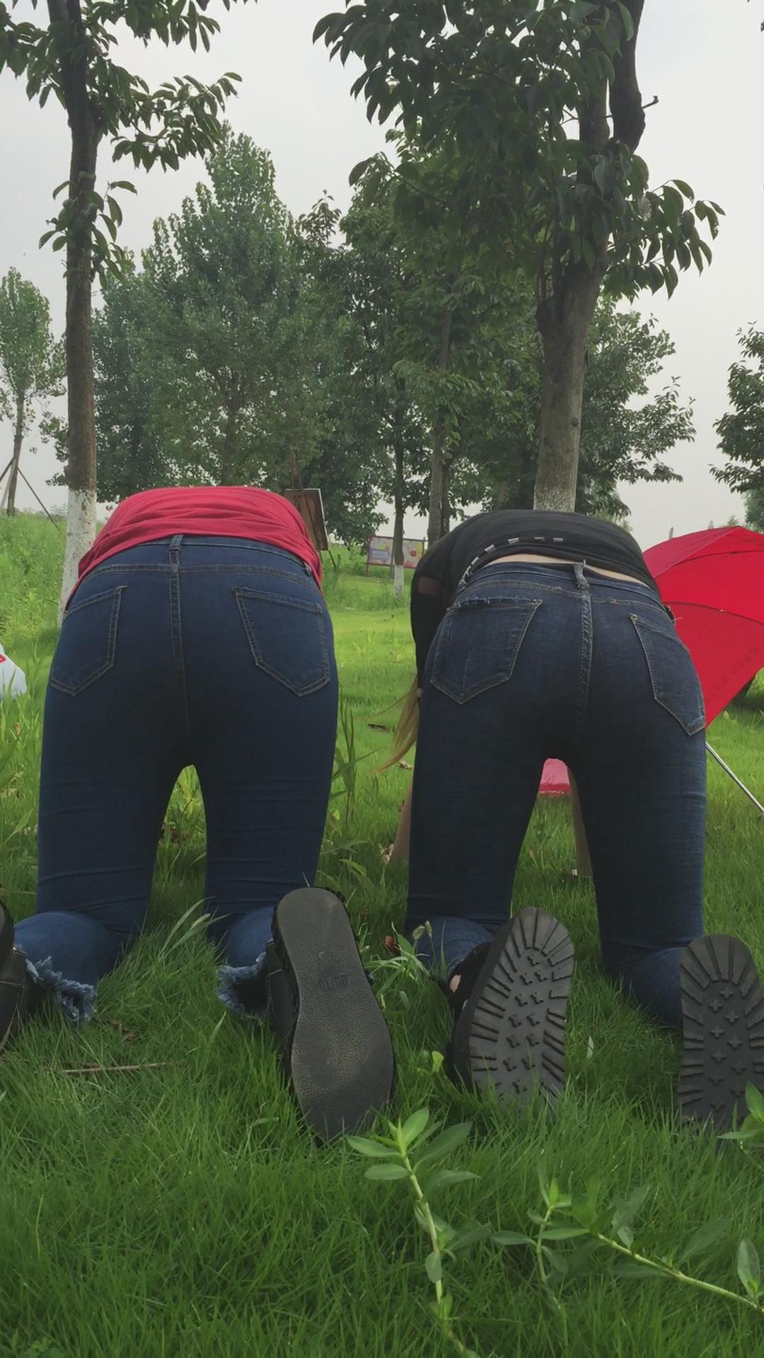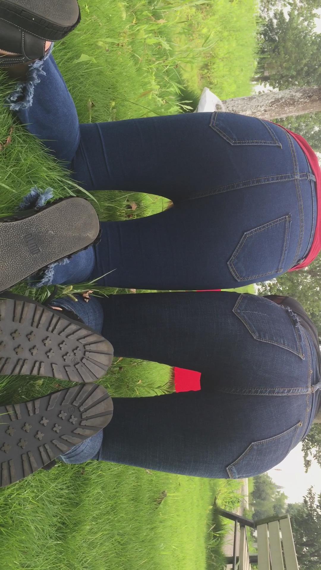 紧身蓝色牛仔裤姐妹公园模拍视频第二集 编号6854