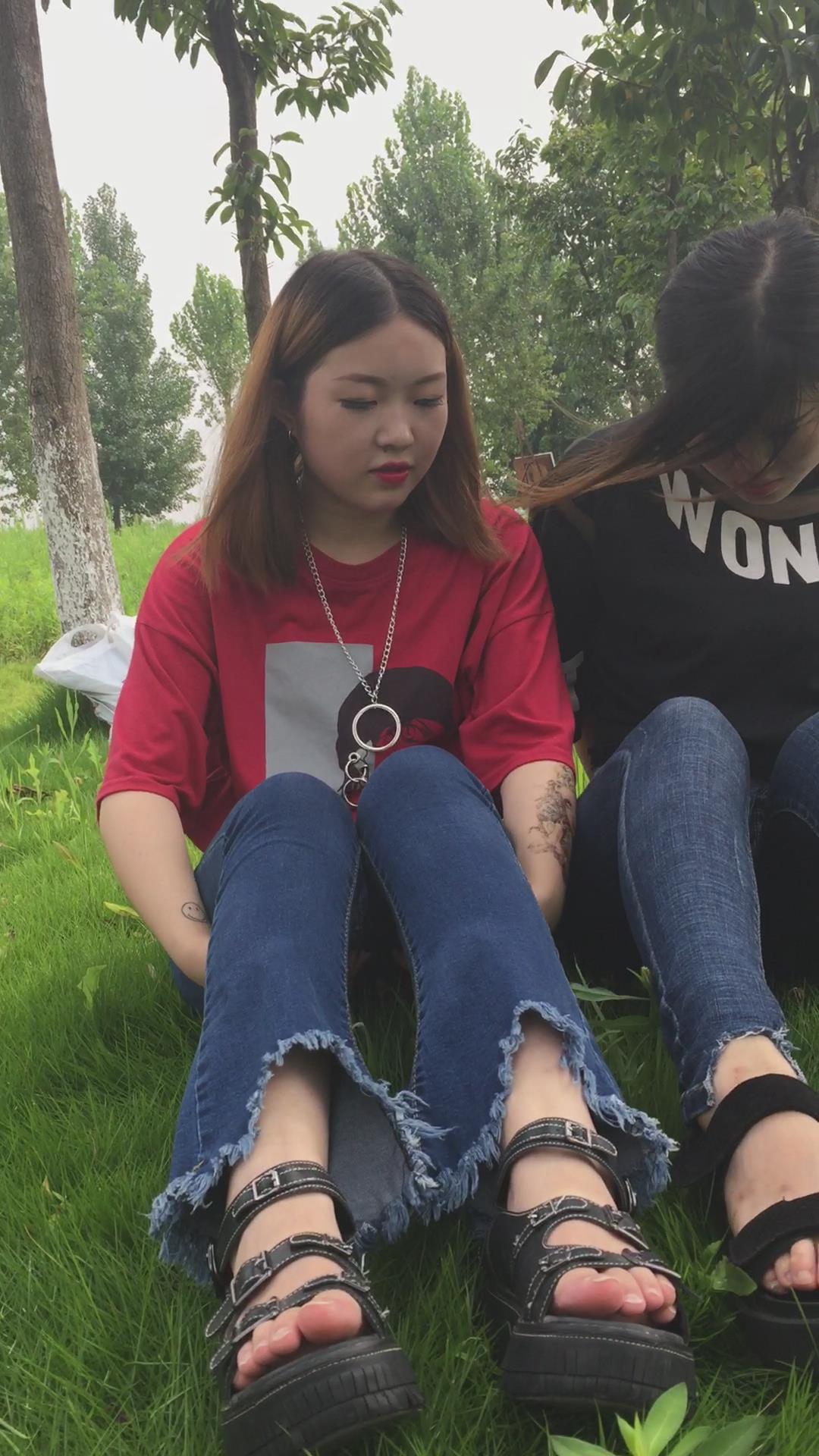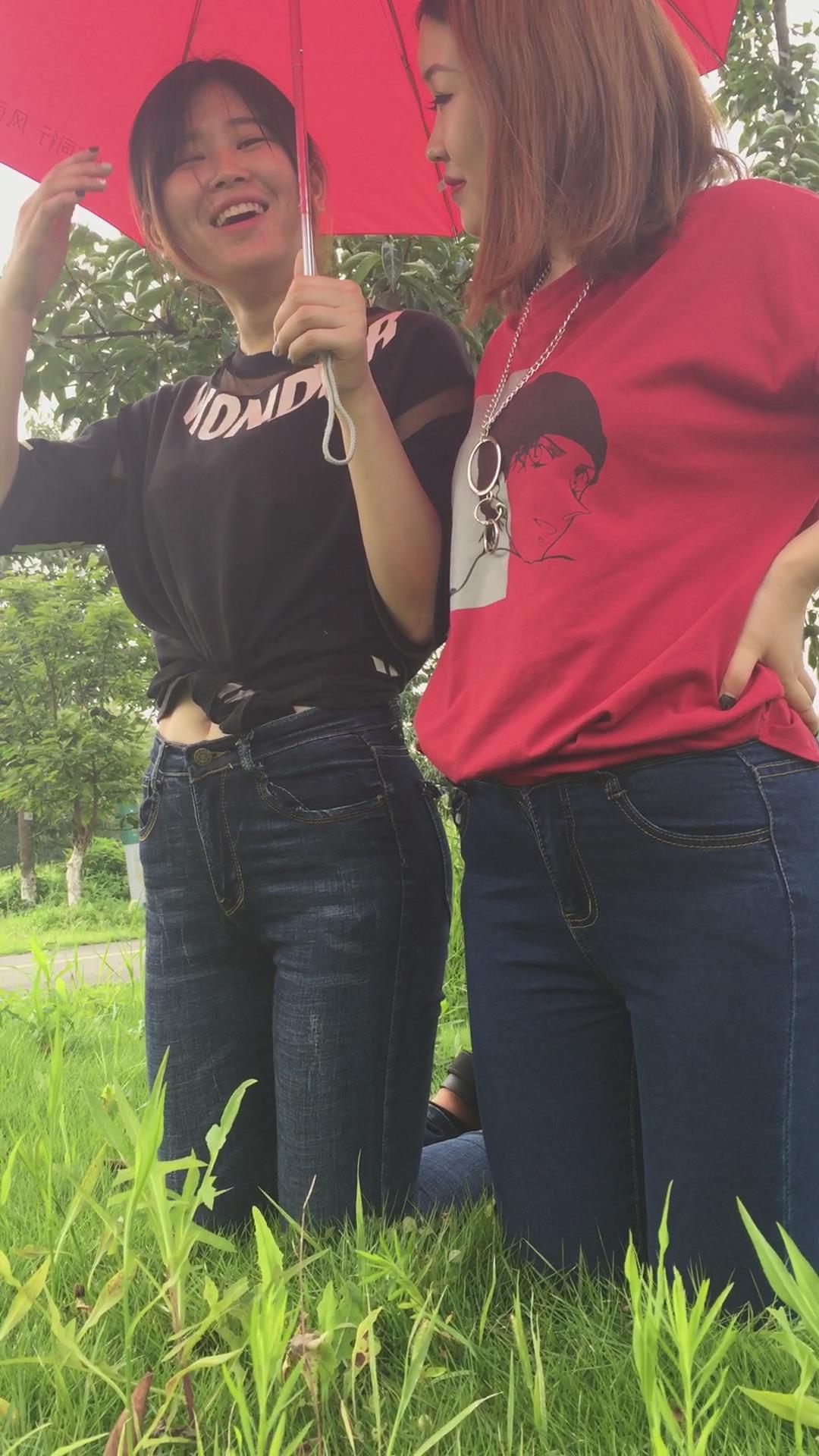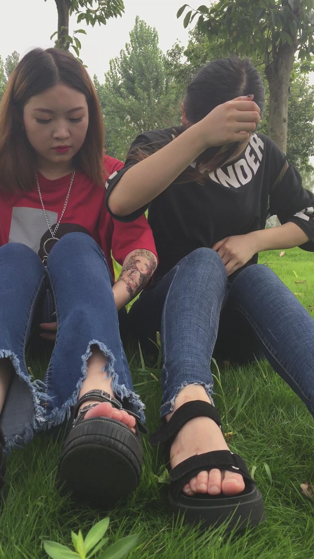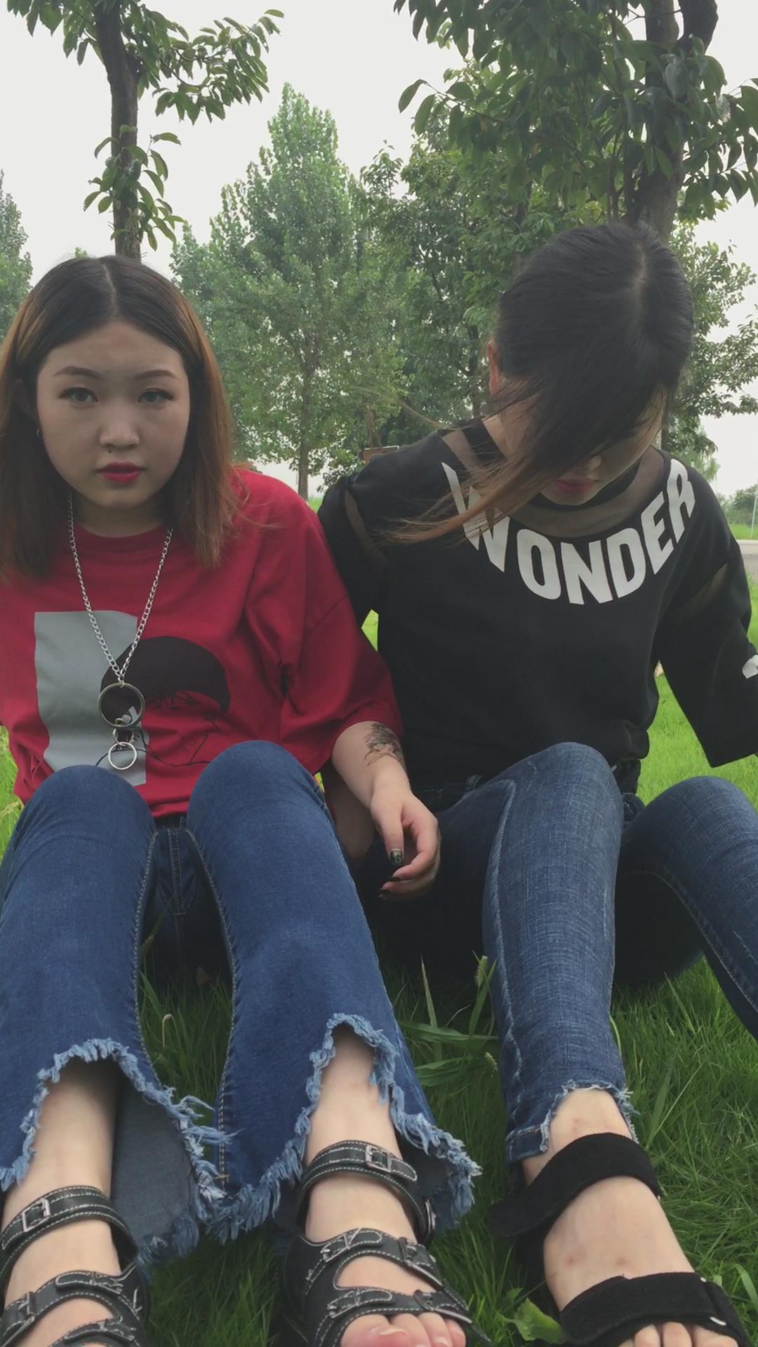 紧身蓝色牛仔裤姐妹公园模拍视频第二集 编号6854